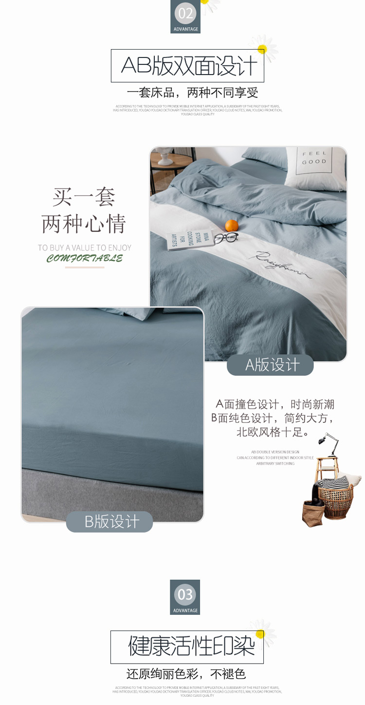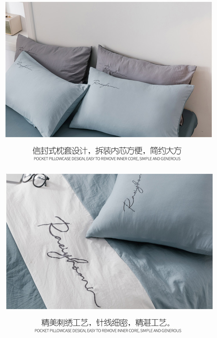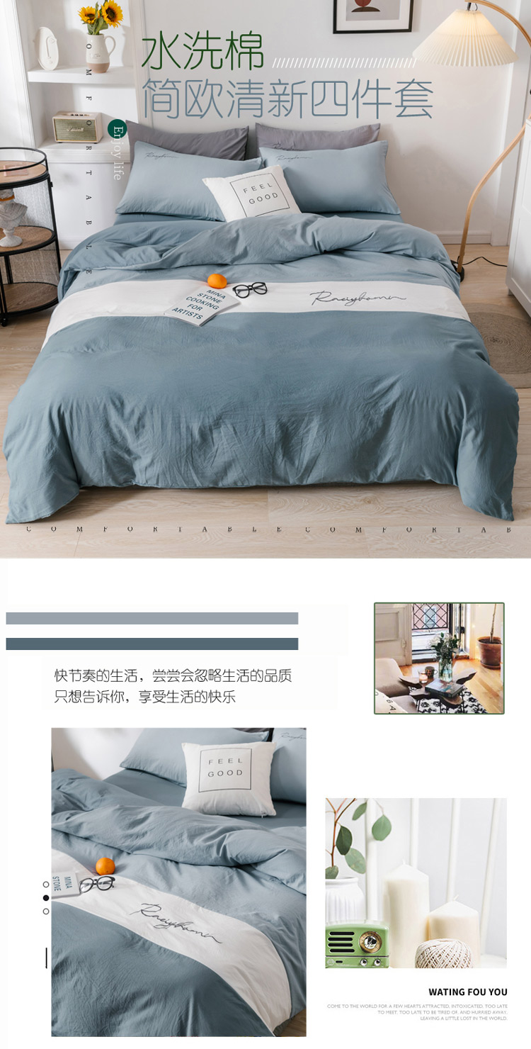 索飞特 2021春夏新款水洗棉四件套三色系列 绅士蓝