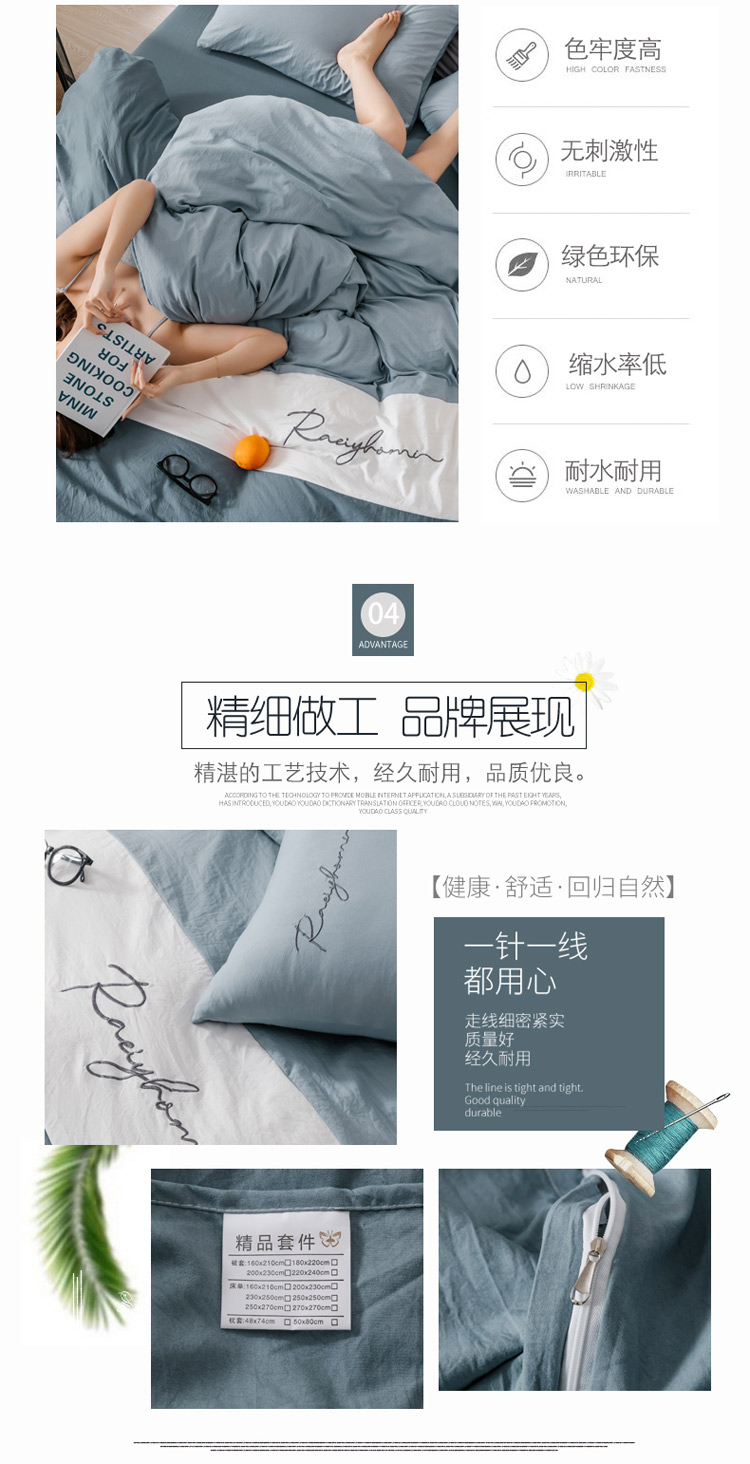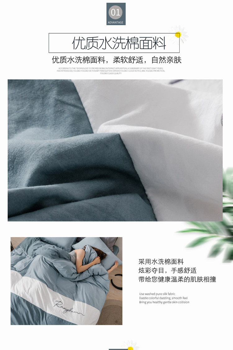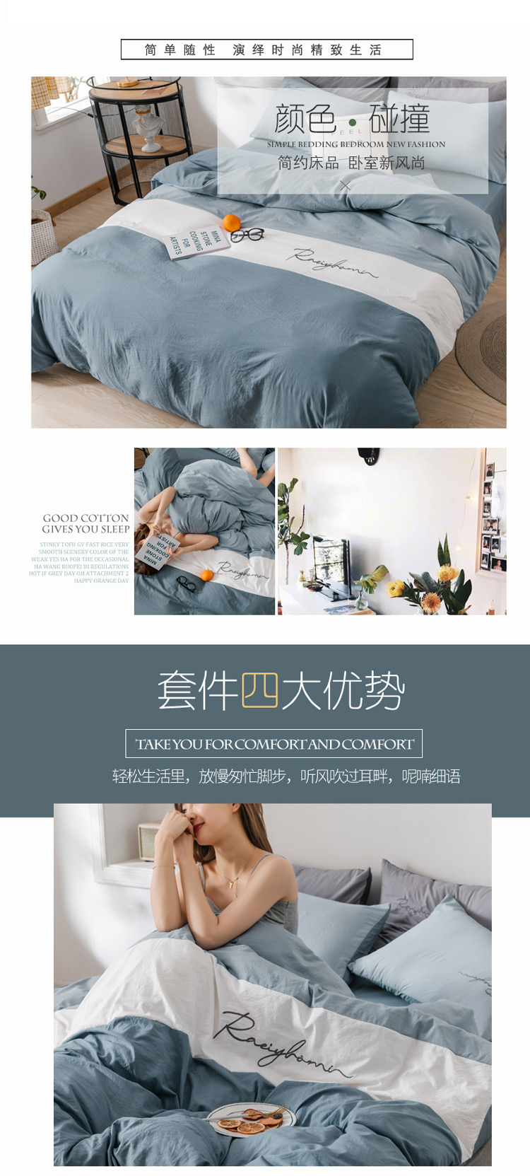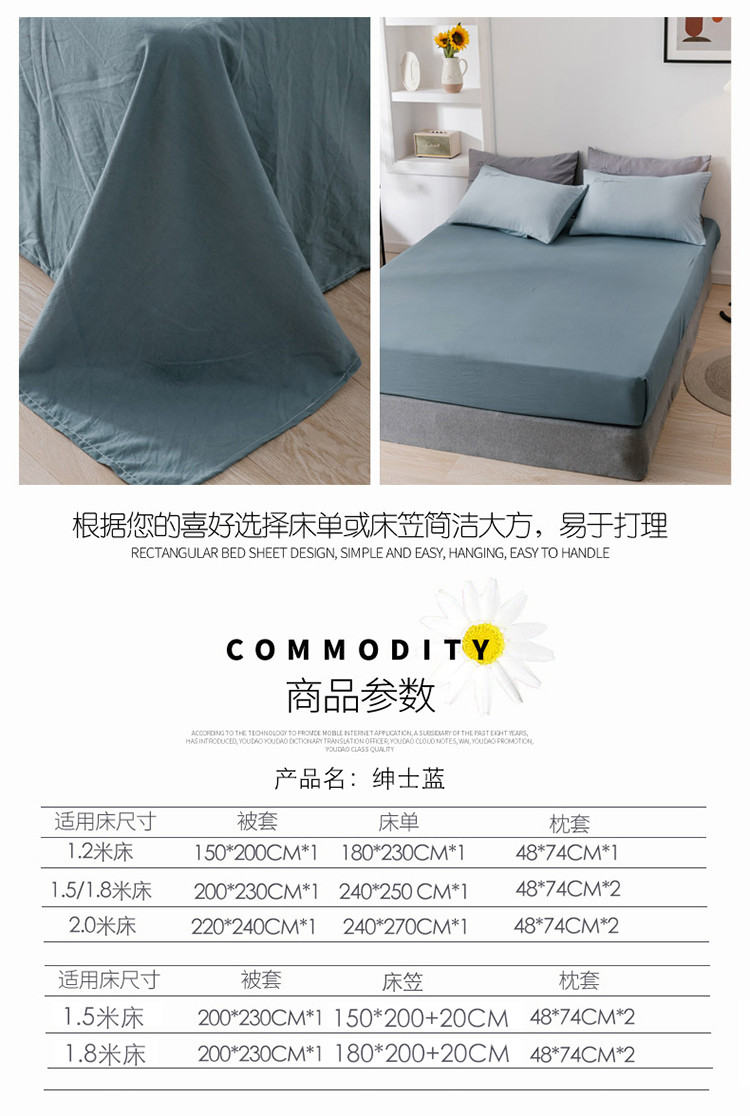 商品名称:索飞特 2021春夏新款水洗棉四件套三色系列 绅士蓝