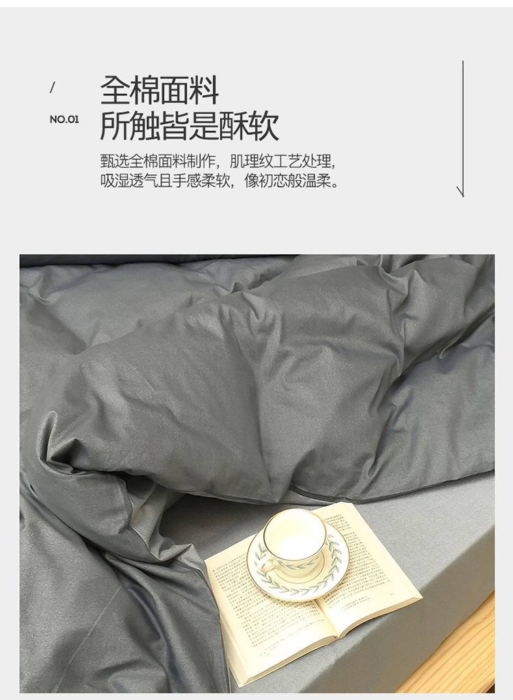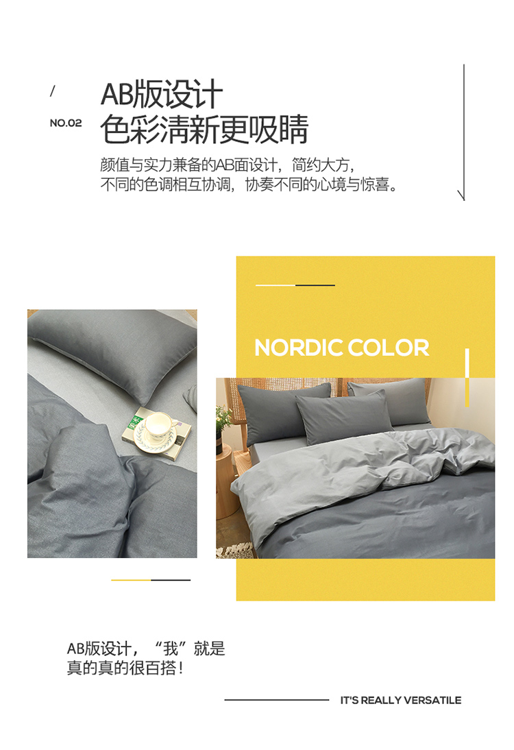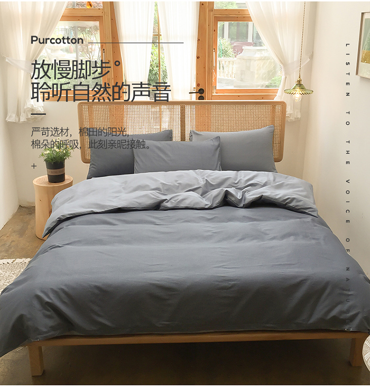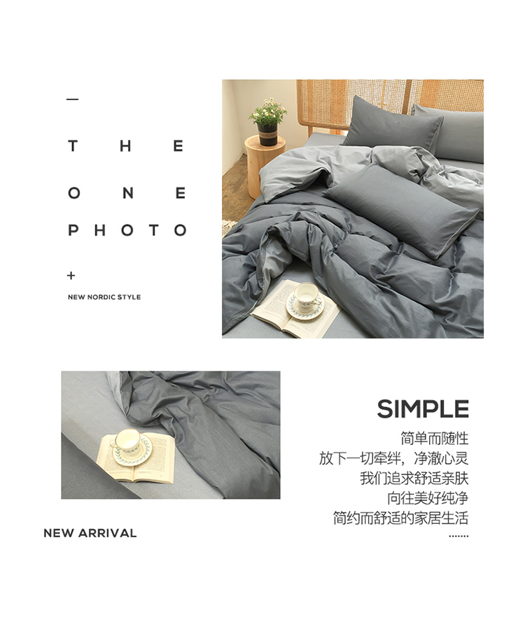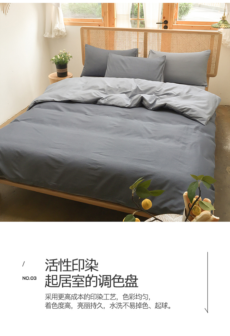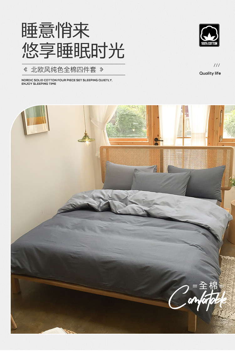商品名称:雲归梦 2020新款北欧风纯色全棉四件套 卡洛-蓝浅灰