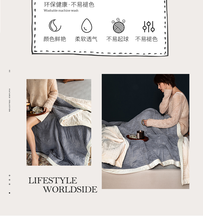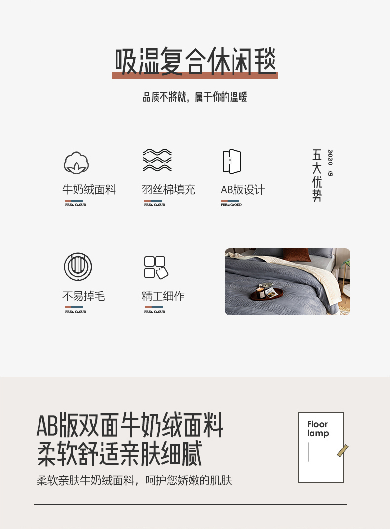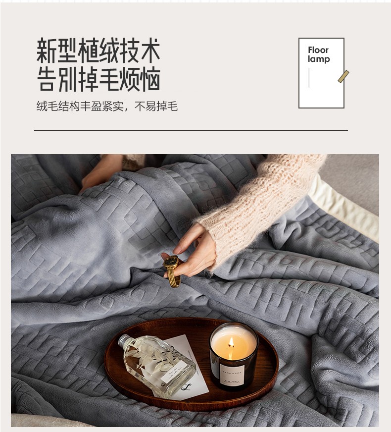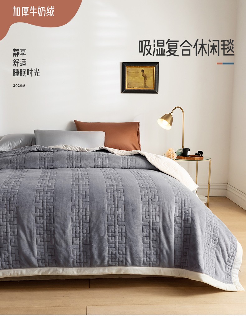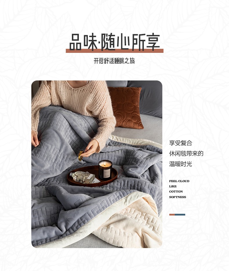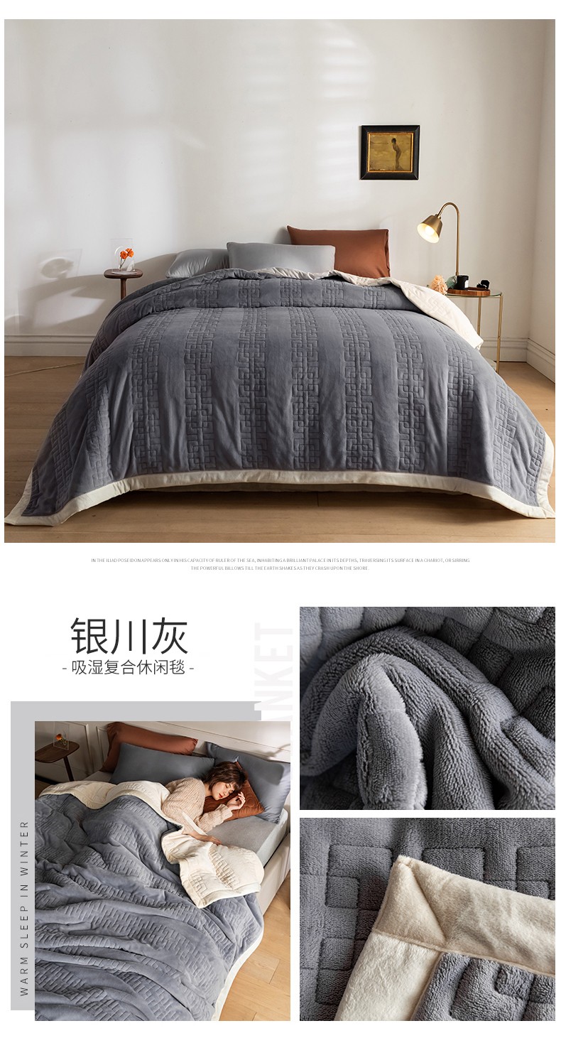 商品名称:法芙娜 秋冬加厚吸湿毯 牛奶绒夹棉毛毯 银川灰