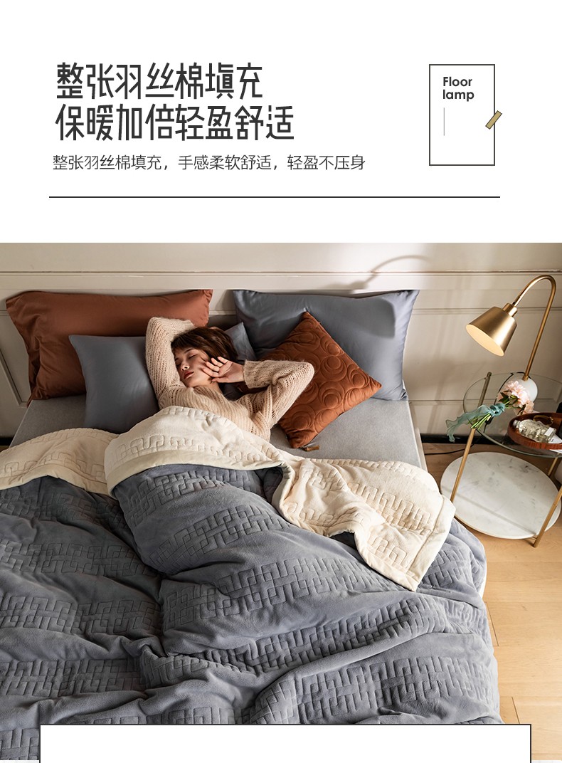 法芙娜 秋冬加厚吸湿毯 牛奶绒夹棉毛毯 银川灰