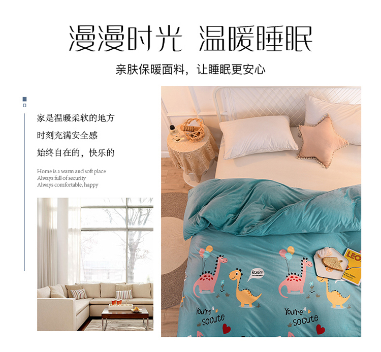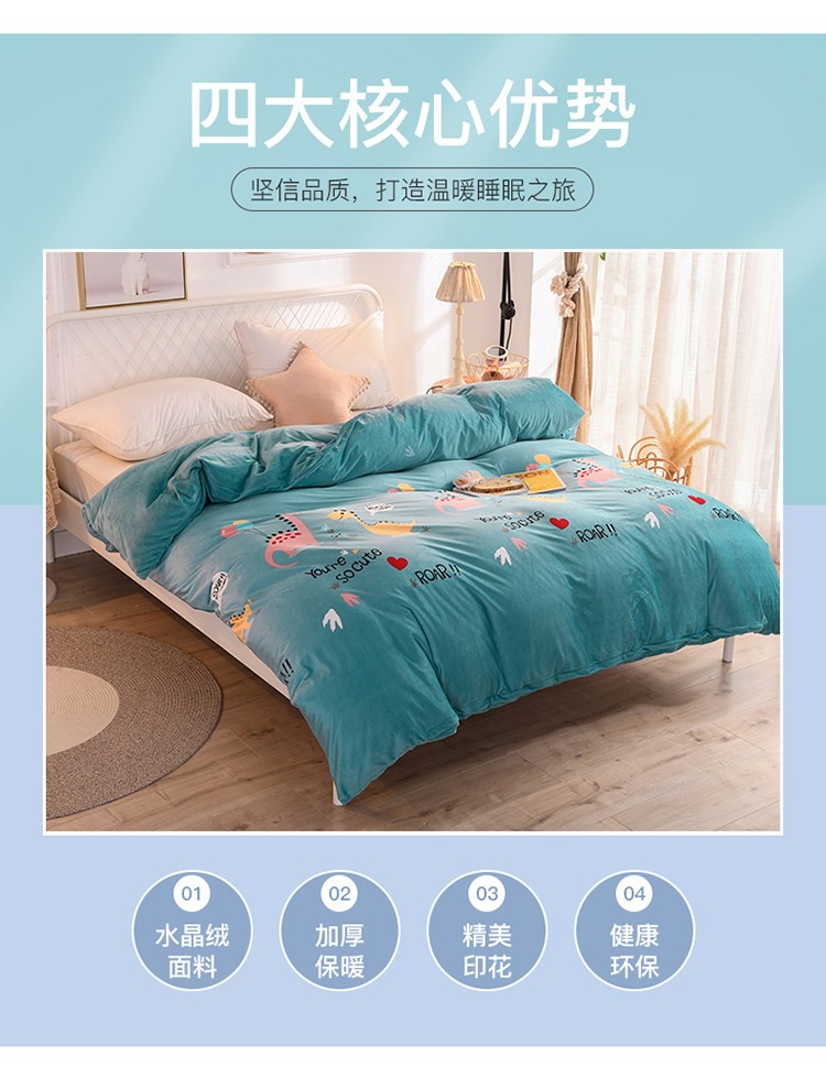 商品名称:甜之梦 2025新款水晶绒单品被套 小恐龙蓝