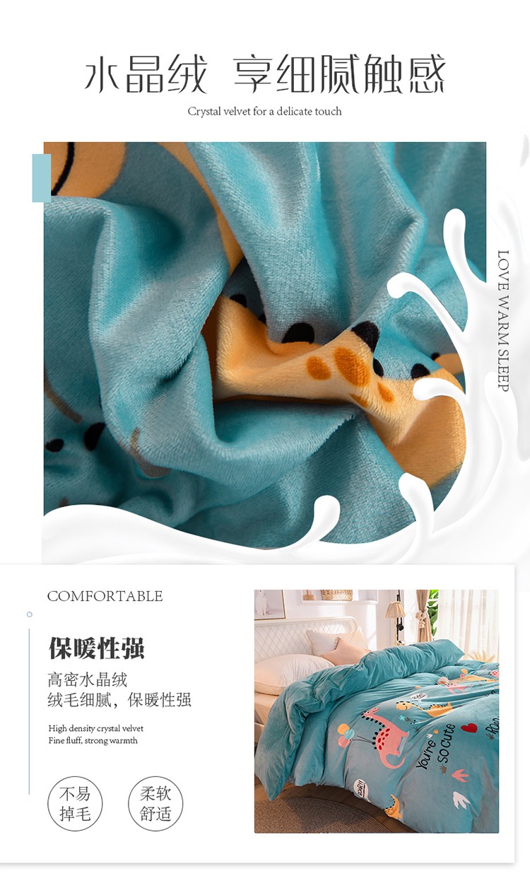甜之梦 2025新款水晶绒单品被套 小恐龙蓝