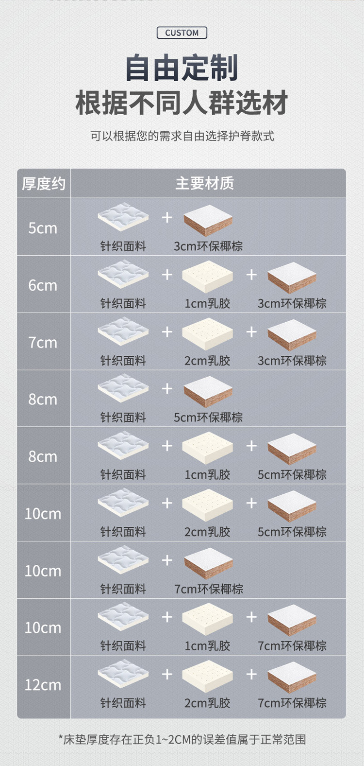 (总)时奥家纺 2025新款宝宝绒环保椰棕床垫,3分棕(5cm),3分棕+1分乳胶(5cm),3分棕+2分乳胶(6cm),3分棕+3分乳胶(7cm),5分棕(7cm),5分棕+1分乳胶(7cm),5分棕+2分乳胶(8cm),5分棕+3分乳胶(9cm),7分棕(8cm),7分棕+1分乳胶(9cm),7分棕+2分乳胶(10cm),7分棕+3分乳胶(11cm),10分棕(11cm),10分棕+1分乳胶(12cm),10分棕+2分乳胶(13cm),10分棕+3分乳胶(15cm)