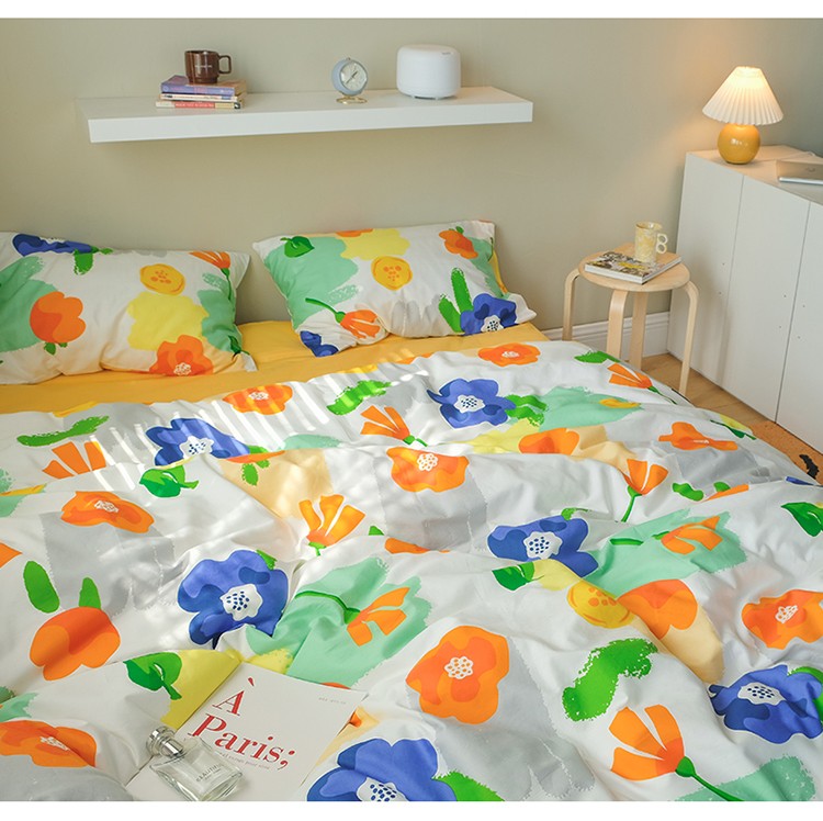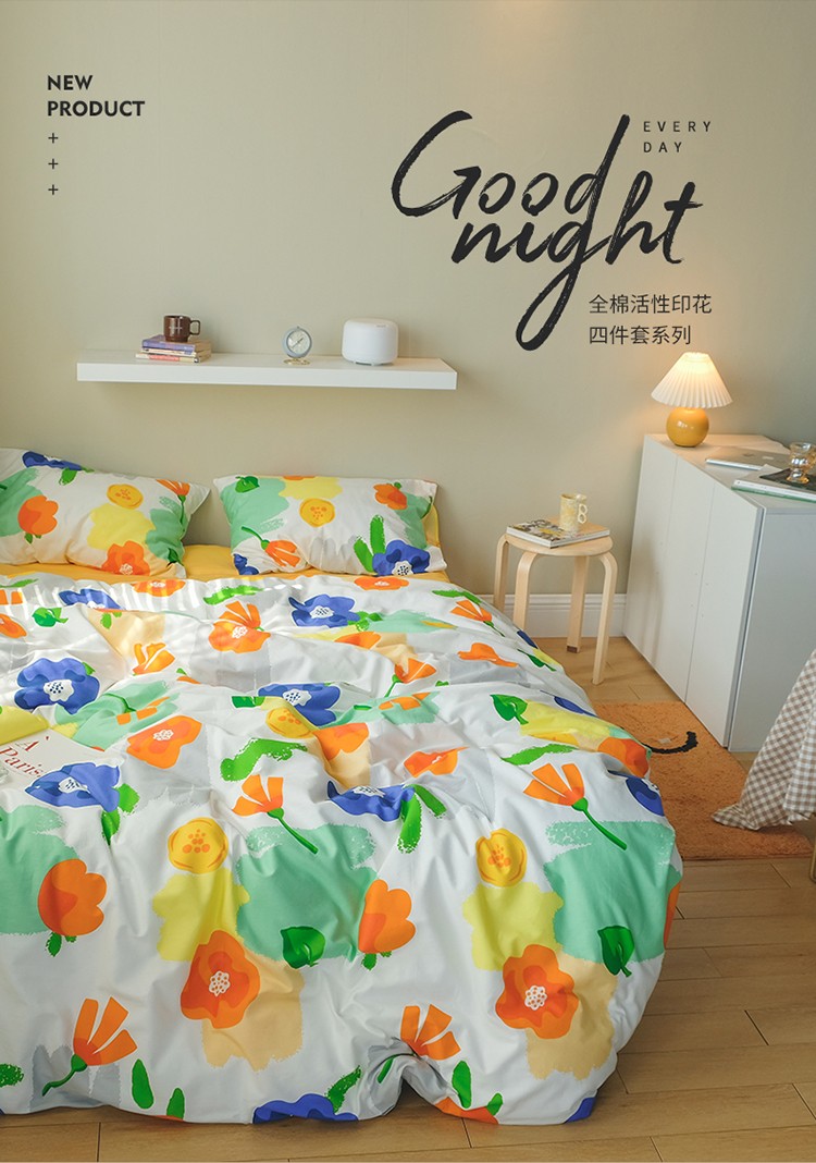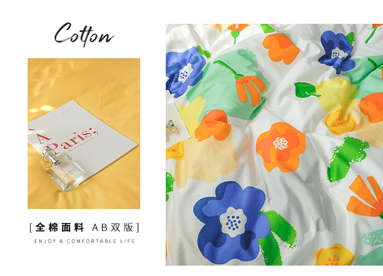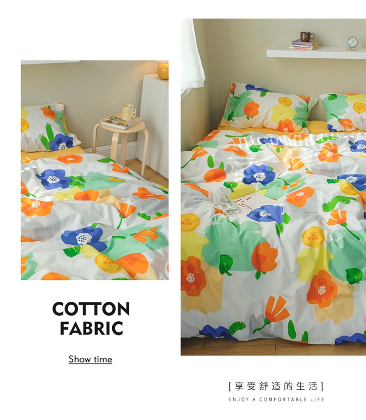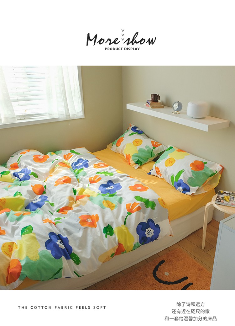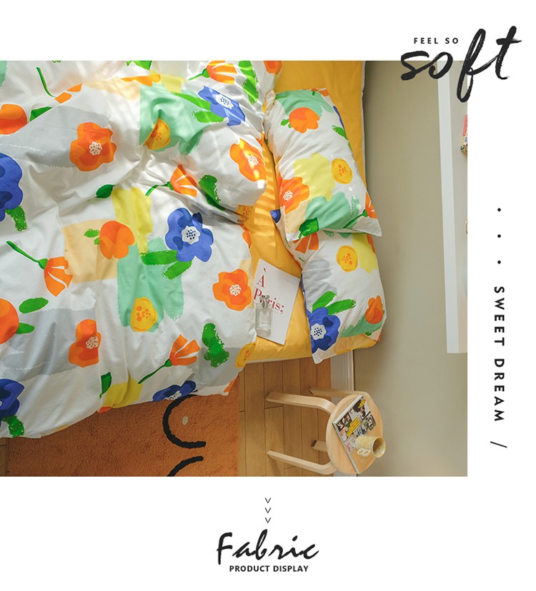 (总)尺素 全棉40支喷气13372韩国ins设计师四件套,花舞,篱落粉,篱落黄,落英,派对,童趣,涂鸦,小粉兔,雪地熊