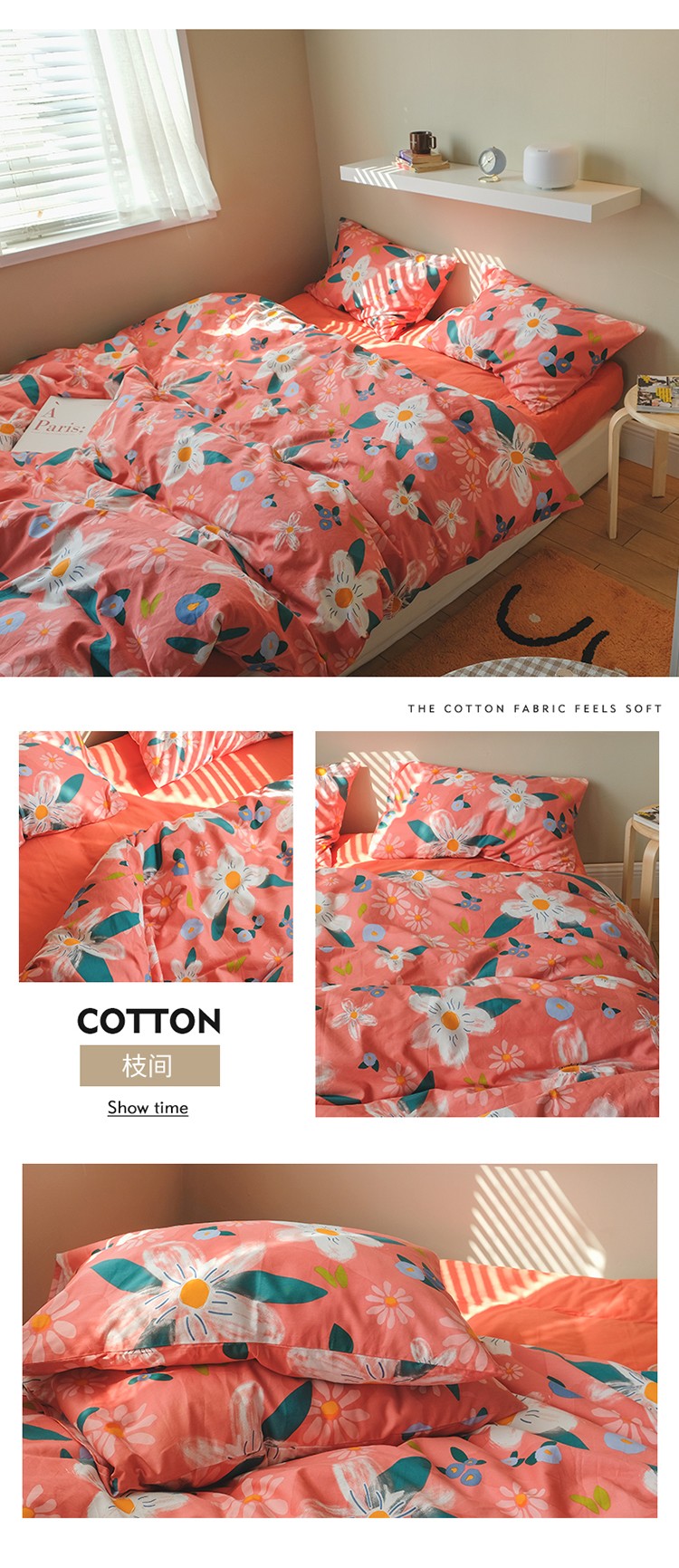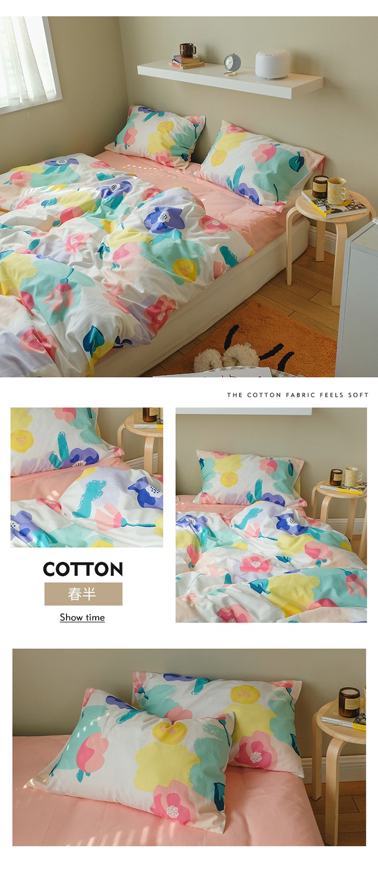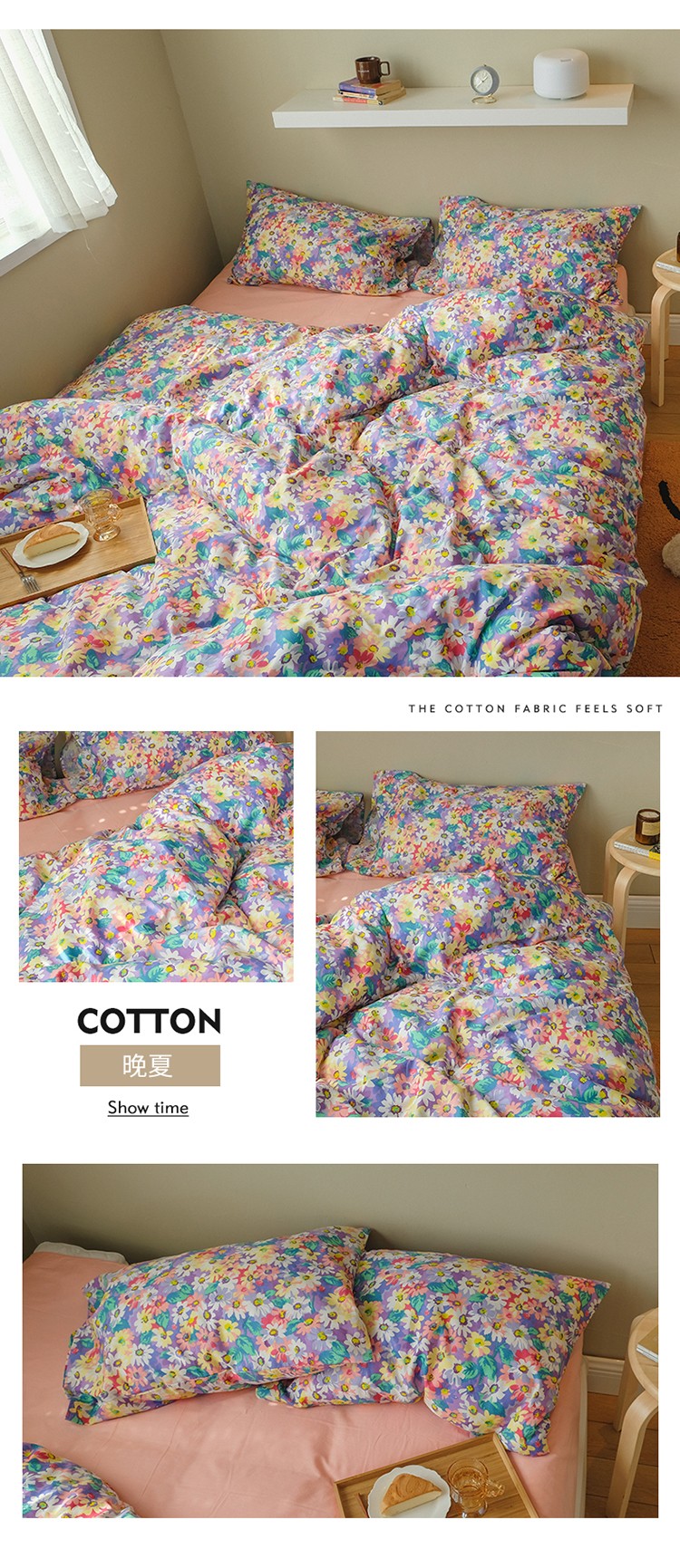 (总)尺素 2025新款田园小清新纯棉四件套出口韩国ins博主风全棉被套纯色加大床单1.8床笠印花枕套学生宿舍三件套,春不晚 桃粉,花似锦 奶白,紫鸢千夏紫