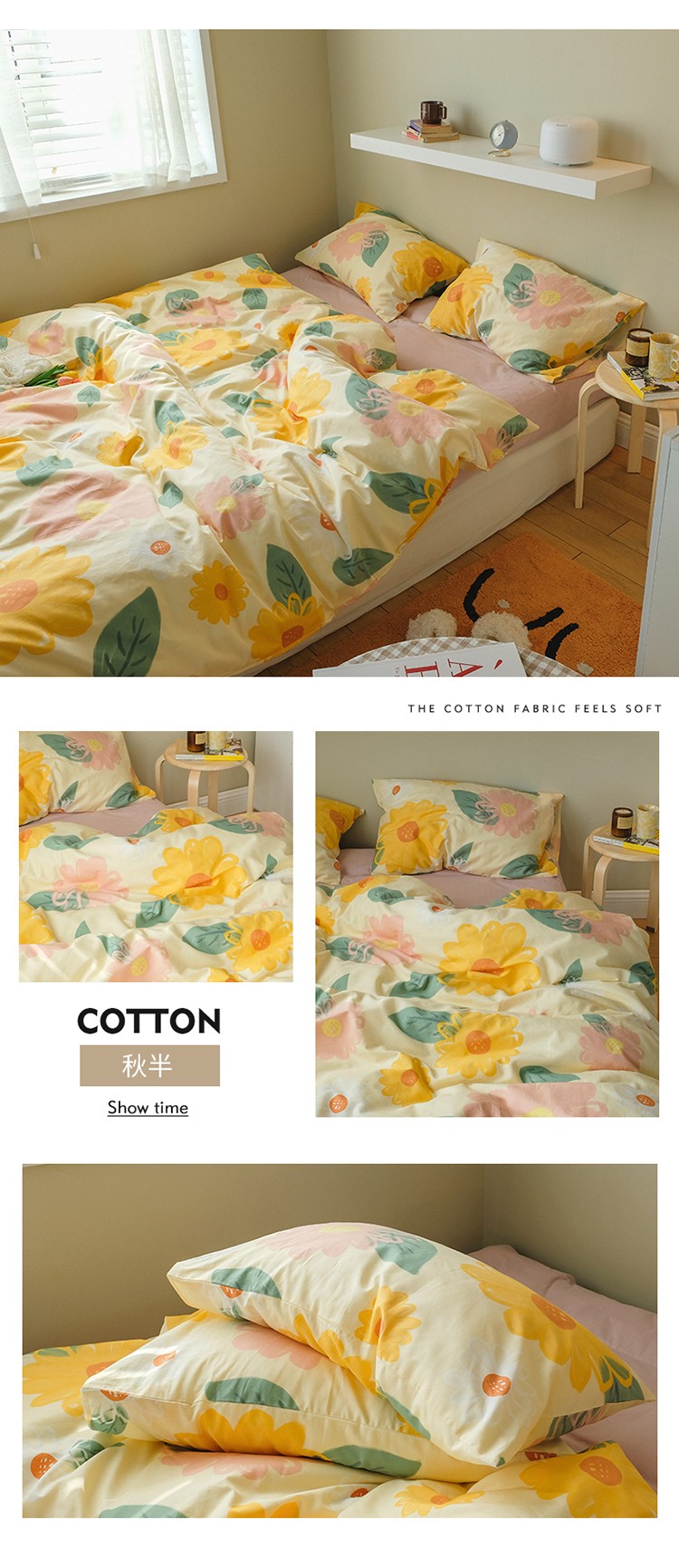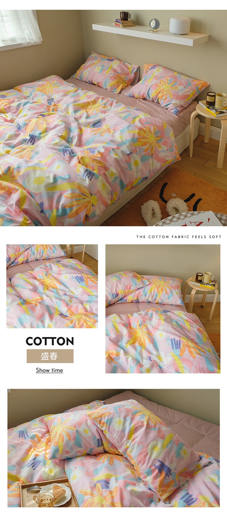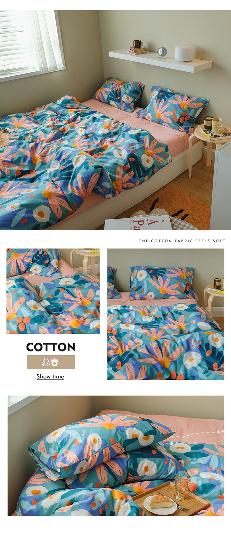 (总)尺素 2025新款田园小清新纯棉四件套出口韩国ins博主风全棉被套纯色加大床单1.8床笠印花枕套学生宿舍三件套,春不晚 桃粉,花似锦 奶白,紫鸢千夏紫