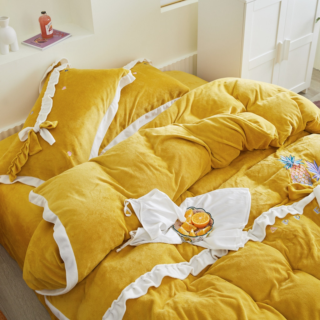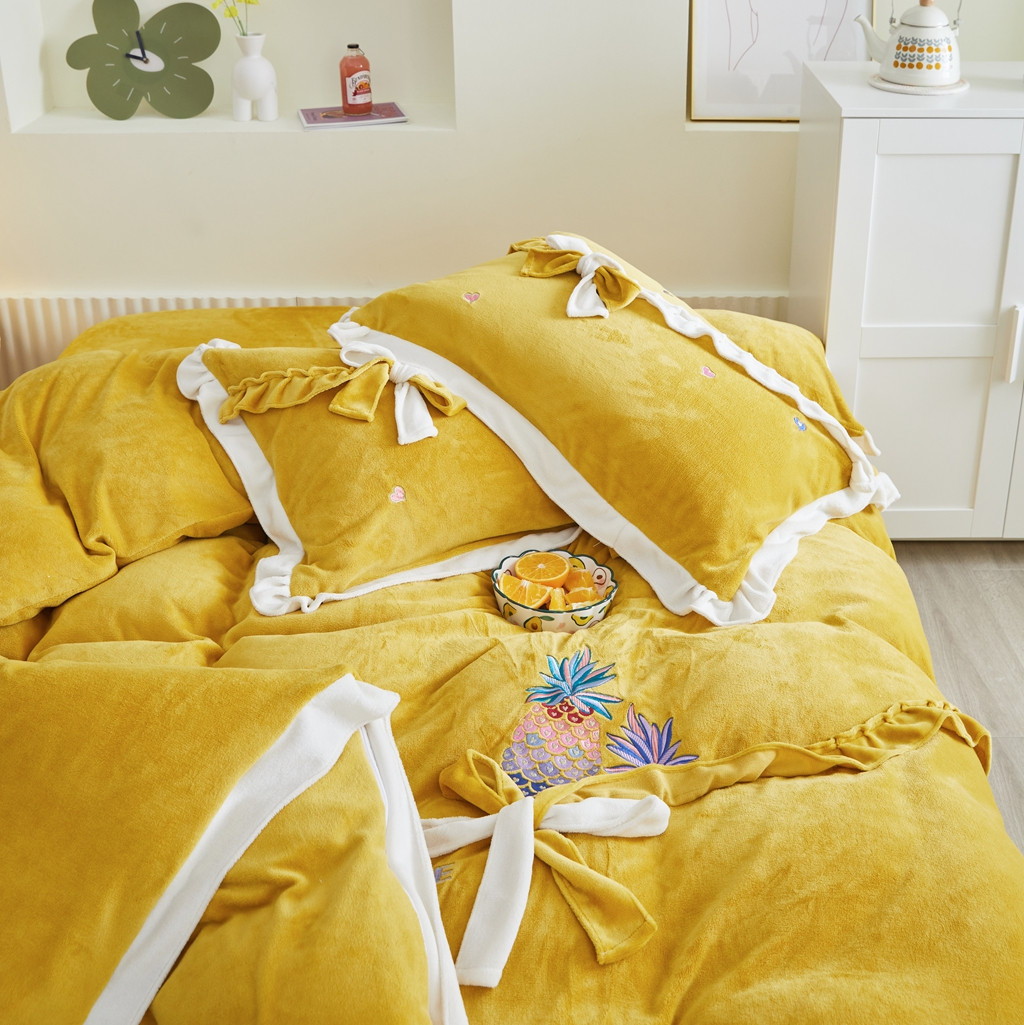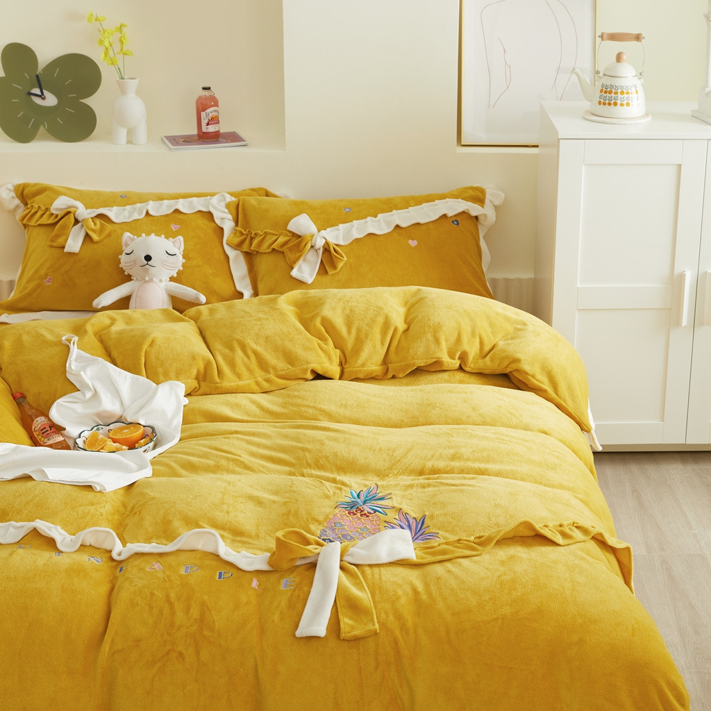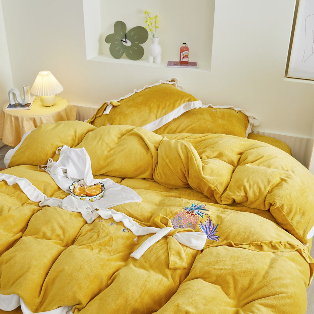 眠屿 2020新款牛奶绒绣花菠萝系列四件套 菠萝-黄
