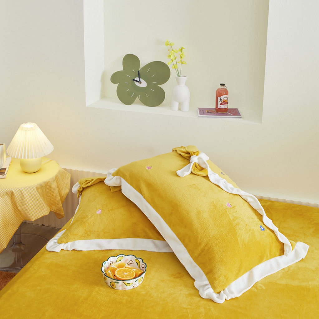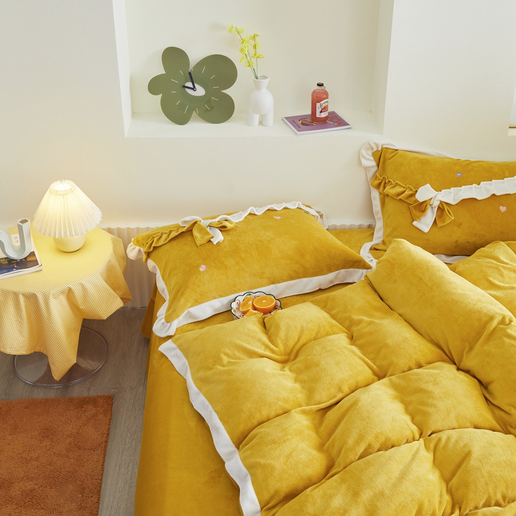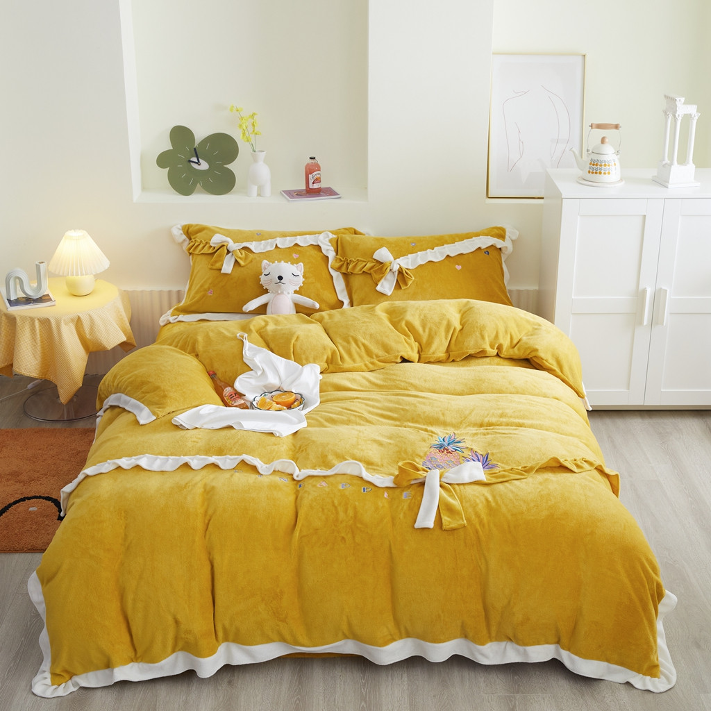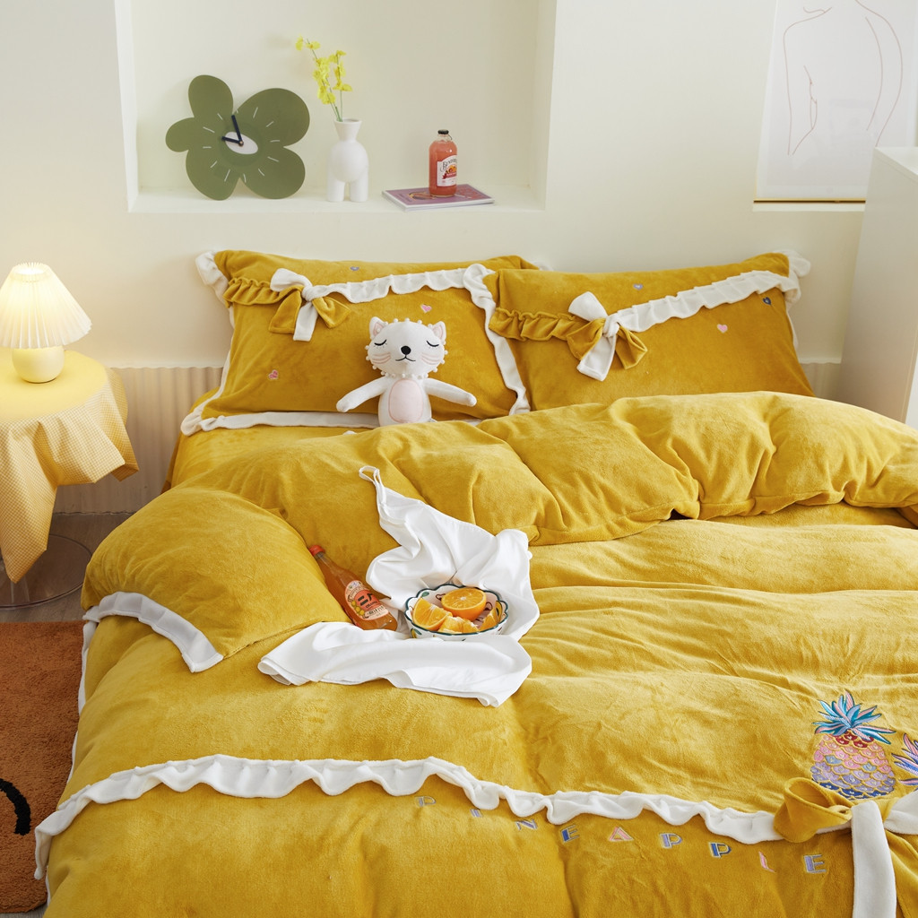 眠屿 2020新款牛奶绒绣花菠萝系列四件套 菠萝-黄