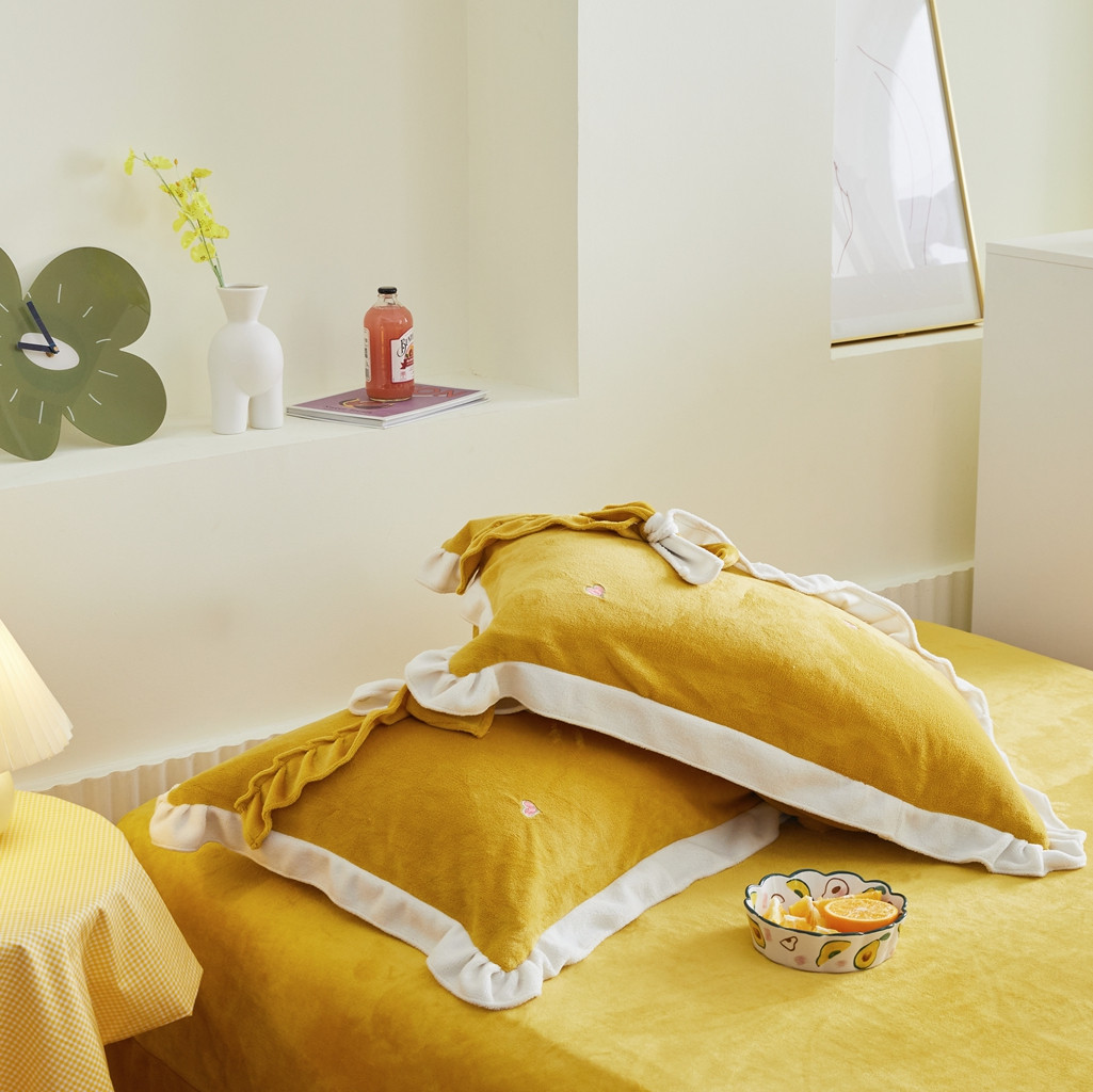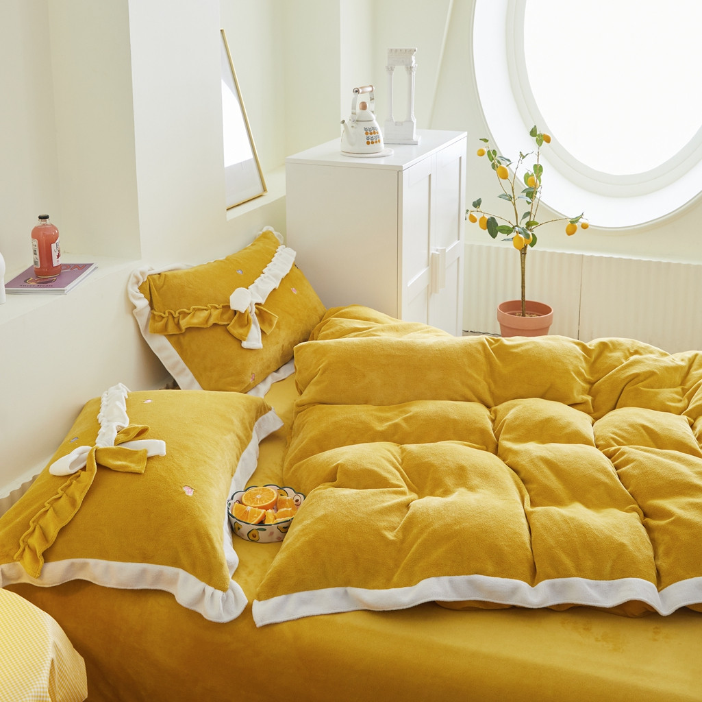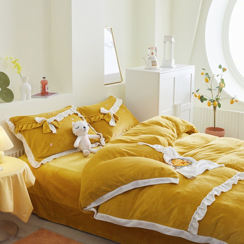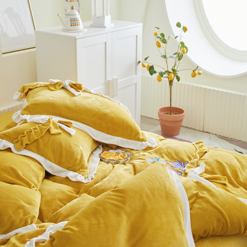眠屿 2020新款牛奶绒绣花菠萝系列四件套 菠萝-黄