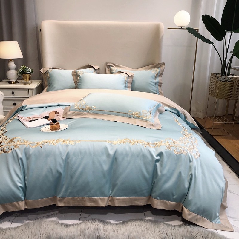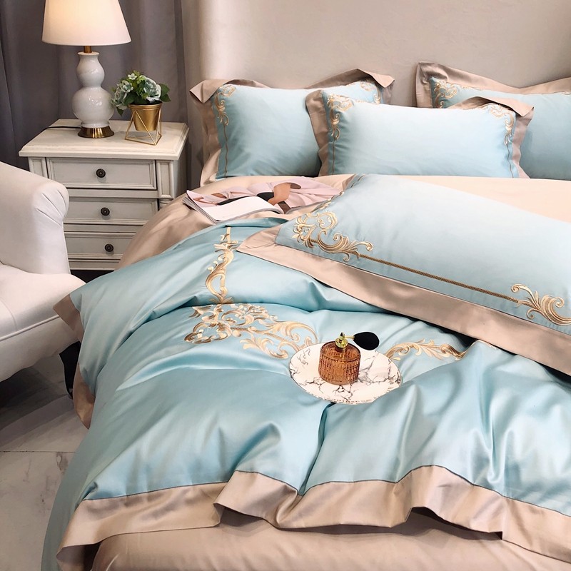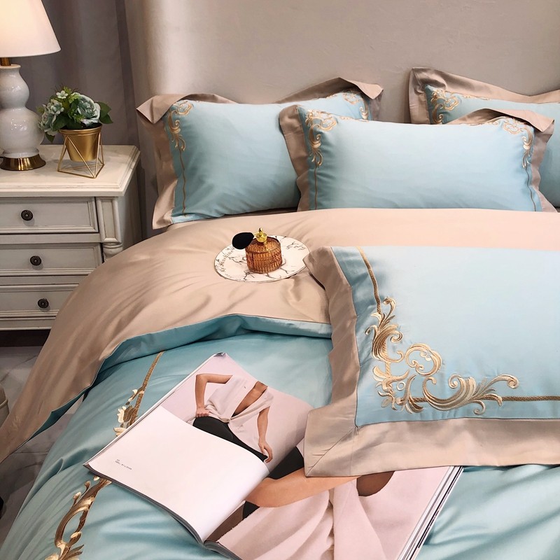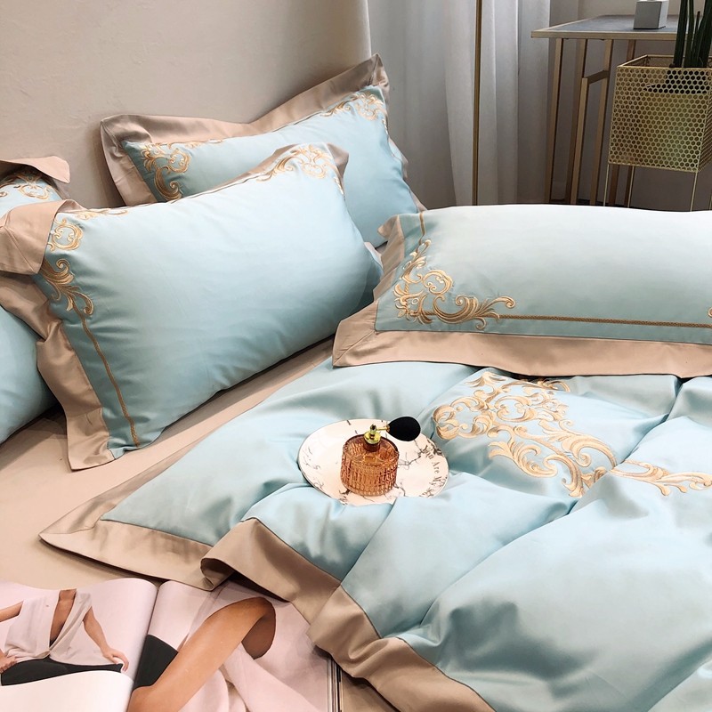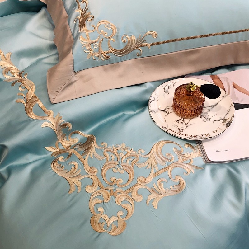 馨蕊家居 2021新品春夏高定100支格调四件套湖水蓝