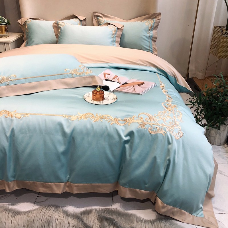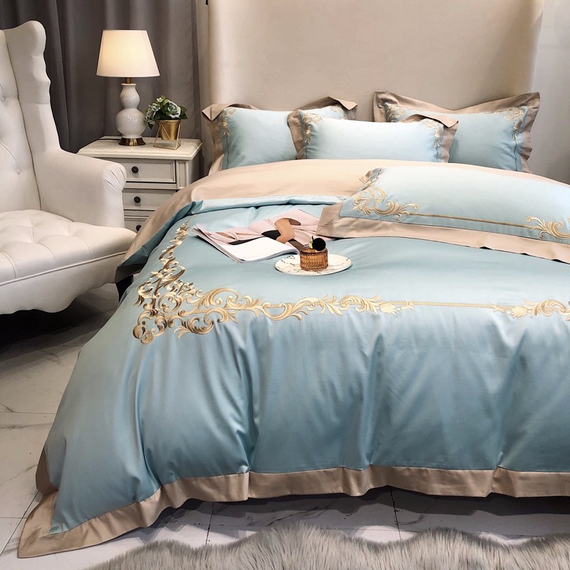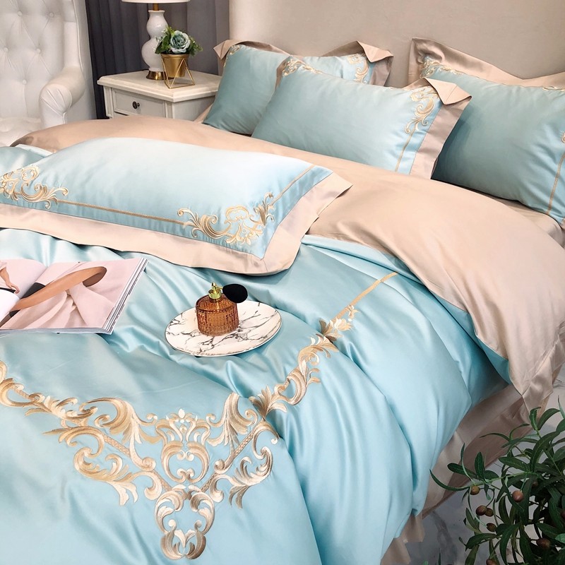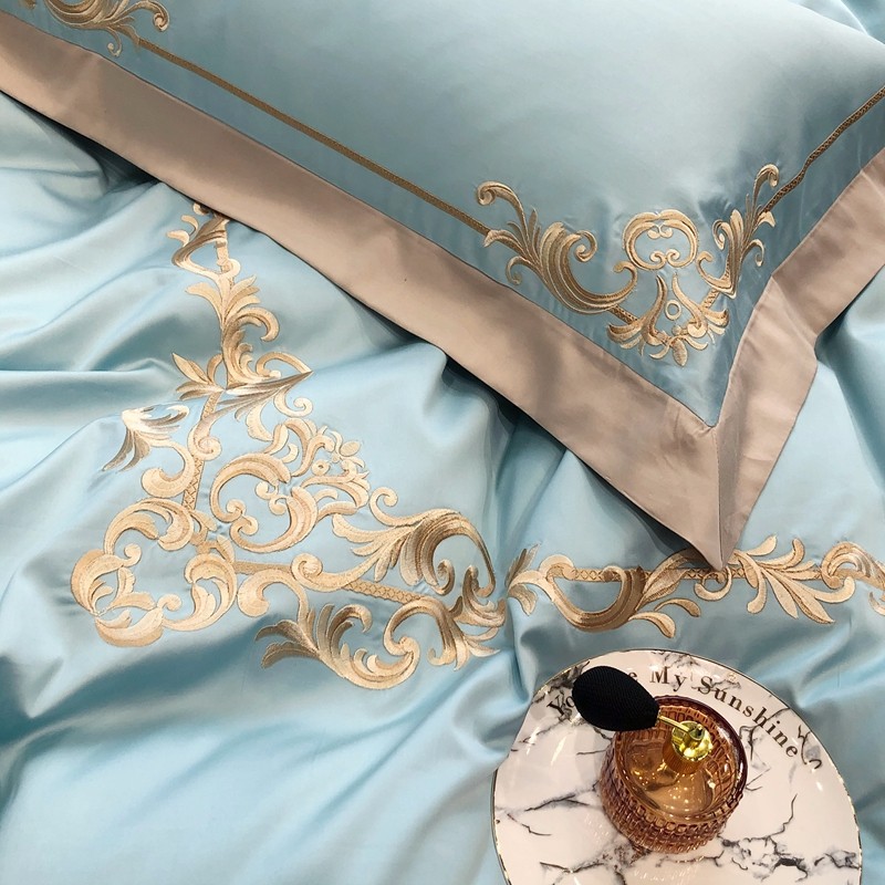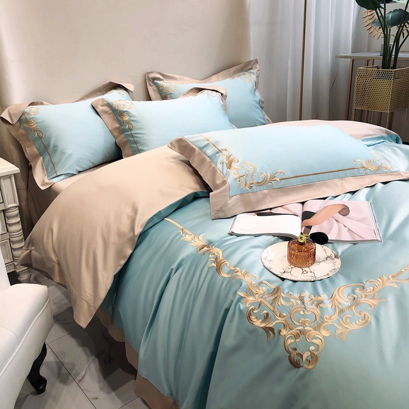 馨蕊家居 2021新品春夏高定100支格调四件套湖水蓝