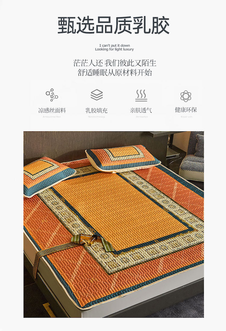 凡客 2022春夏新款大版数码印花凉感丝乳胶凉席三件套 半醉