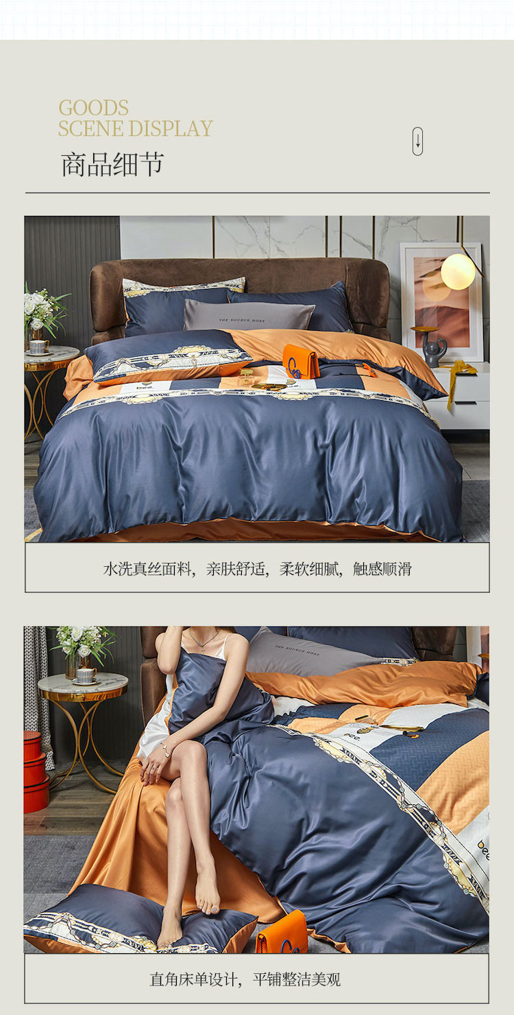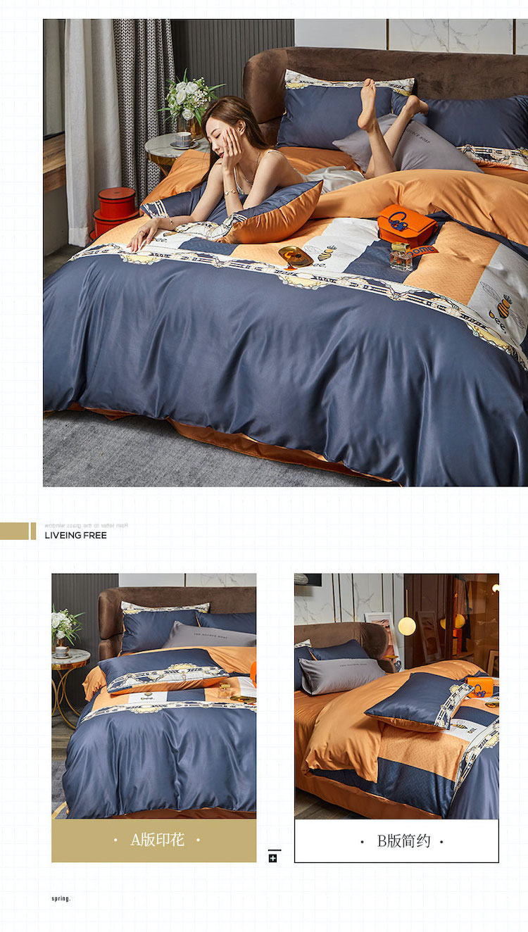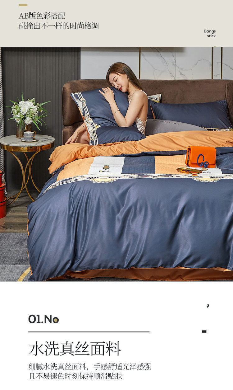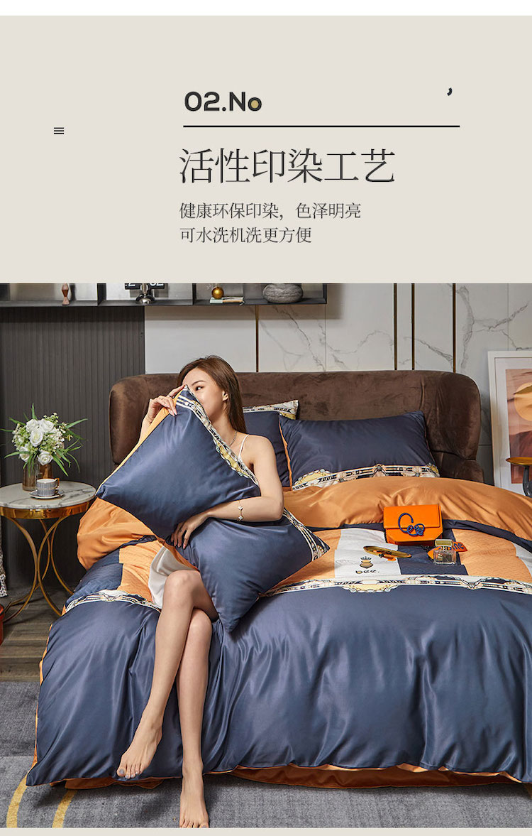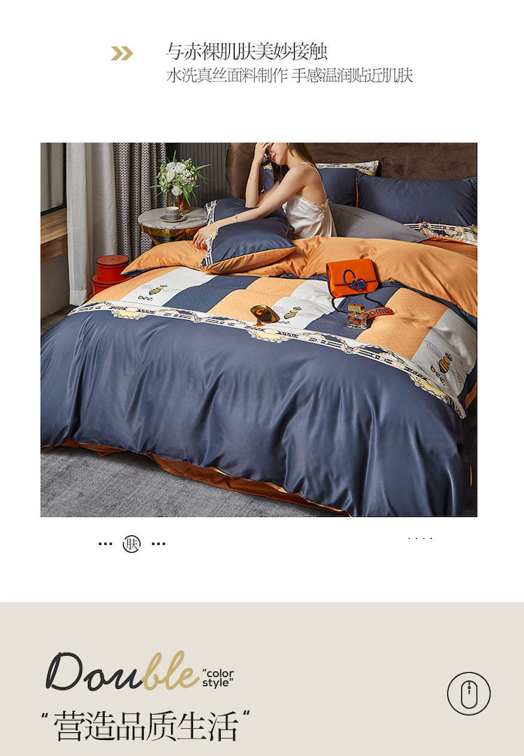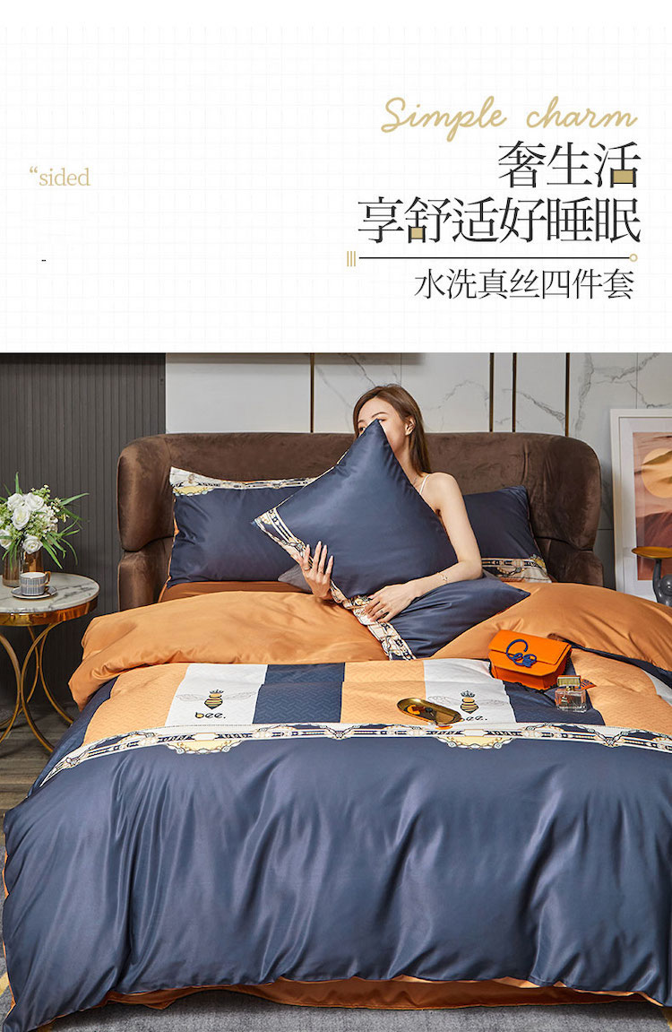 凡客 2021春夏新款60支水洗真丝数码印花四件套轻奢风系列 罗塞恋歌