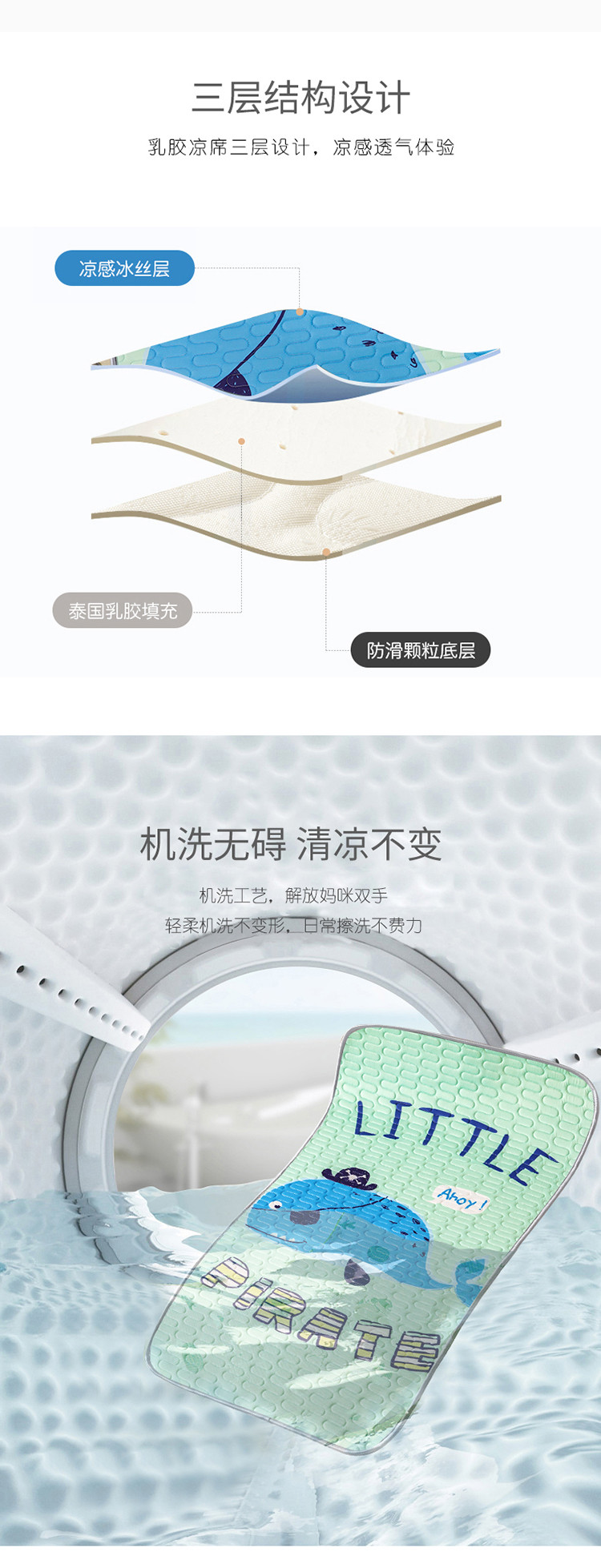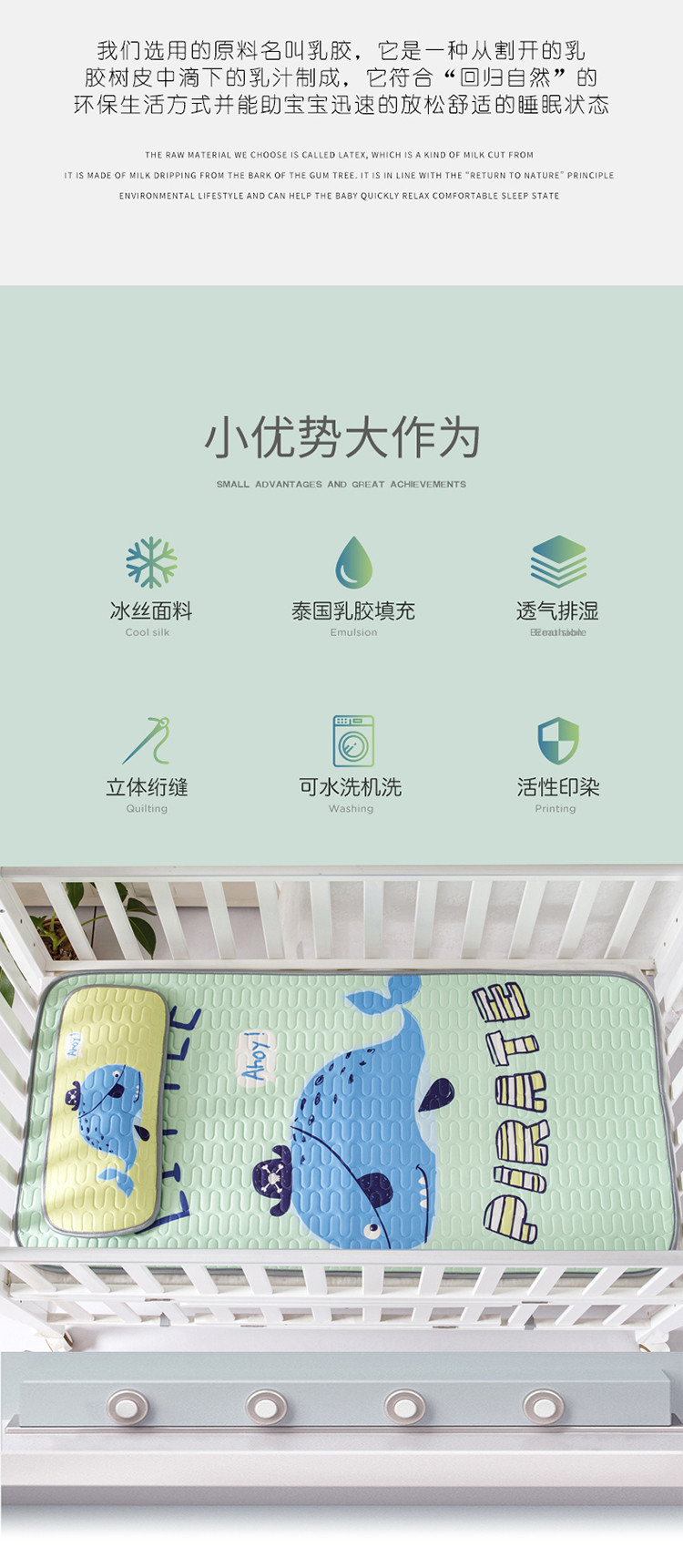 商品名称:小芽家居 2024新款儿童乳胶凉席卡通 搞怪鲸鱼