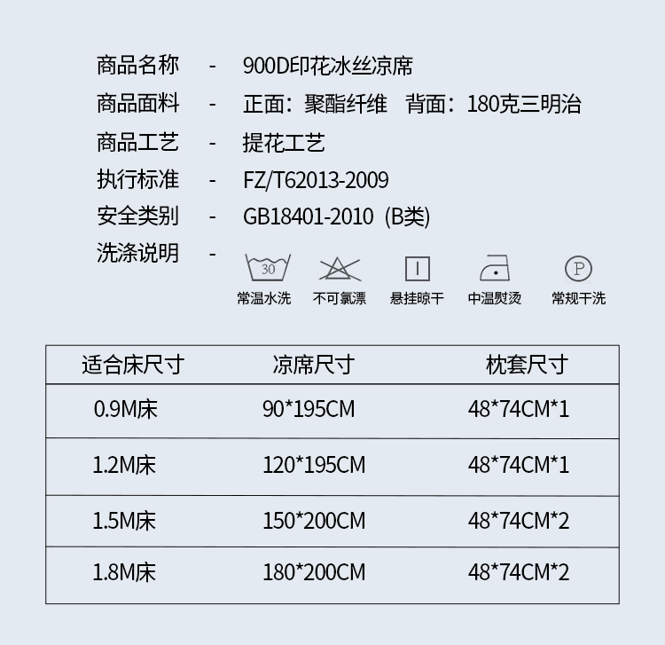 商品名称:全季家居 2021新款900D高精密三色维冰丝凉席 几叶
