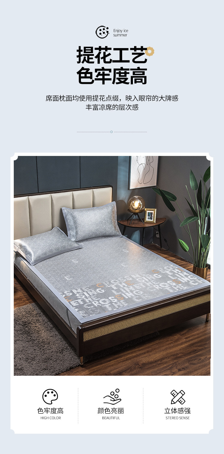 (总)全季家居 2023新款A类轻奢抗菌冰藤席,和意款-孔雀蓝,和意款-星际灰,和意款-薄荷绿,字母款-孔雀蓝,字母款-薄荷绿,字母款-星际灰
