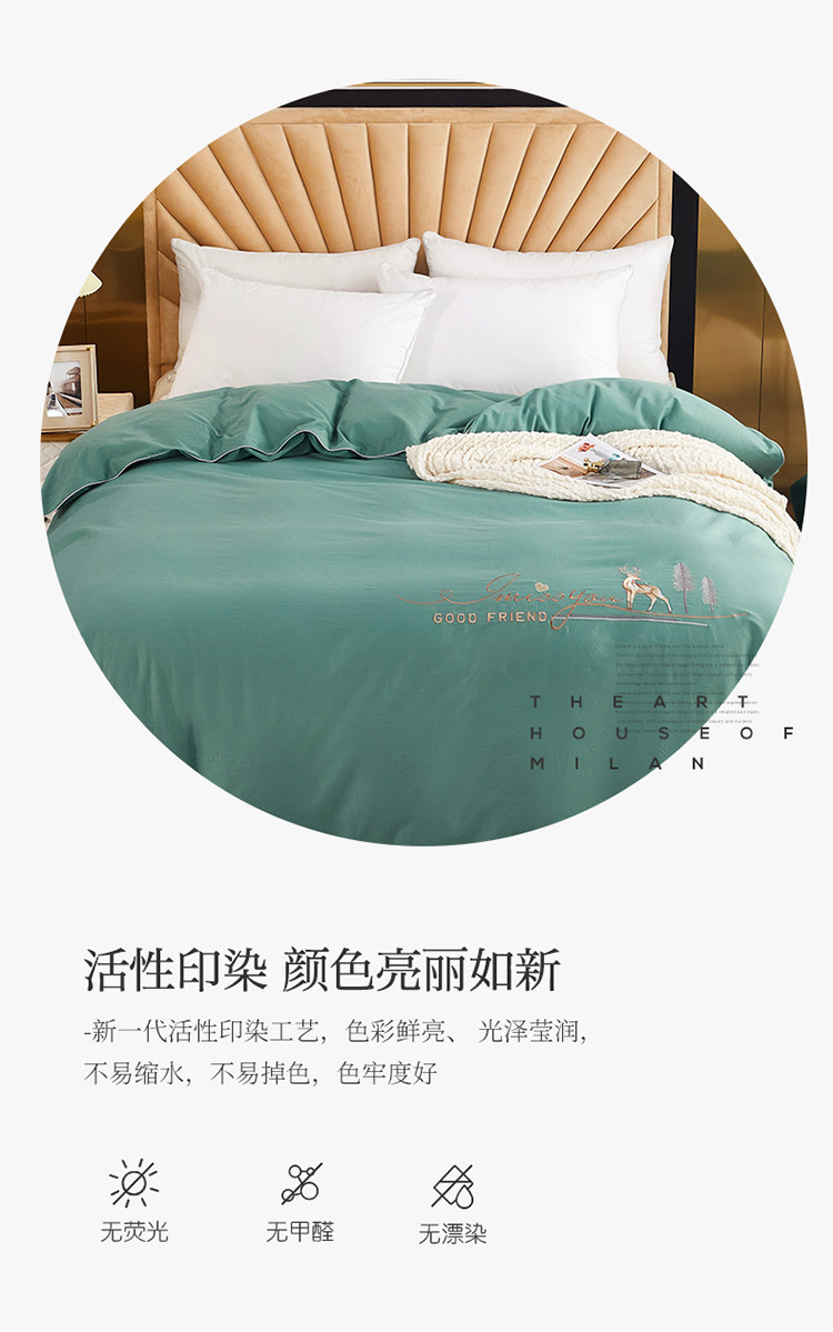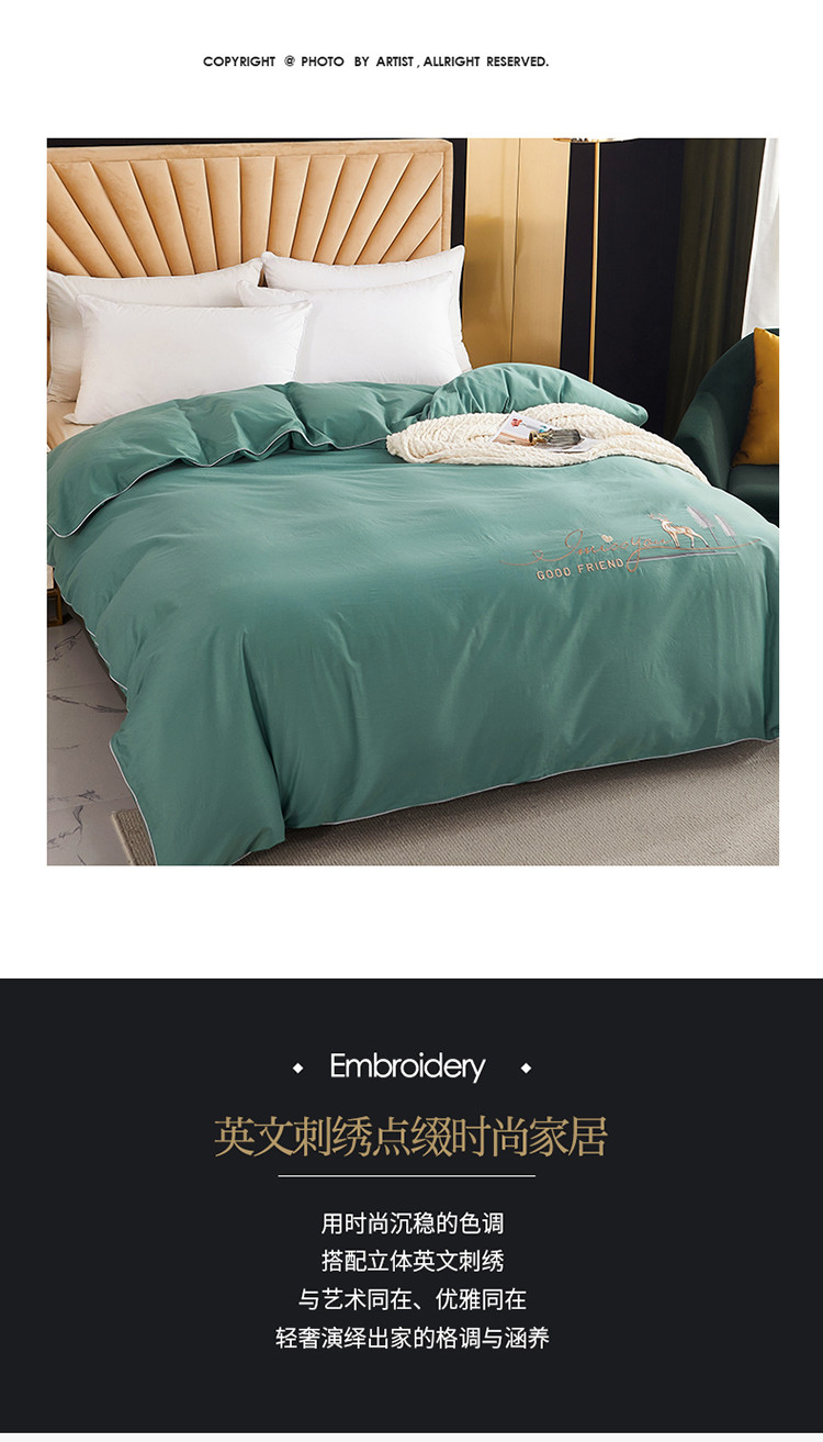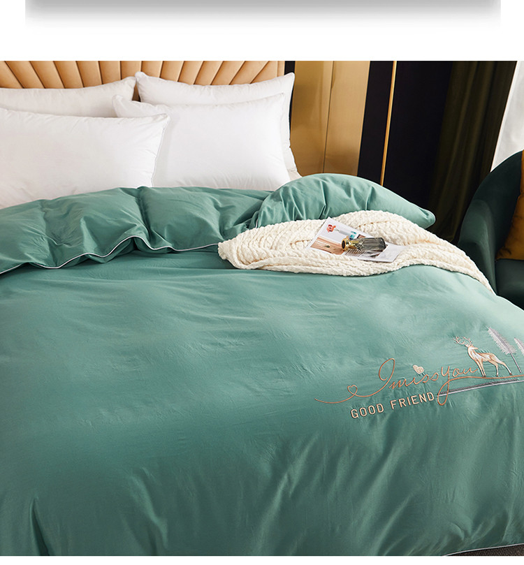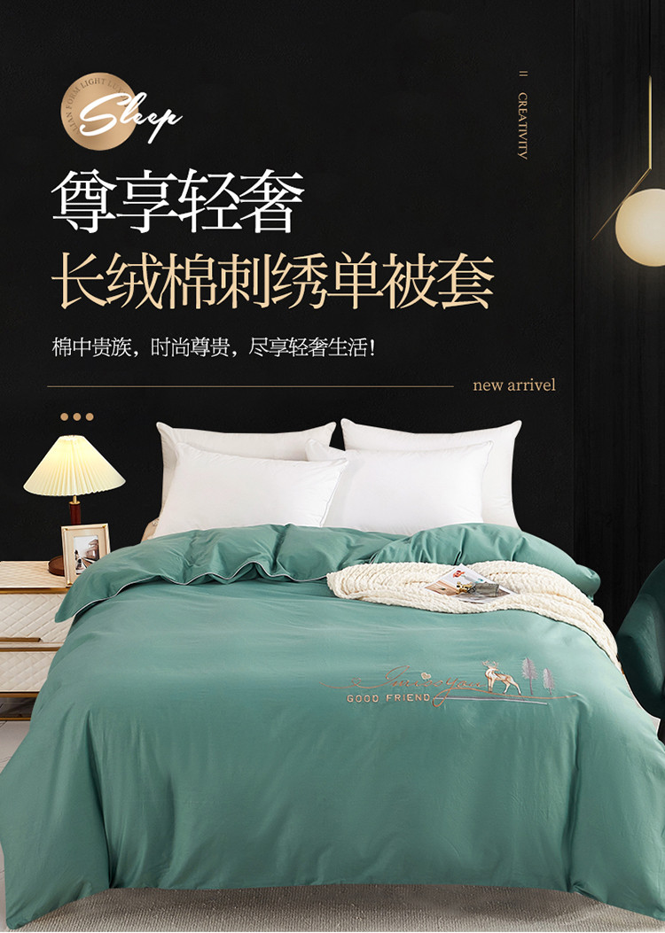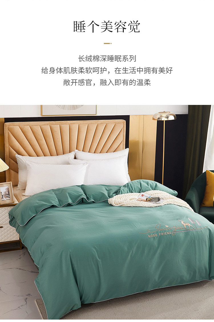 商品名称:金窝窝家纺 2024新款纯棉绣花单被套 福鹿相伴松石青
