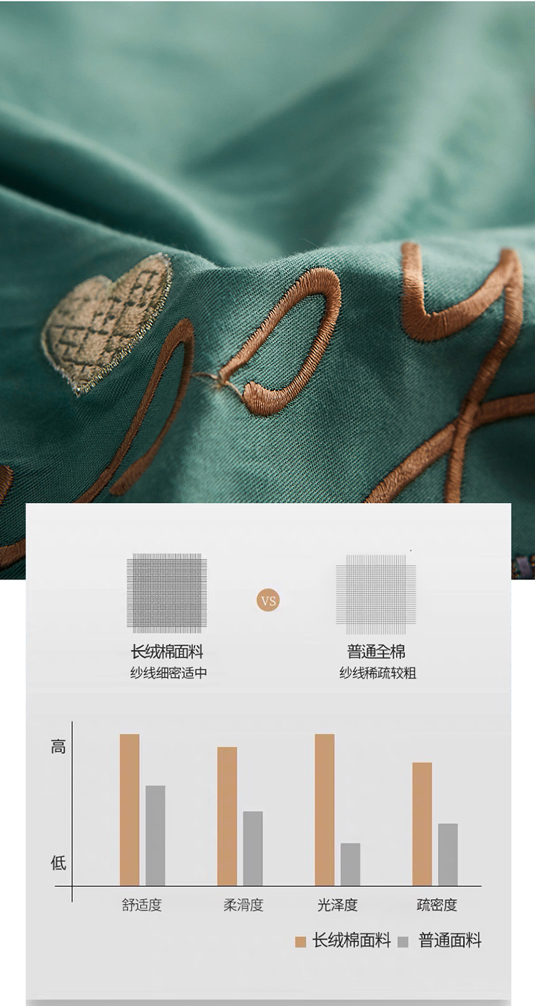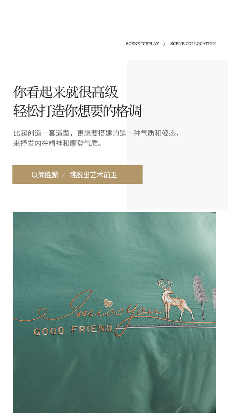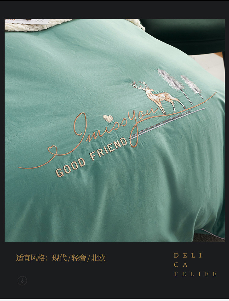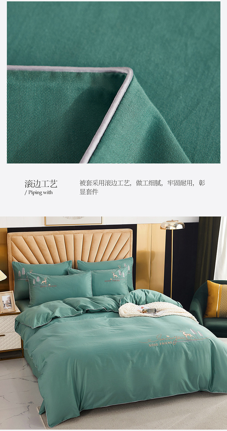 商品名称:金窝窝家纺 2024新款纯棉绣花单被套 福鹿相伴松石青