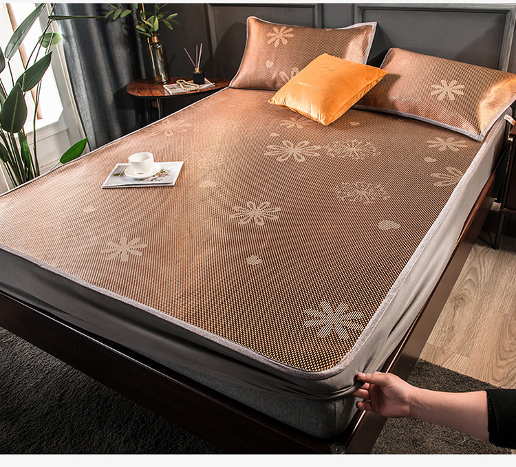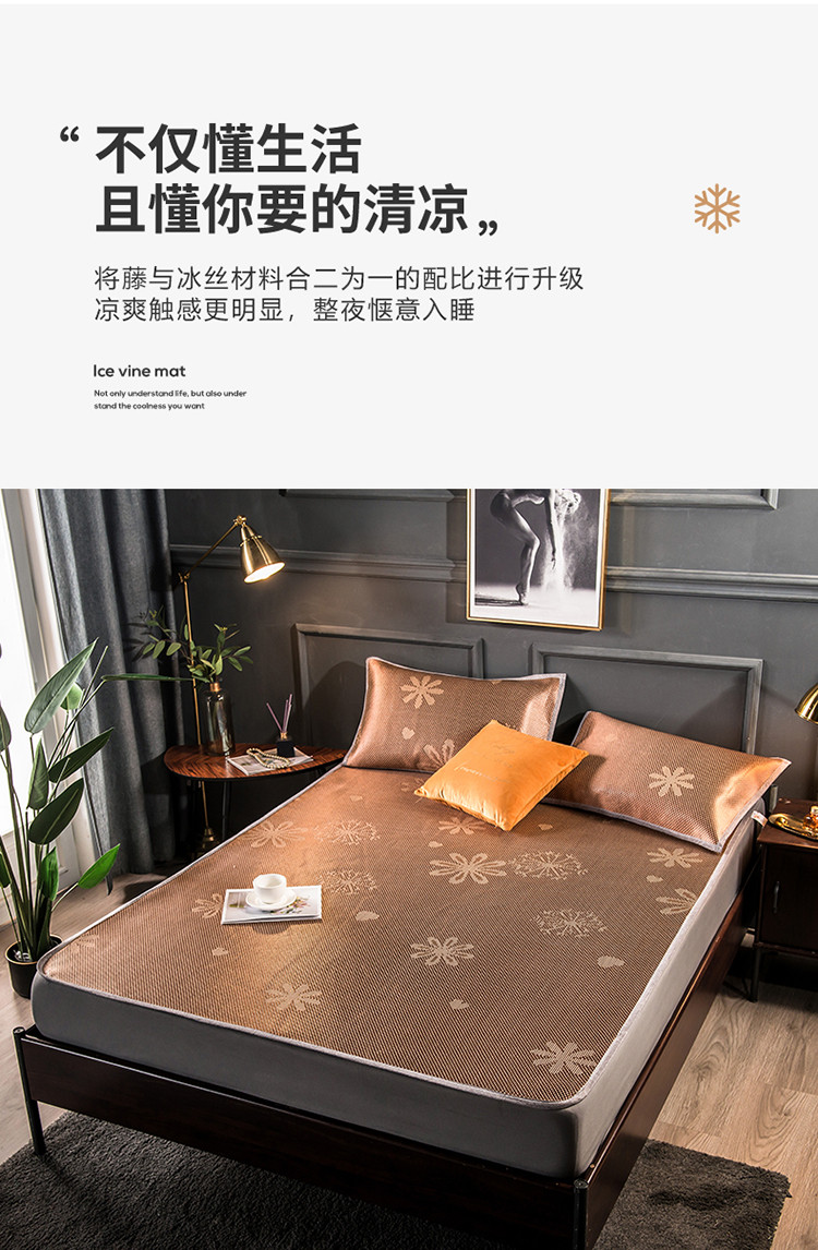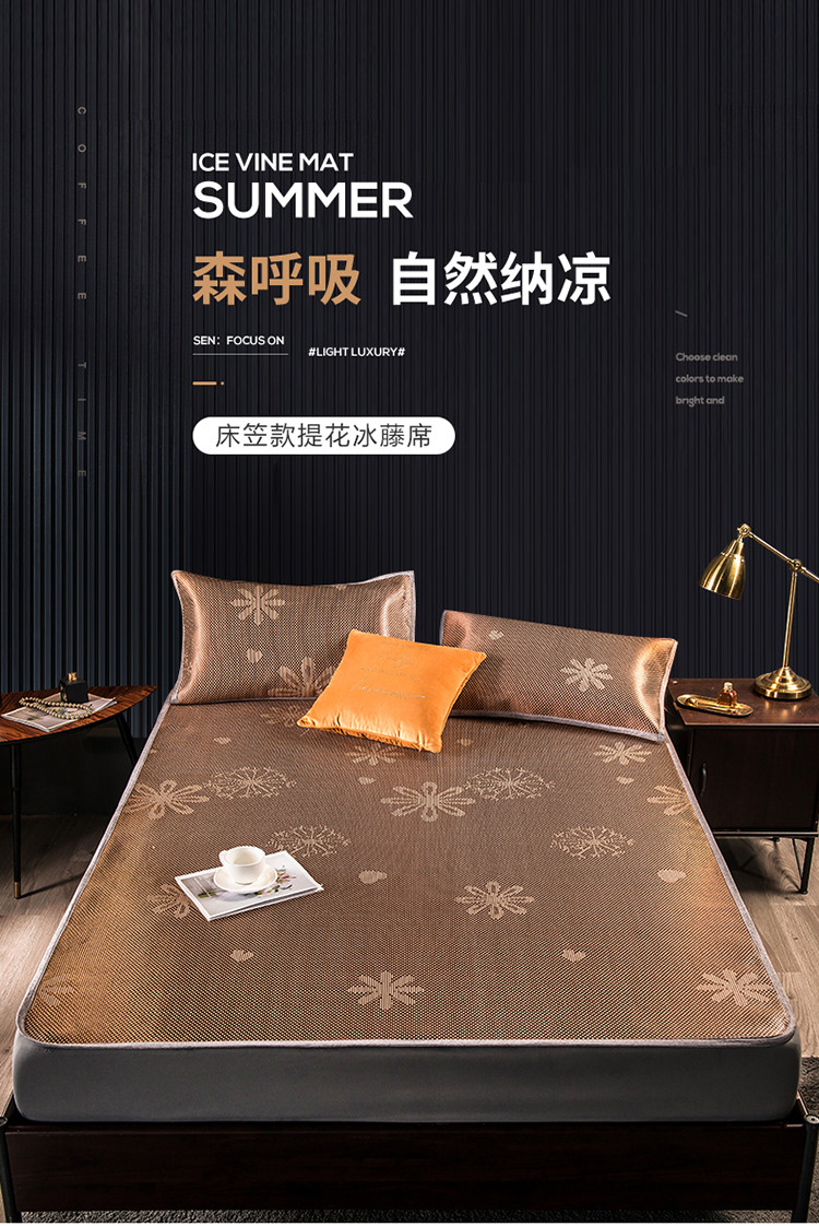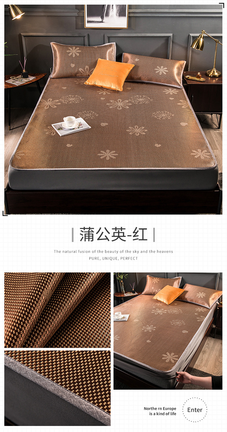 商品名称:恒爱2021新品床笠款提花冰藤席 蒲公英-红