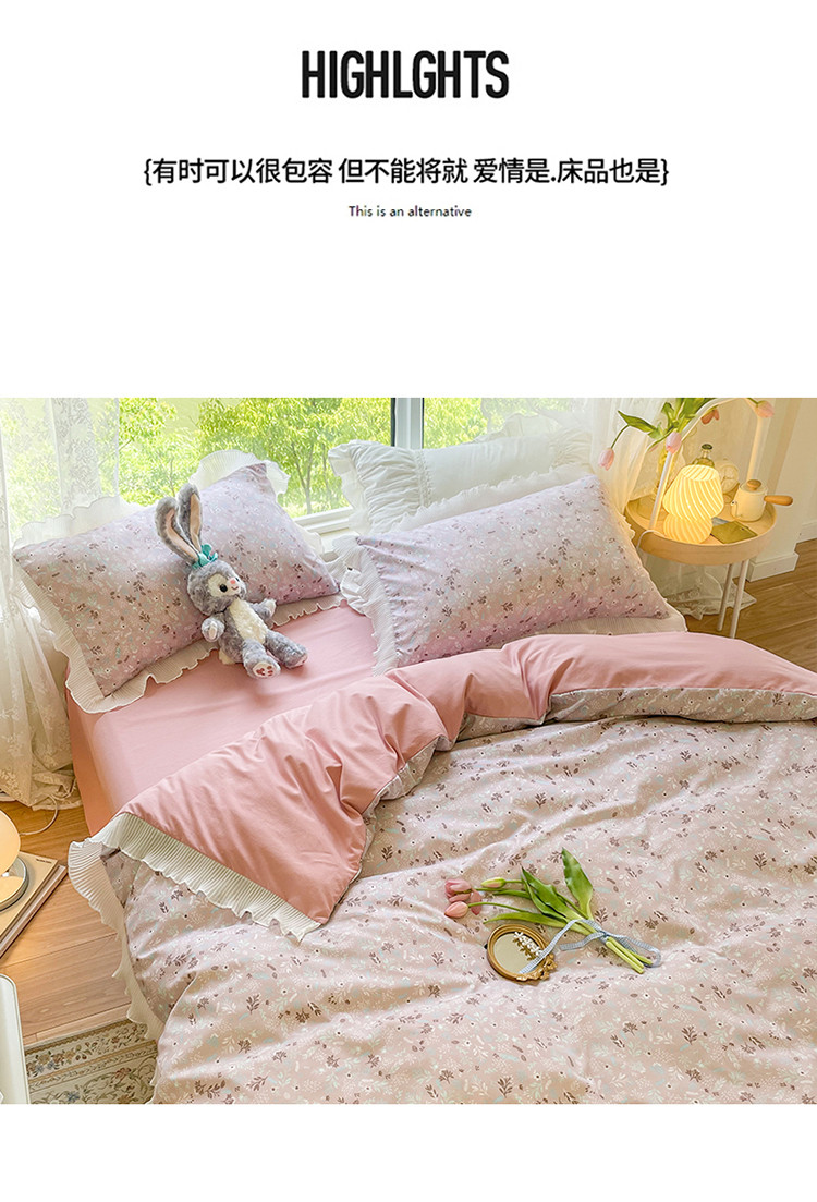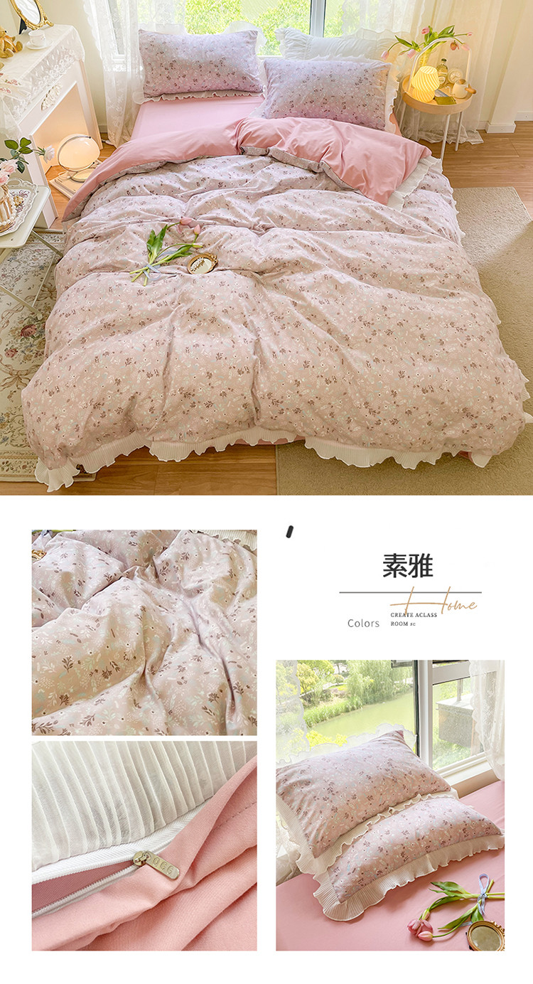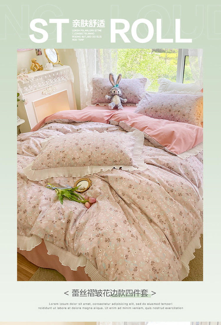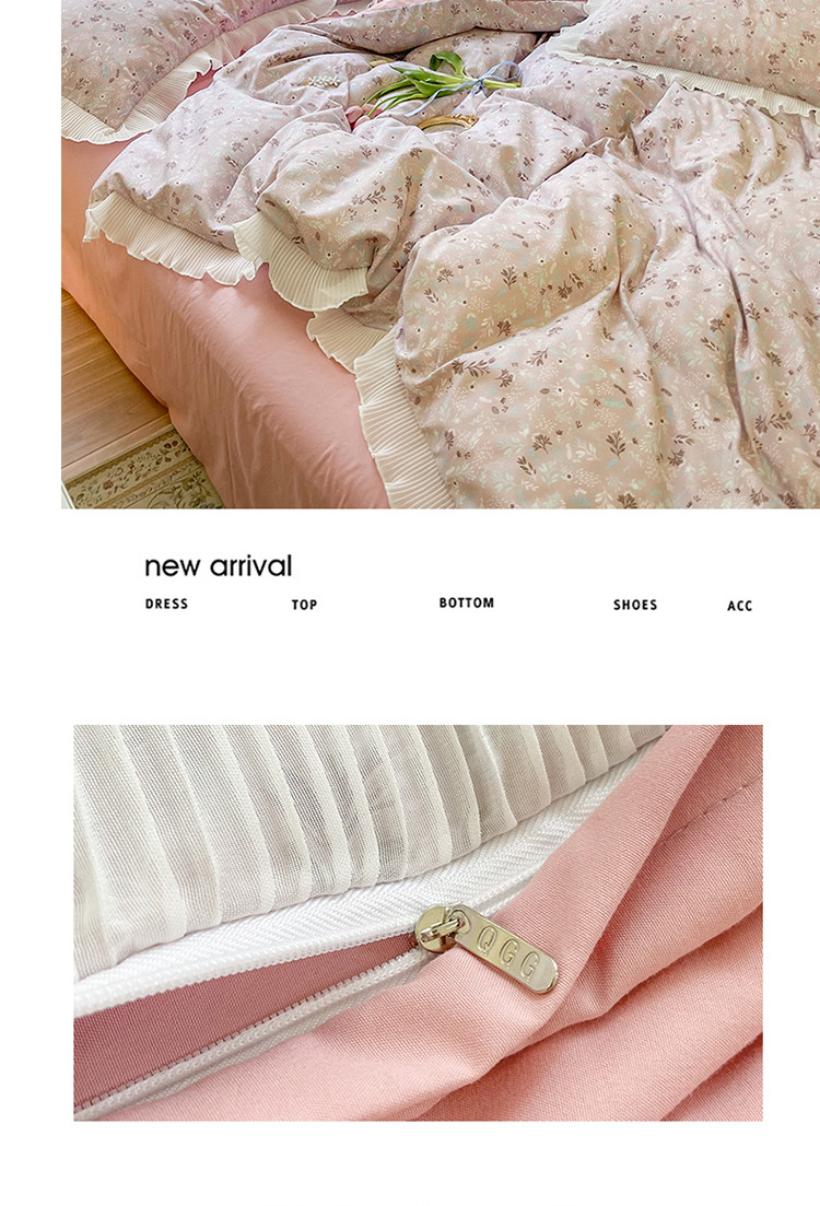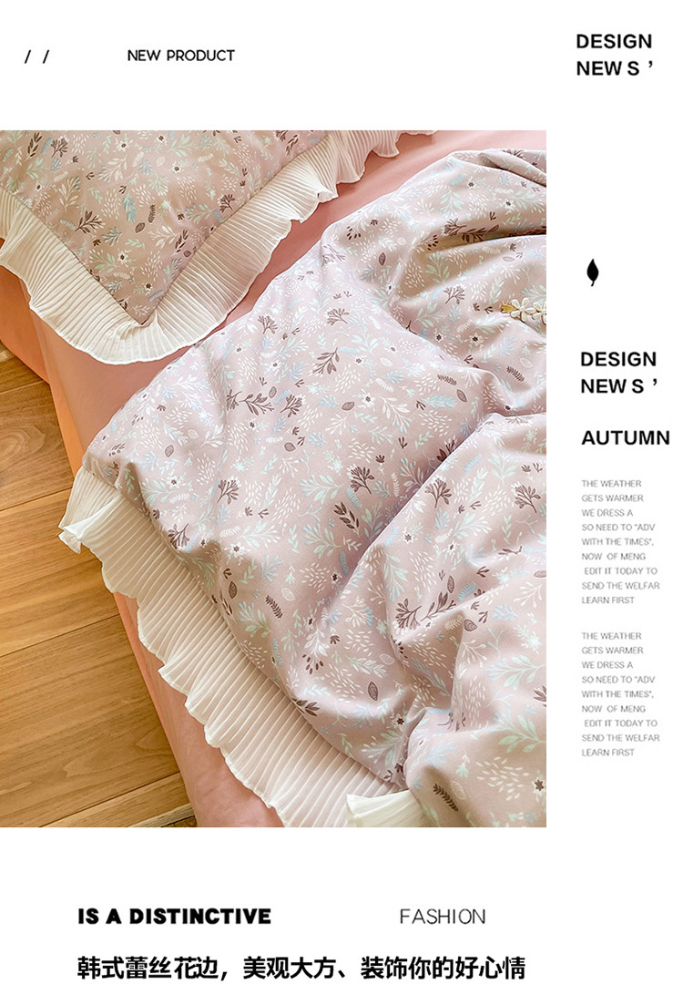 琪格格纺织 2022新款水洗棉蕾丝边四件套 素雅