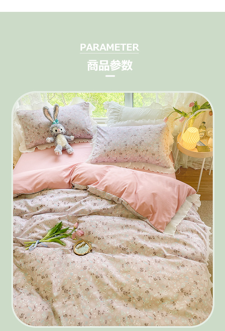 商品名称:琪格格纺织 2022新款水洗棉蕾丝边四件套 素雅