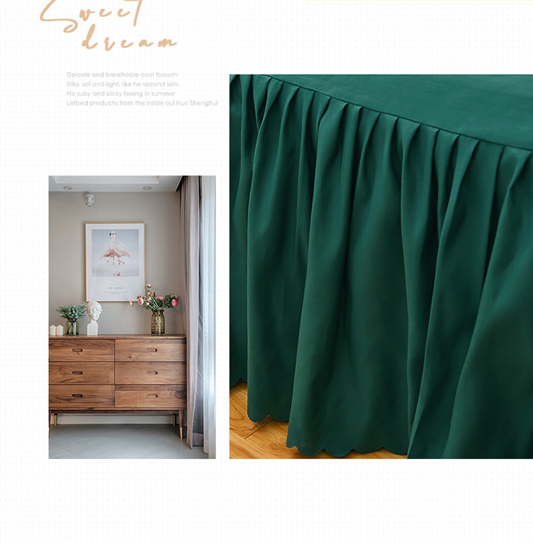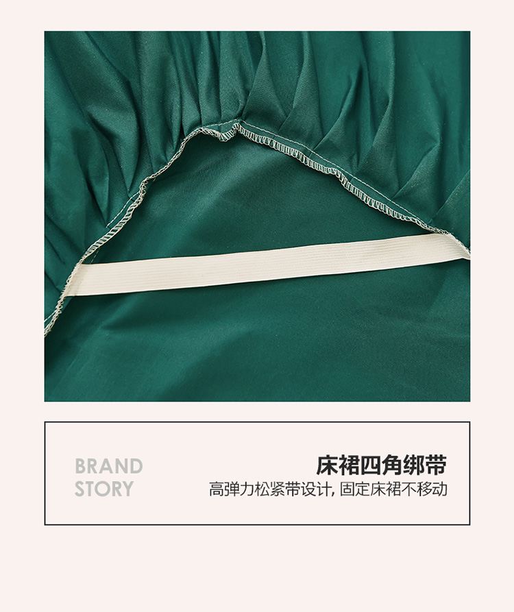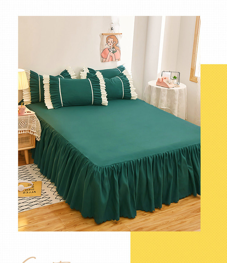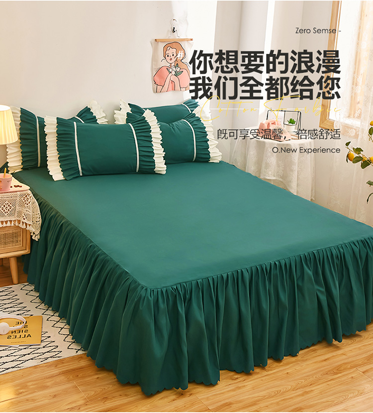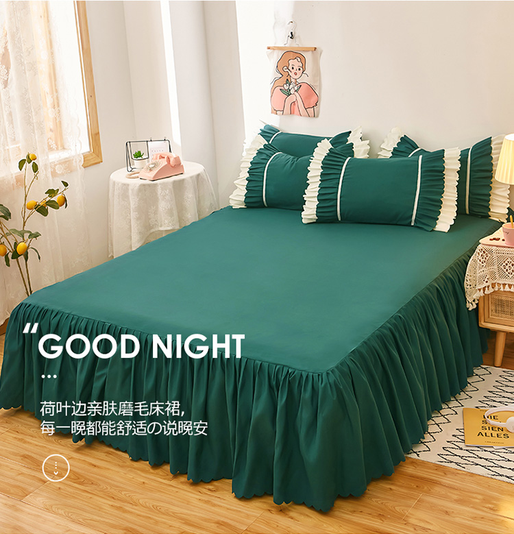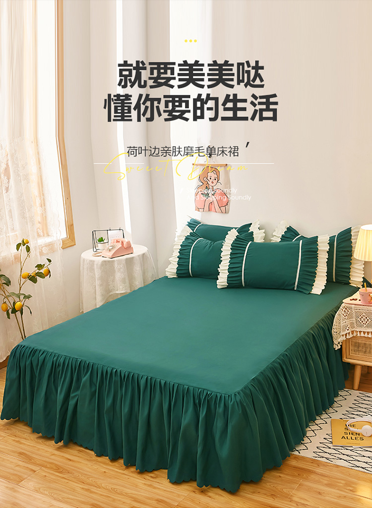 商品名称:莉莉安 2025新款荷叶边亲肤磨毛单床裙-流年系列 流年-墨绿