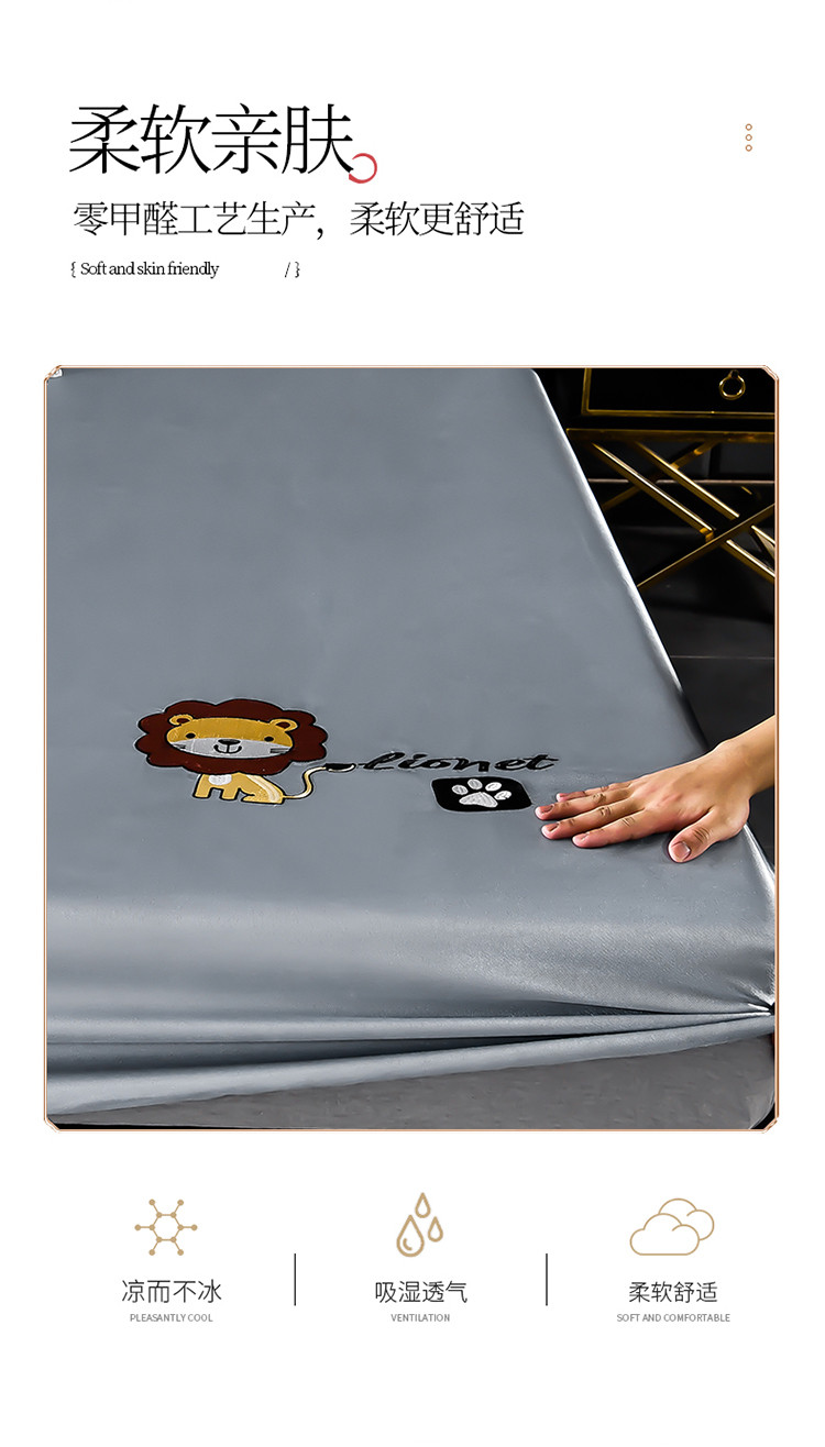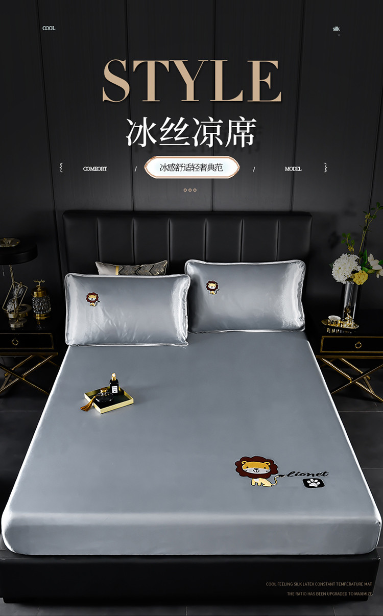 芃成家纺 2021新款冰丝凉席刺绣床笠款 辛巴浅灰