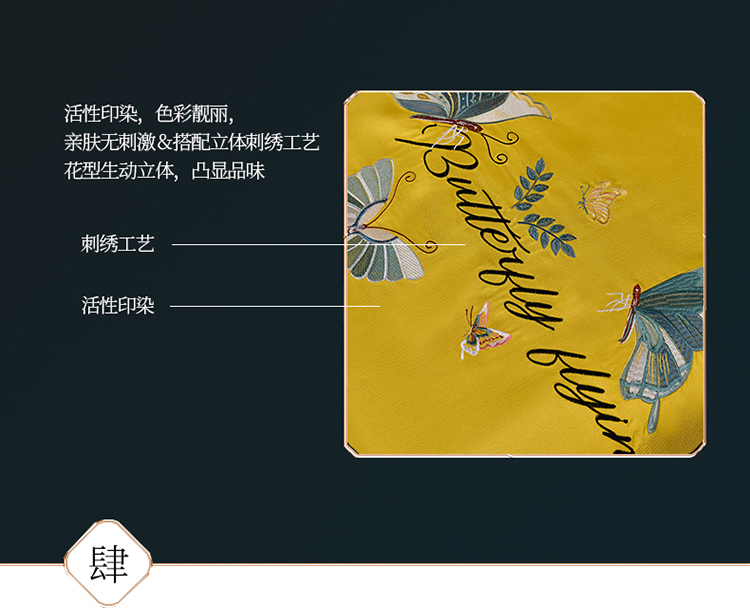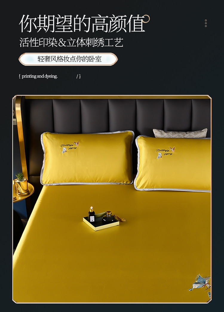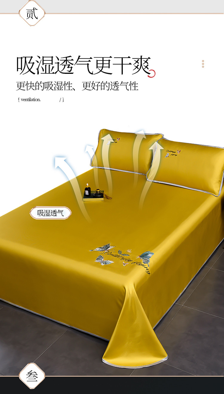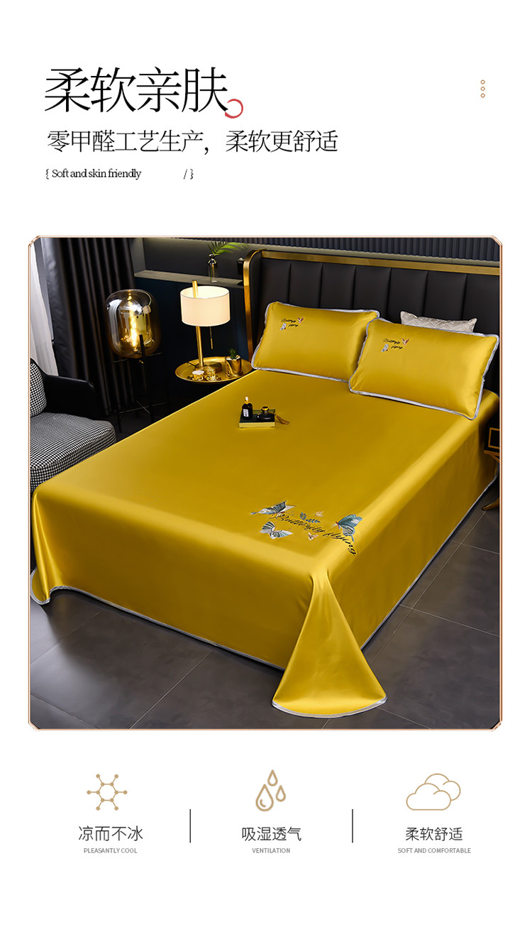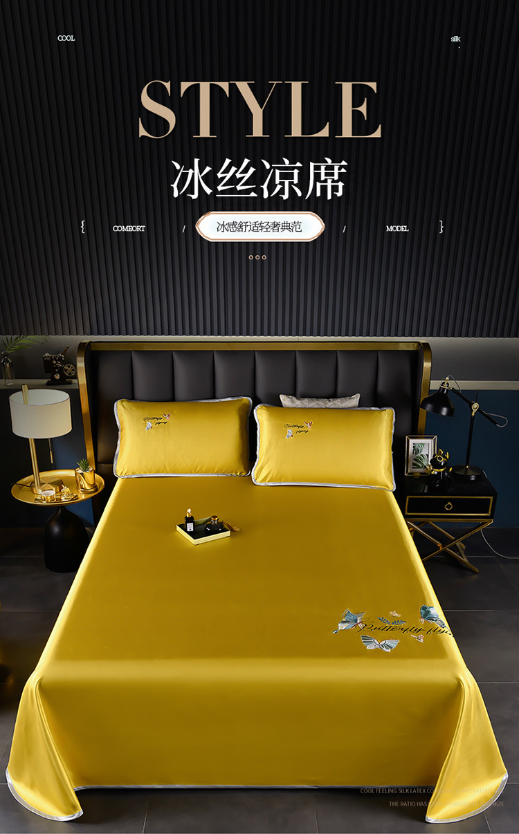 商品名称:芃成家纺 2021新款冰丝凉席刺绣床单款 蝴蝶姜黄