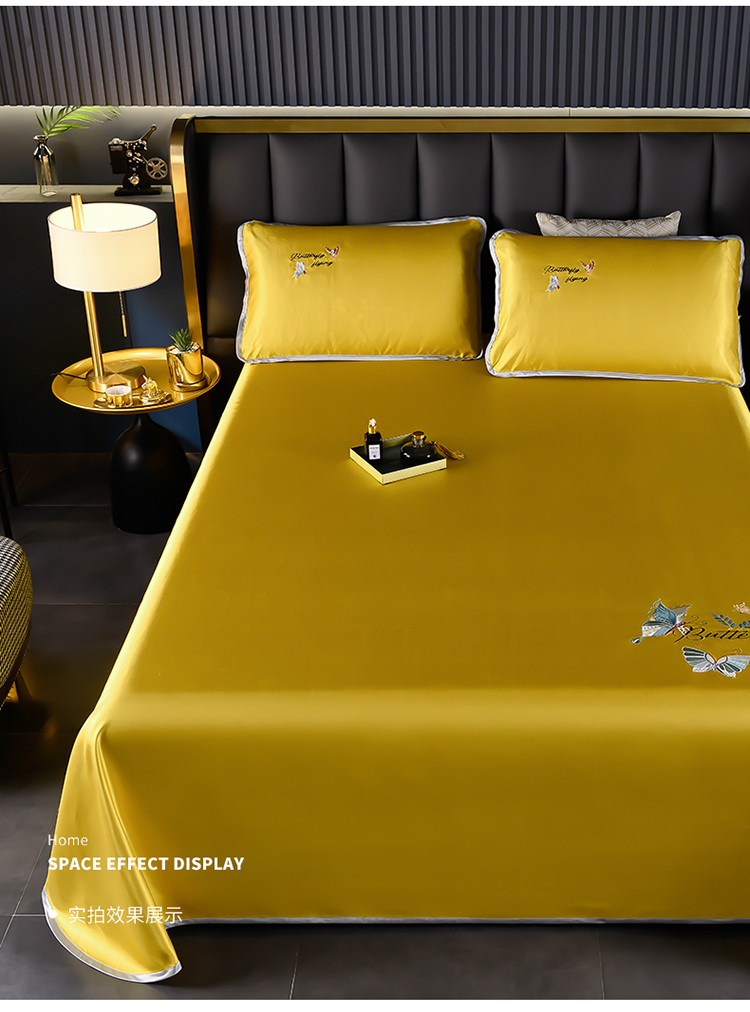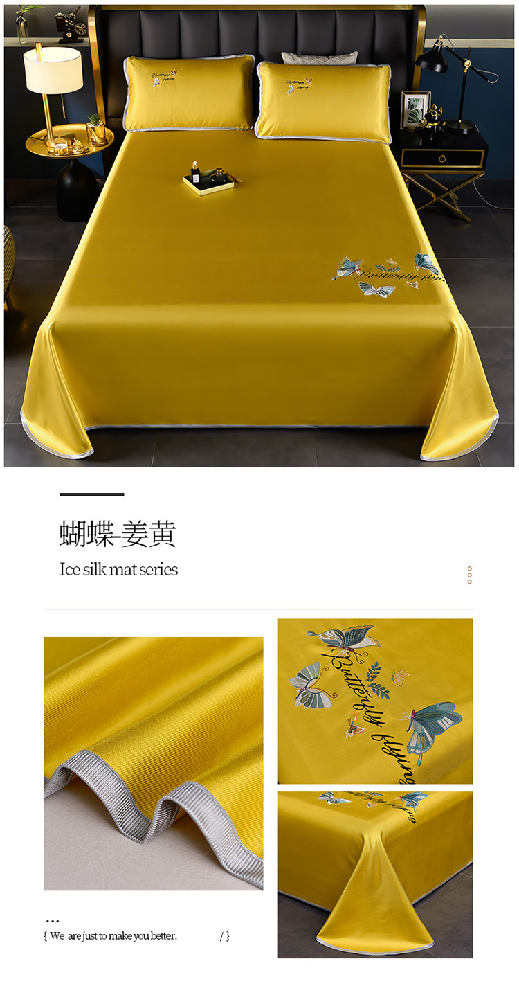 芃成家纺 2021新款冰丝凉席刺绣床单款 蝴蝶姜黄