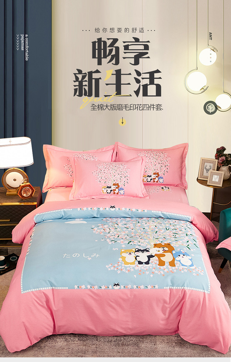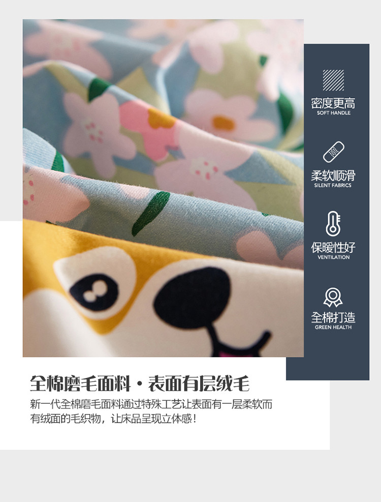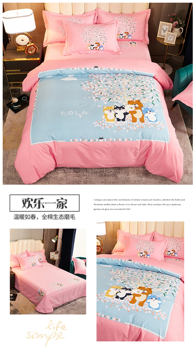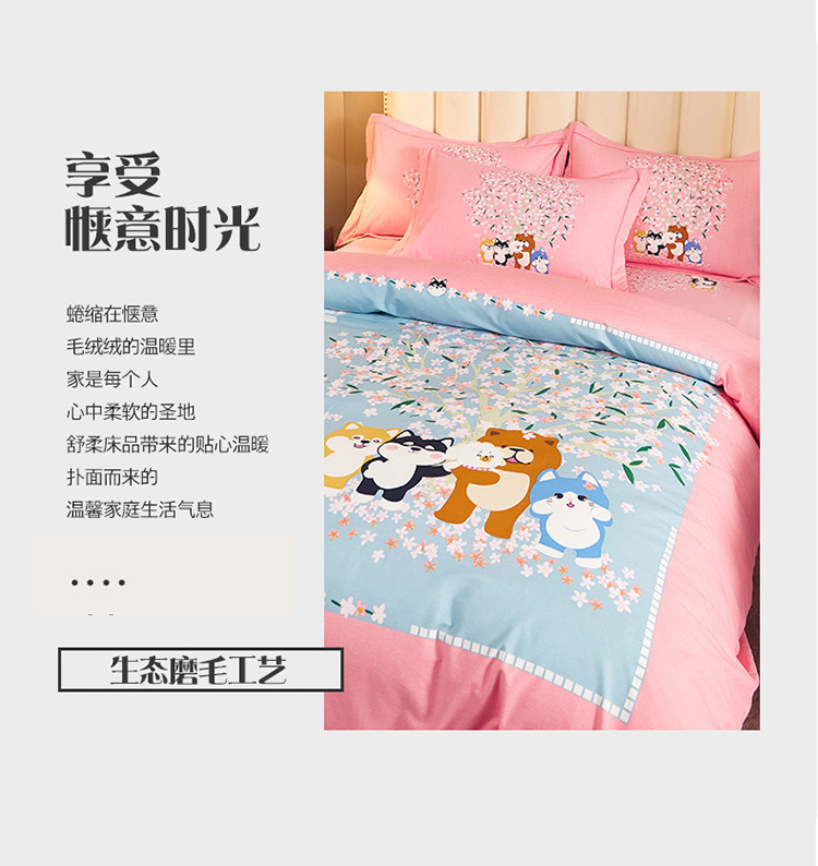 雲归梦2021全棉大版生态磨毛四件套卡通花型第1批 欢乐一家