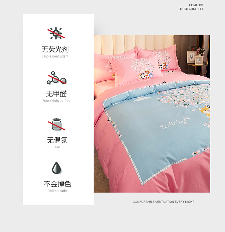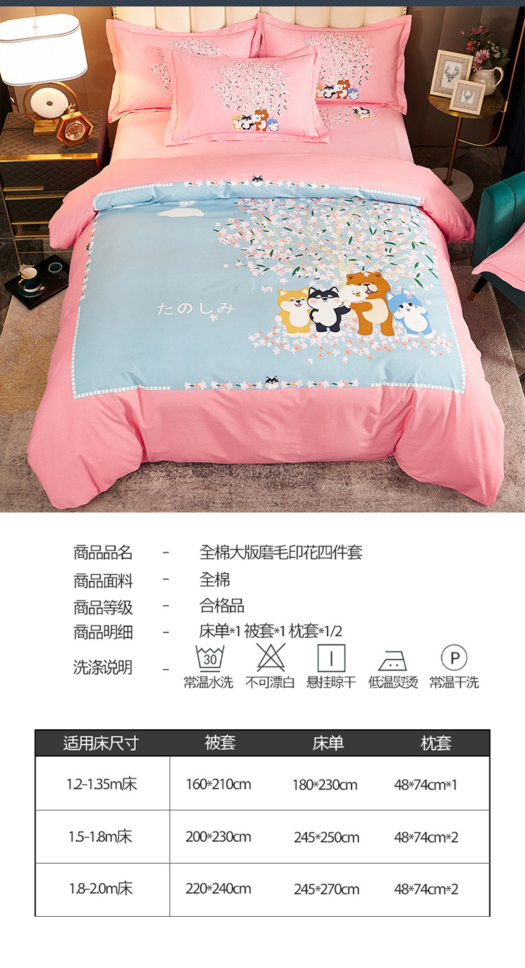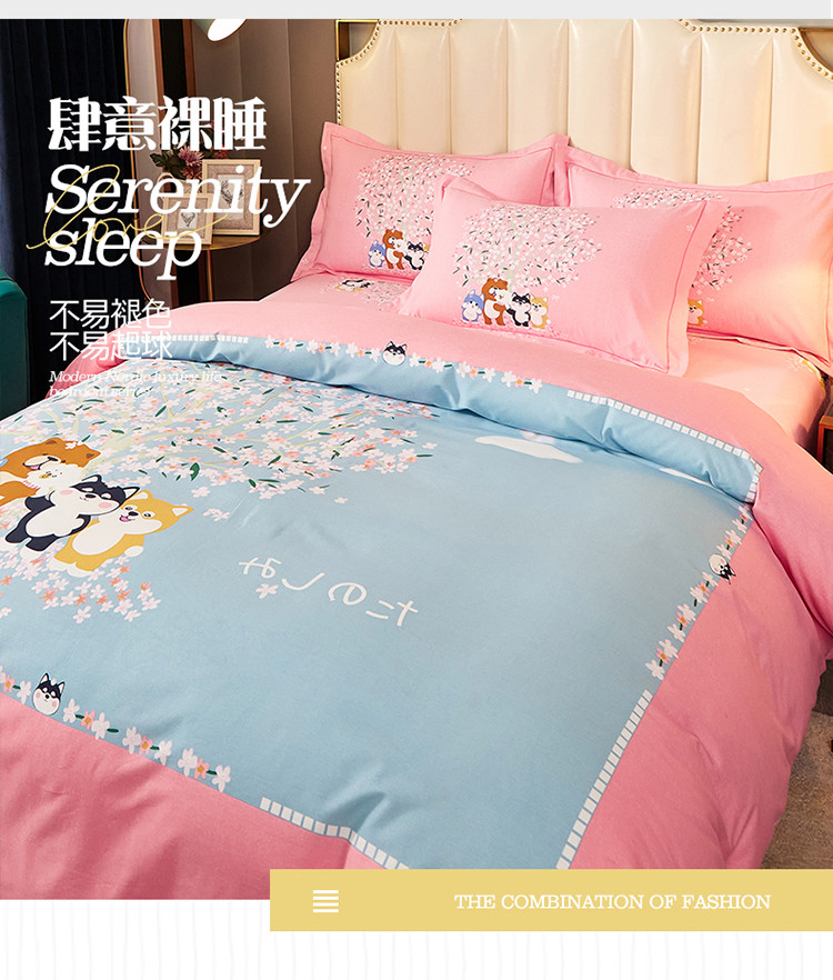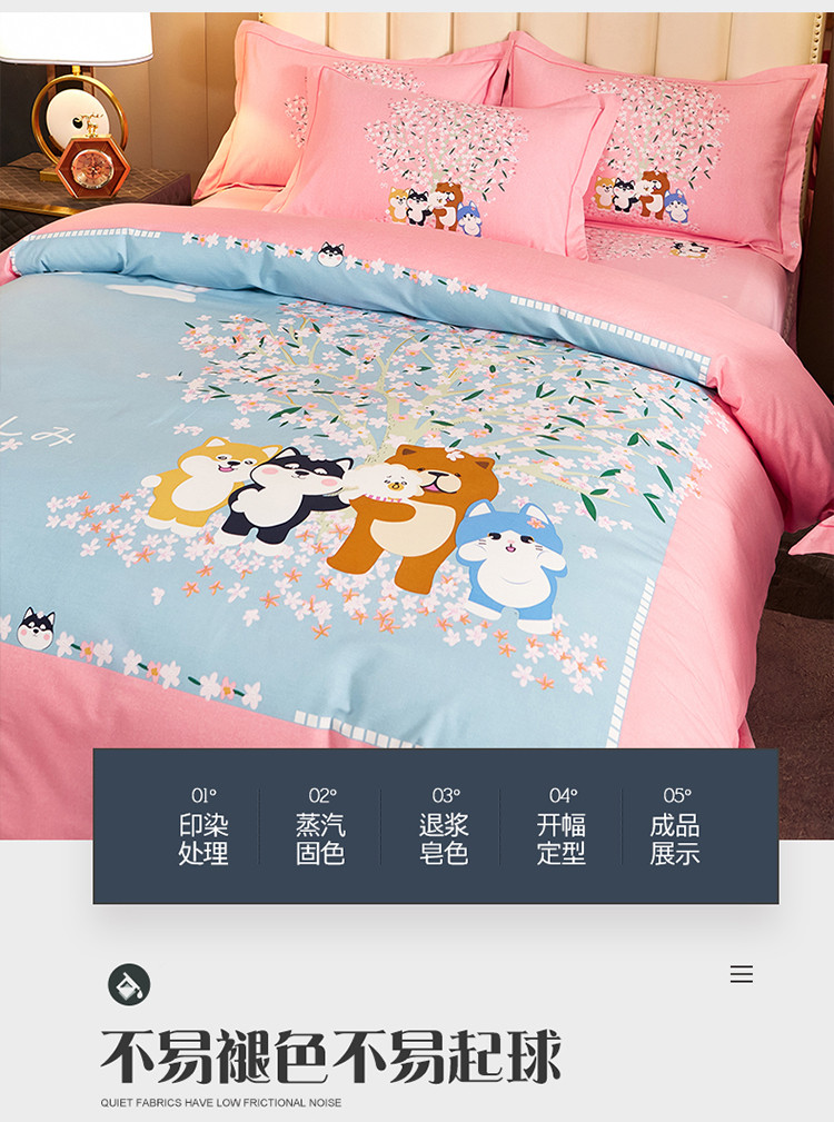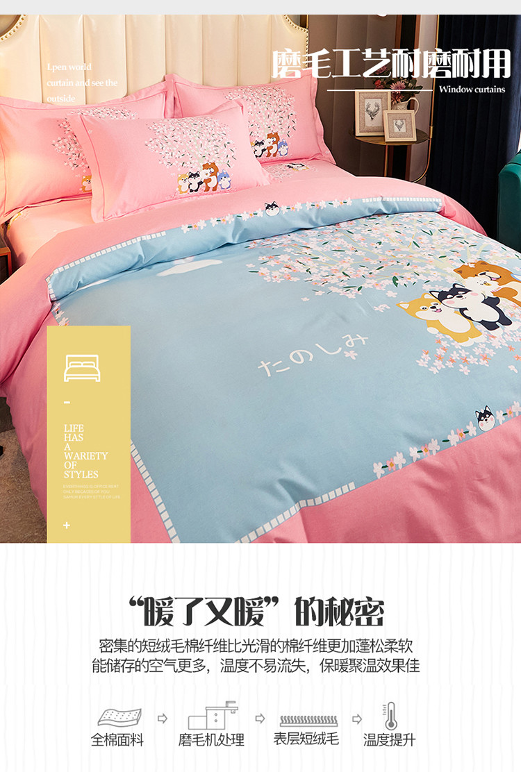 雲归梦2021全棉大版生态磨毛四件套卡通花型第1批 欢乐一家