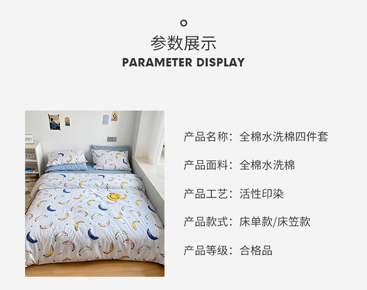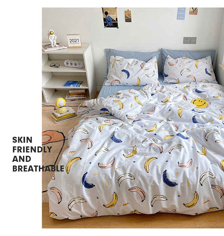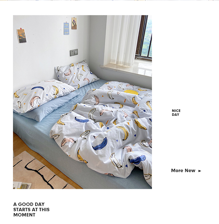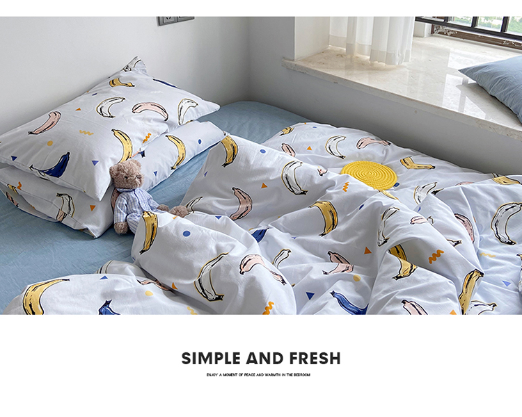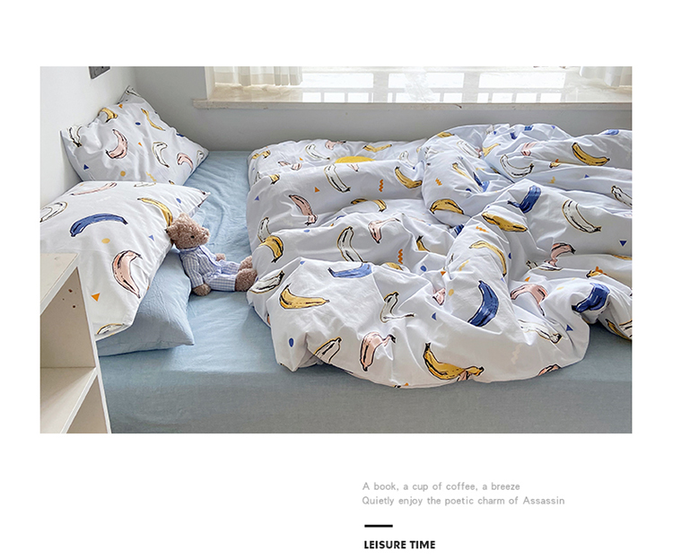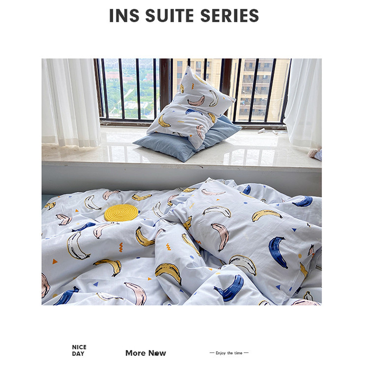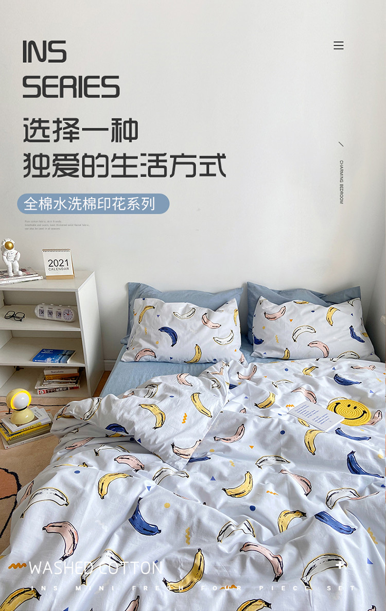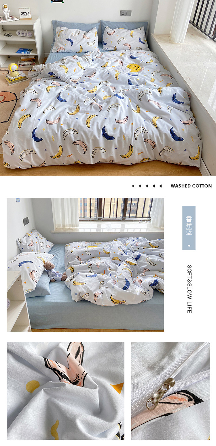 当前位置: 91家纺网 > 商品网购 > 床品套件 > 四件套 > 全棉普通四件套 > 尺素 纯棉ins印花水洗棉卡通可爱全棉被套纯色床单四件套 香蕉蓝