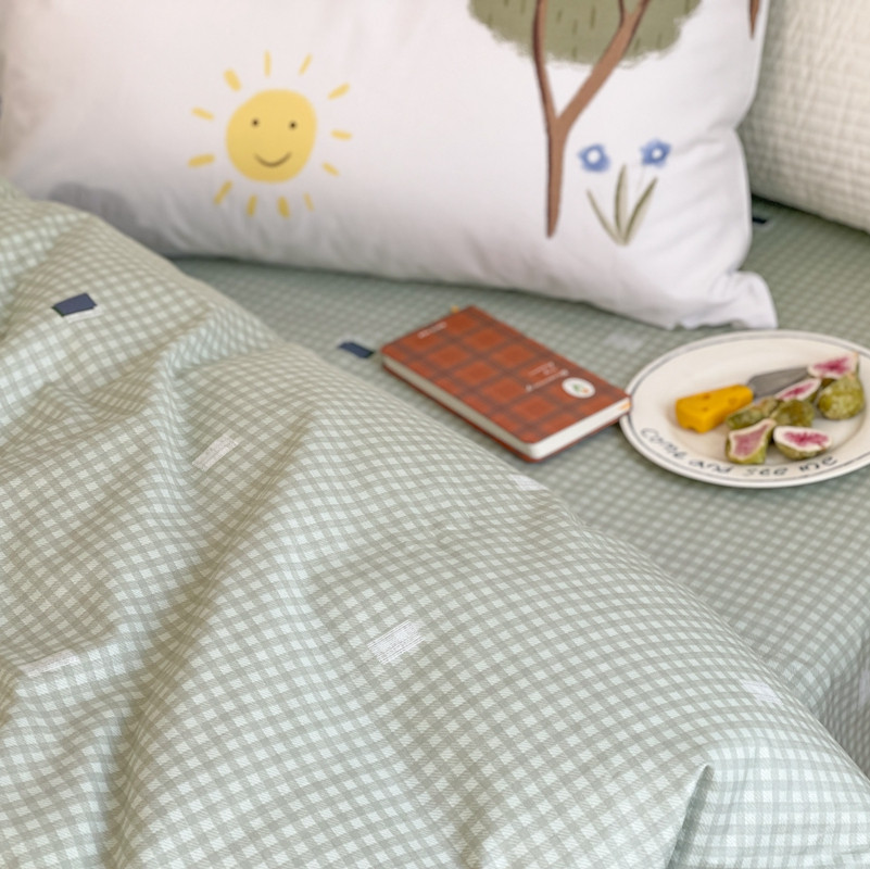 时年 2022新款全棉40支13372ins条纹款四件套 复古奶绿,复古奶绿