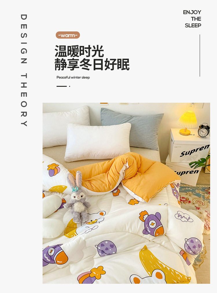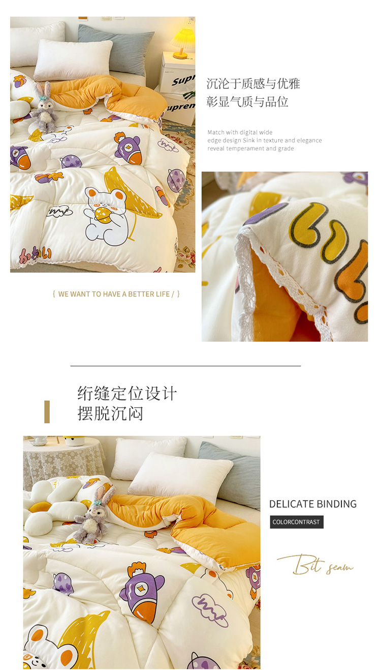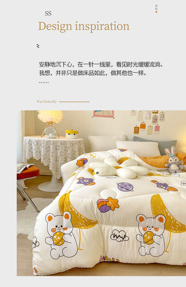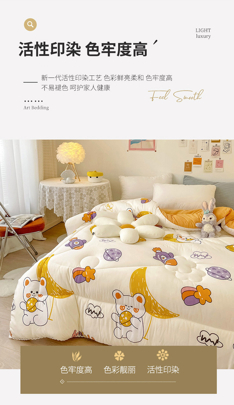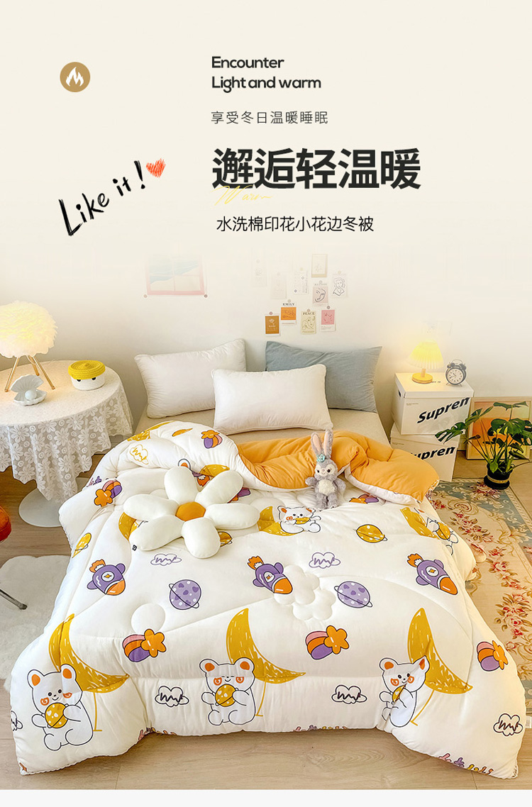 • 91家纺网 家纺一手货源 找家纺 慕尚家纺 2022新款水洗棉小花边冬被 萌熊