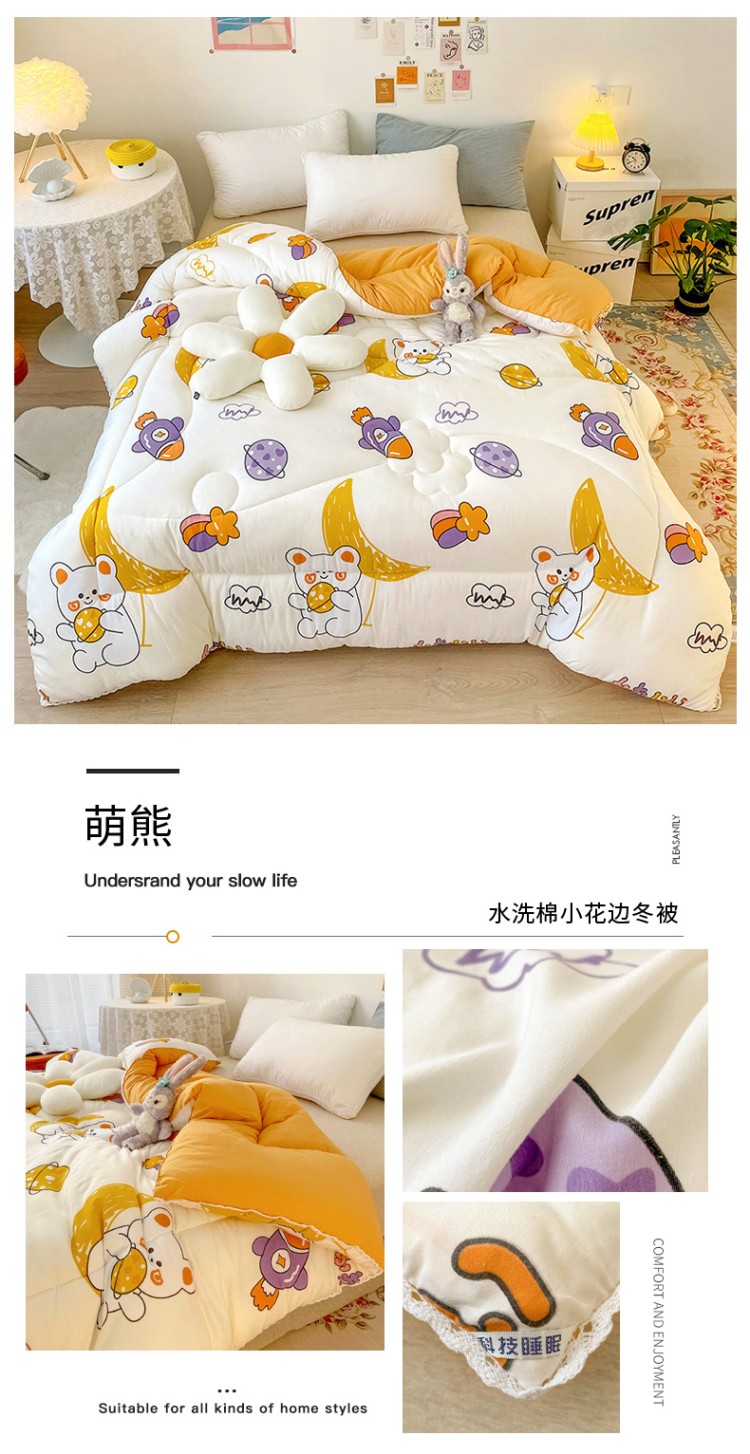 慕尚家纺 2022新款水洗棉小花边冬被 萌熊