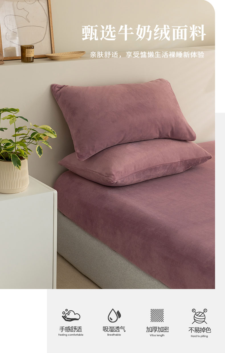 商品名称:法芙娜 加厚牛奶绒床笠 单层吸湿绒床笠 魅力紫