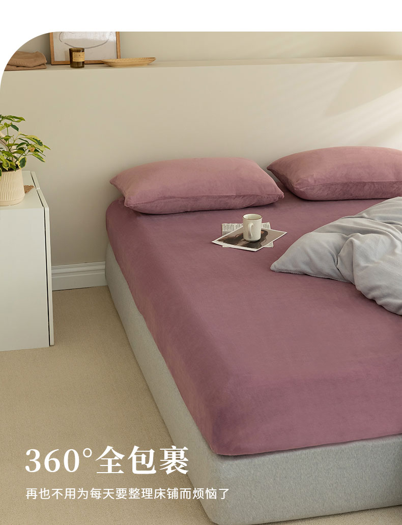 法芙娜 加厚牛奶绒床笠 单层吸湿绒床笠 魅力紫