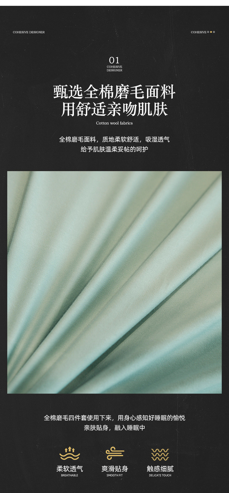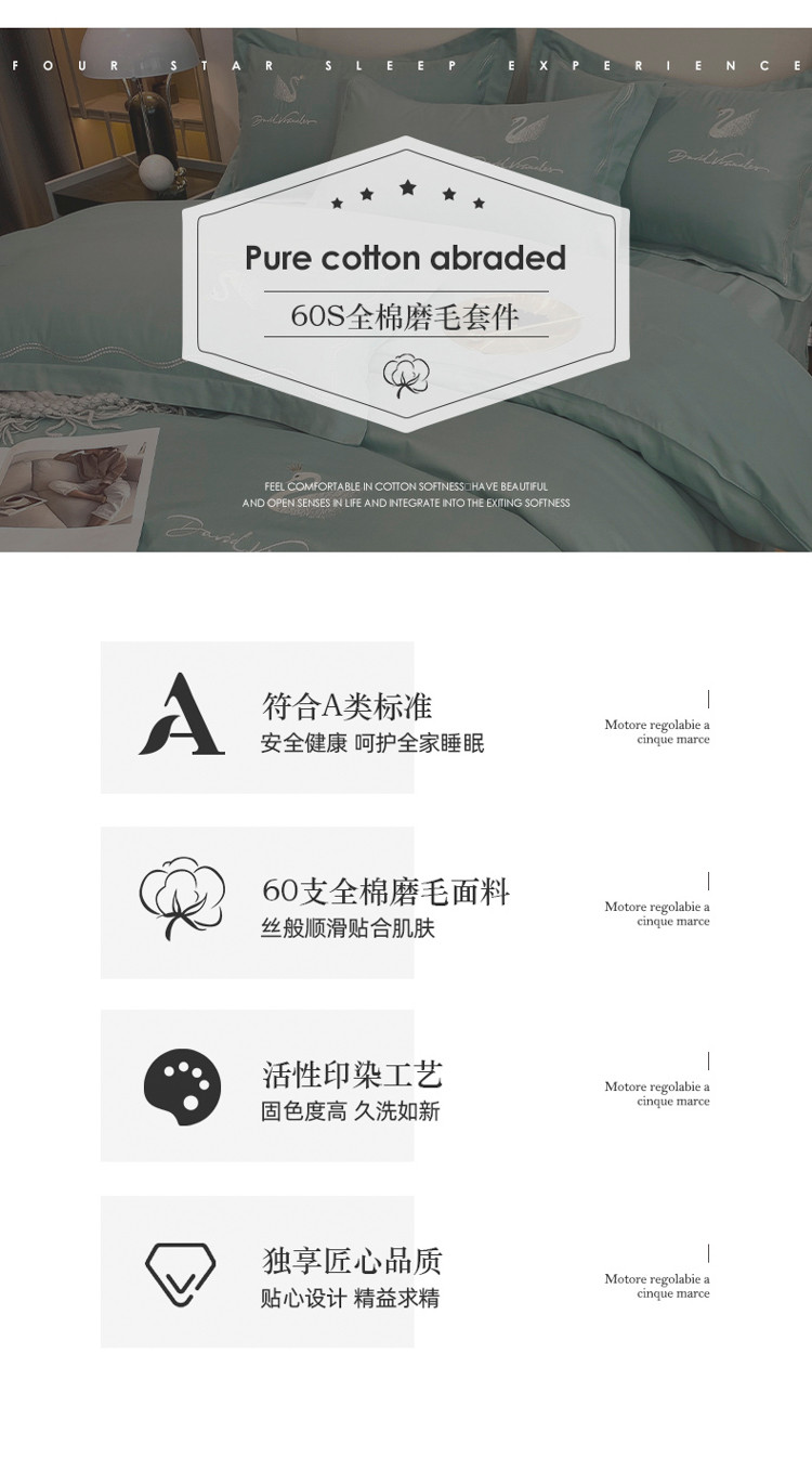 商品名称:祺瑞佳2022新款直播天鹅湖60支长绒棉A类全棉磨毛四件套天鹅湖-艾草绿