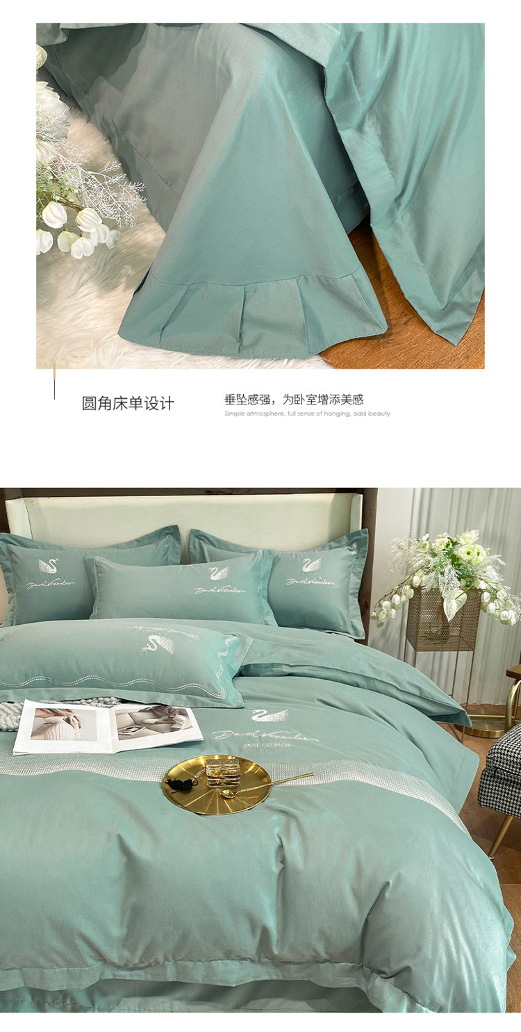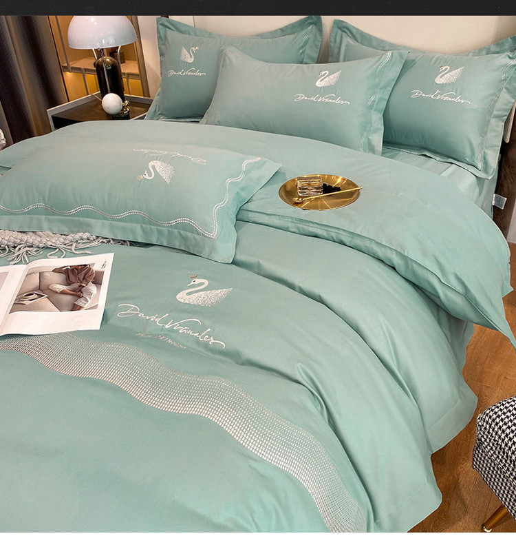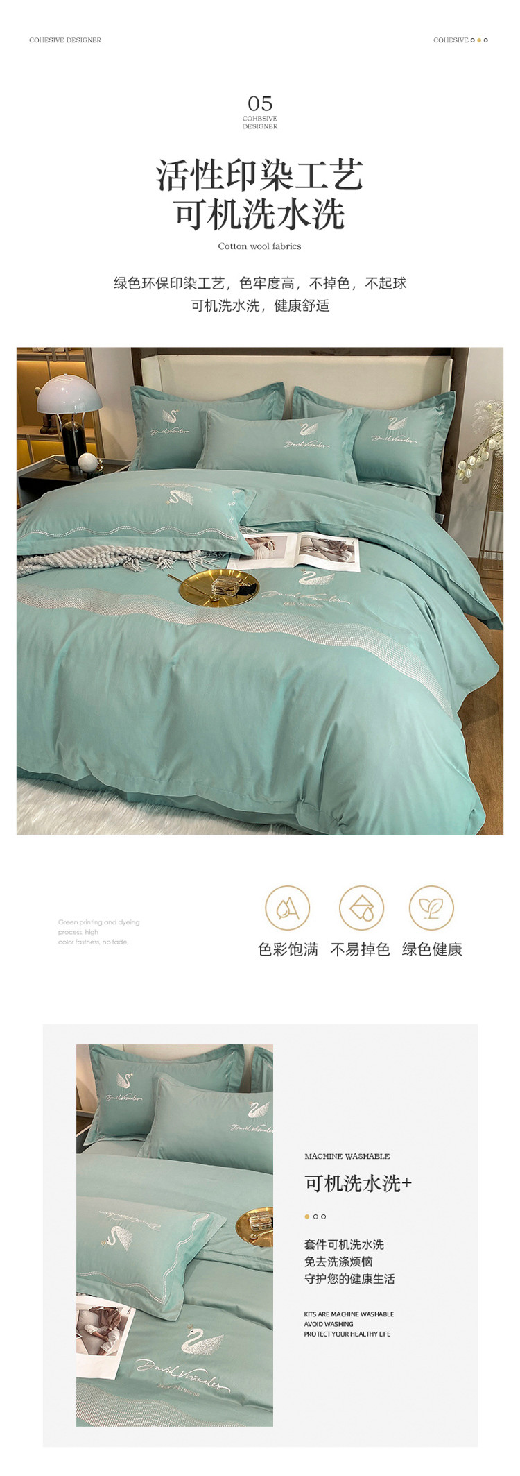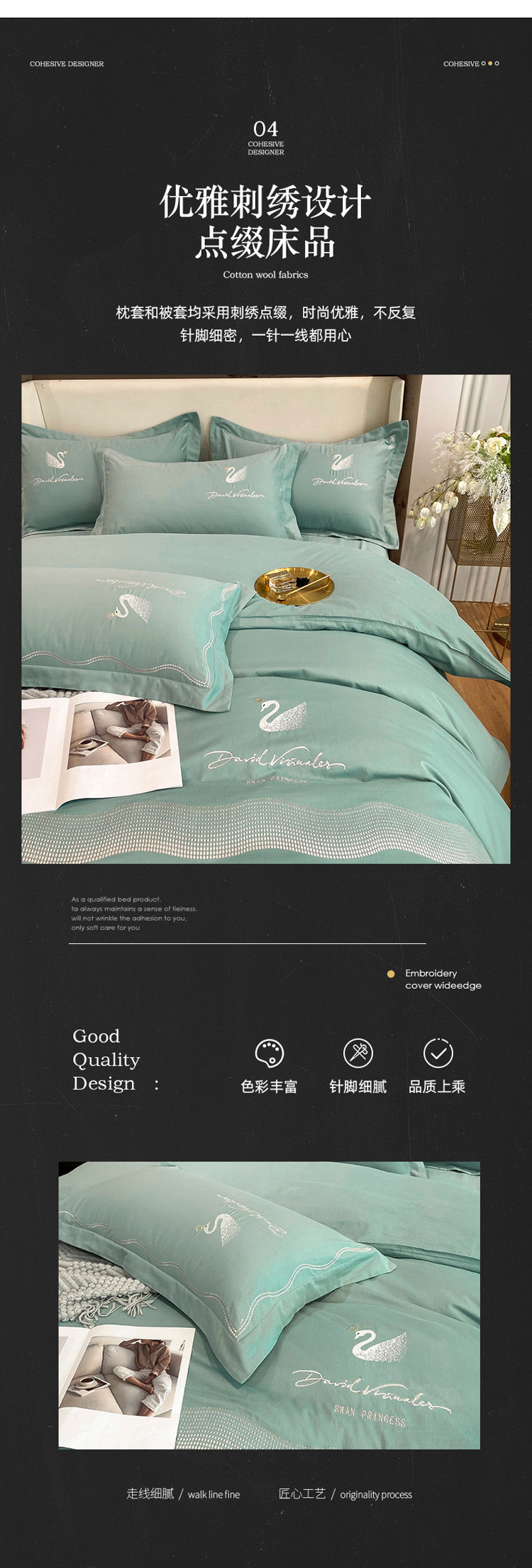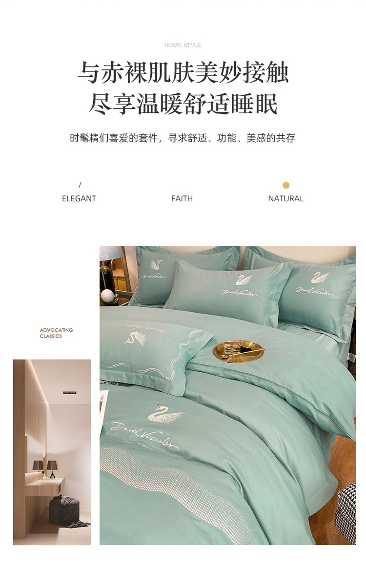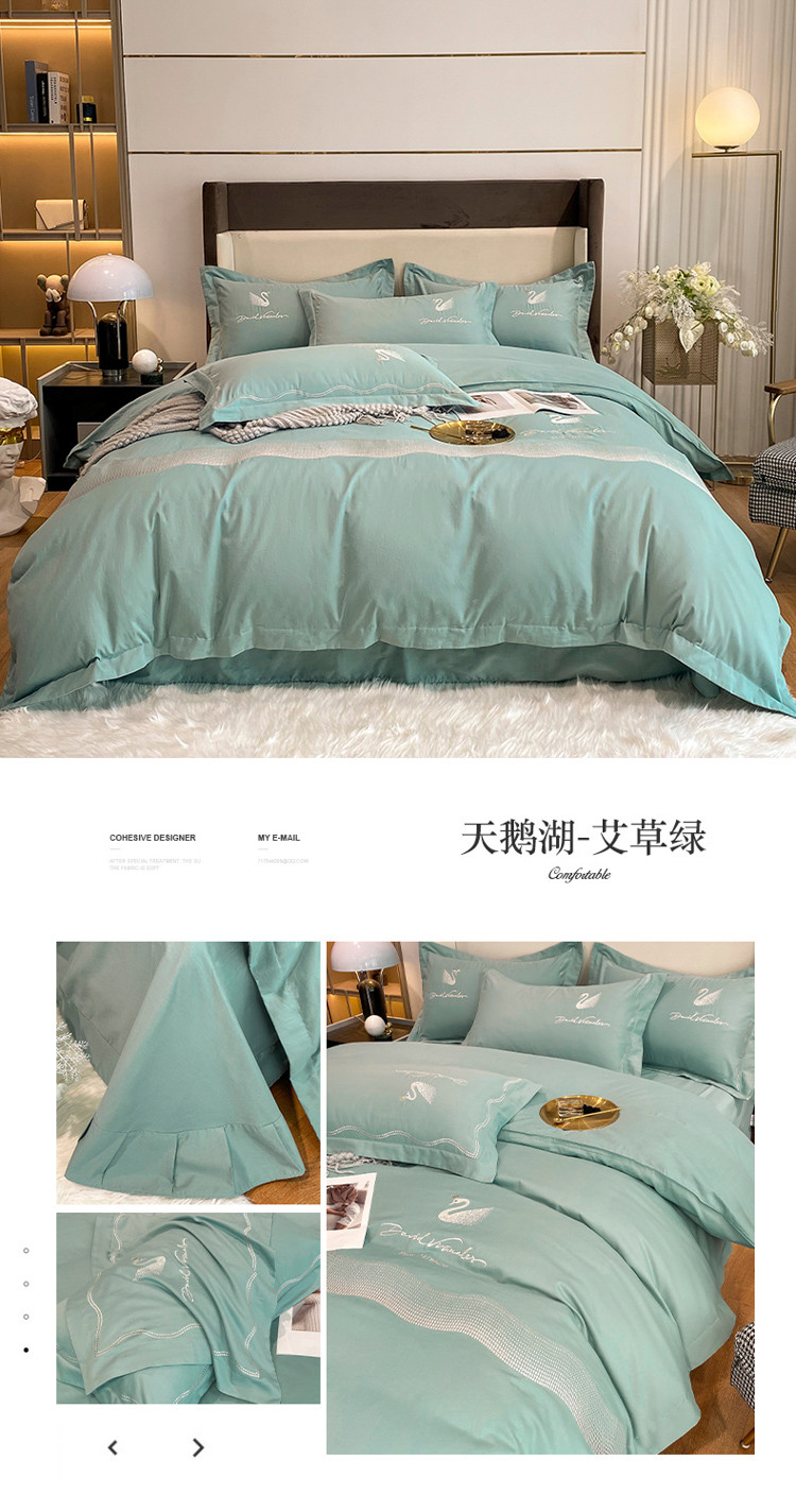 祺瑞佳2022新款直播天鹅湖60支长绒棉A类全棉磨毛四件套天鹅湖-艾草绿