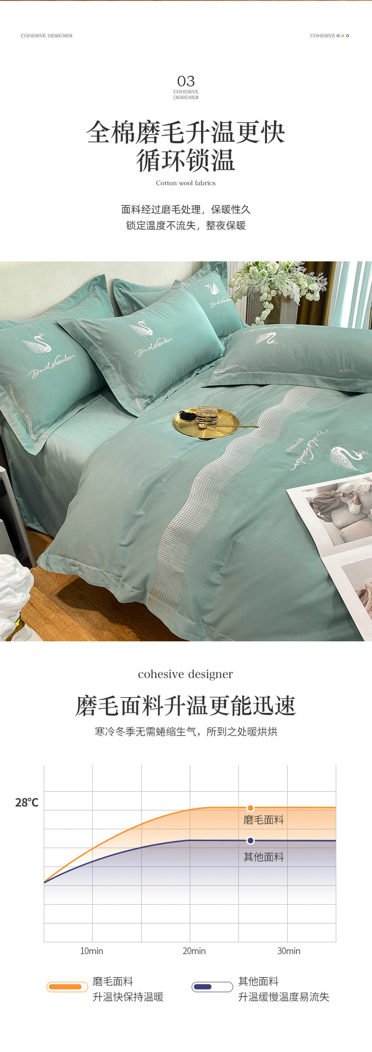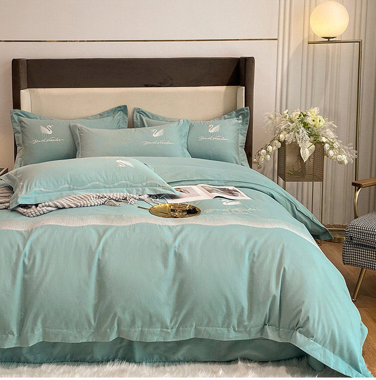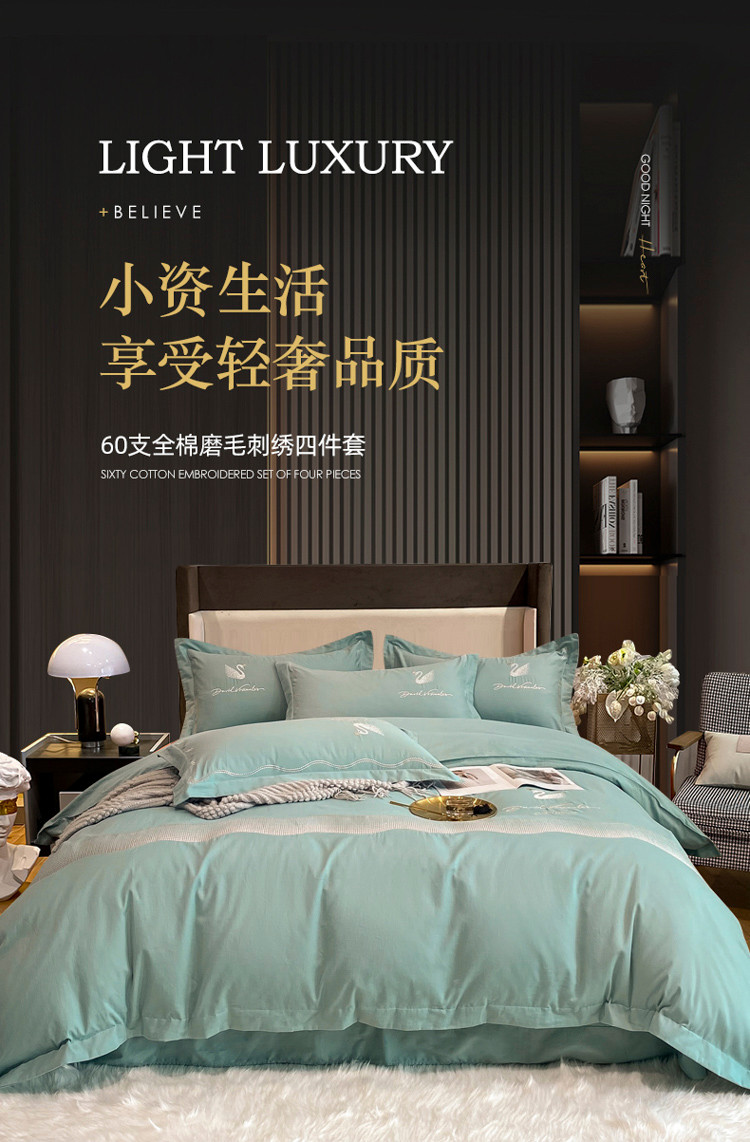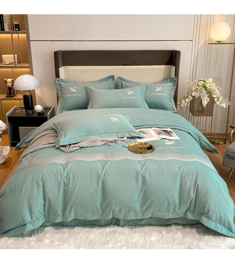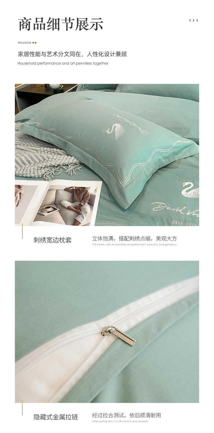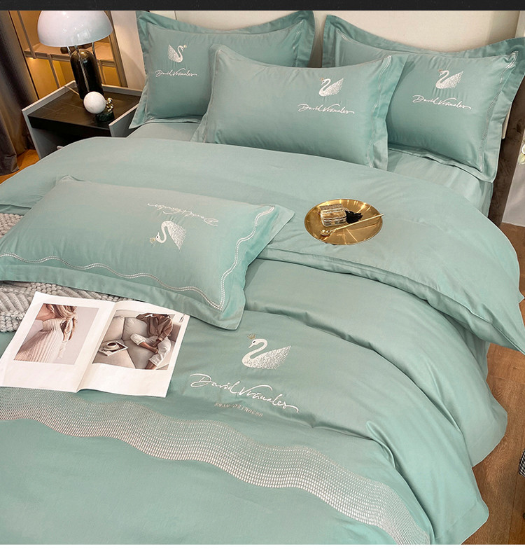 祺瑞佳2022新款直播天鹅湖60支长绒棉A类全棉磨毛四件套天鹅湖-艾草绿