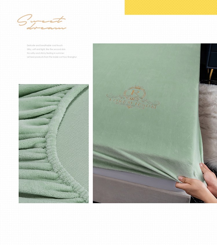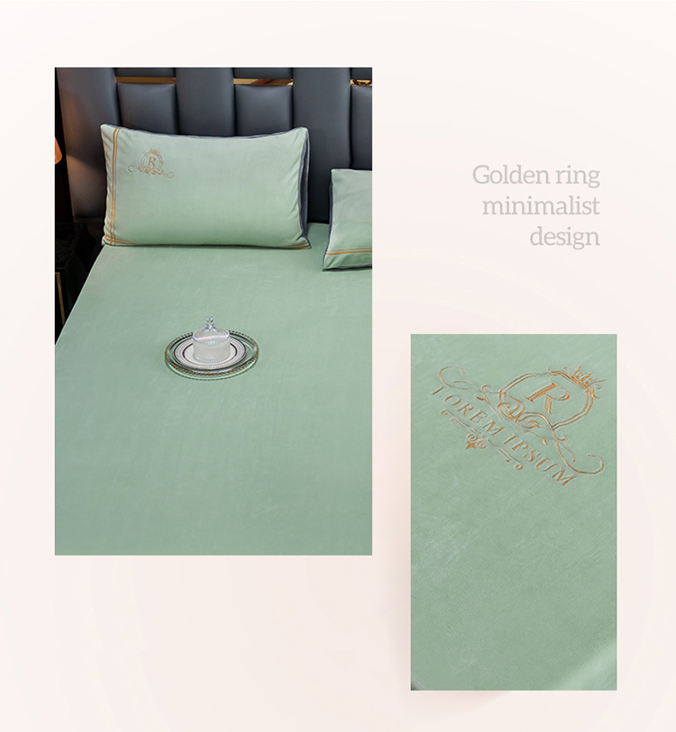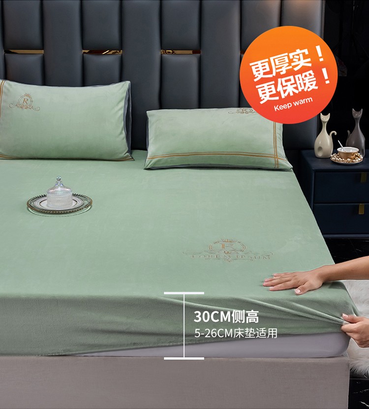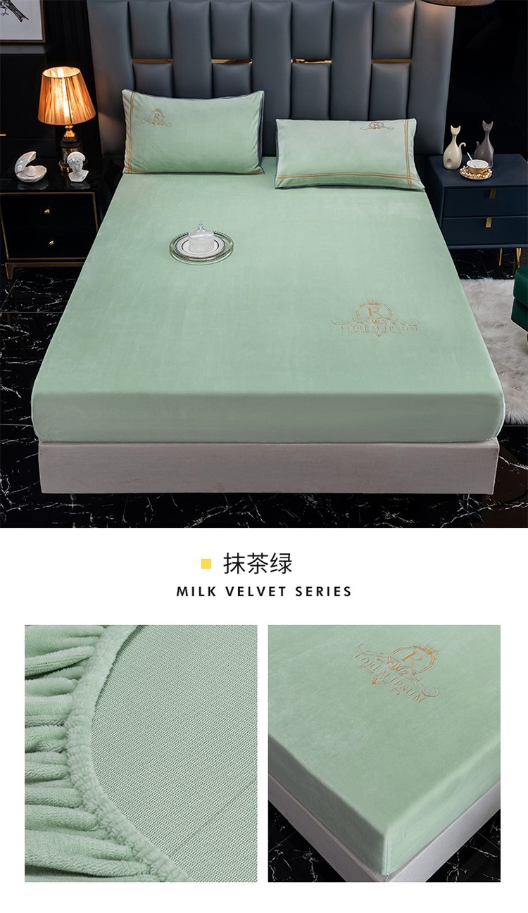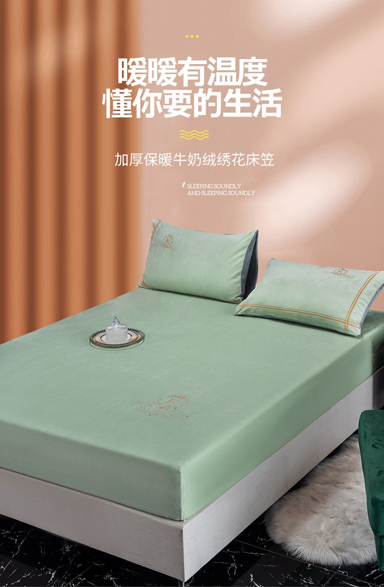 芃成家纺 2021新款牛奶绒绣花单床笠 抹茶绿