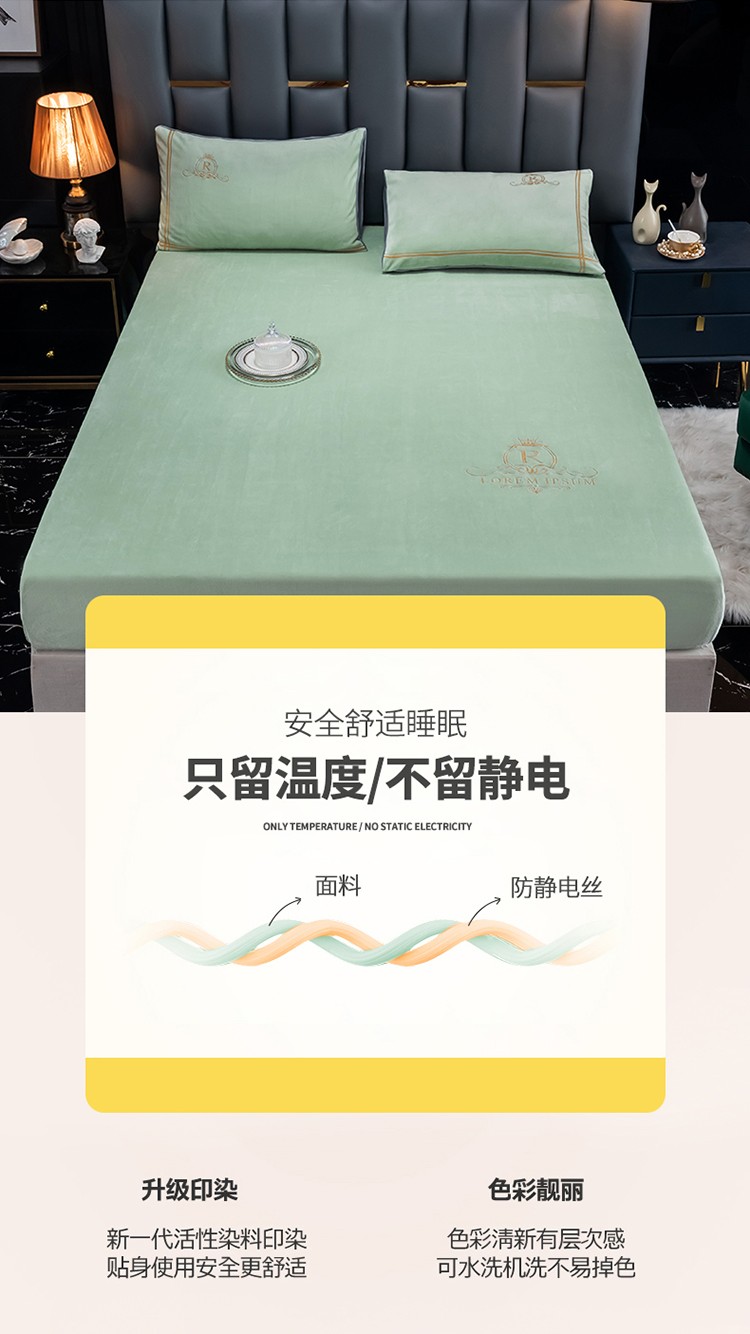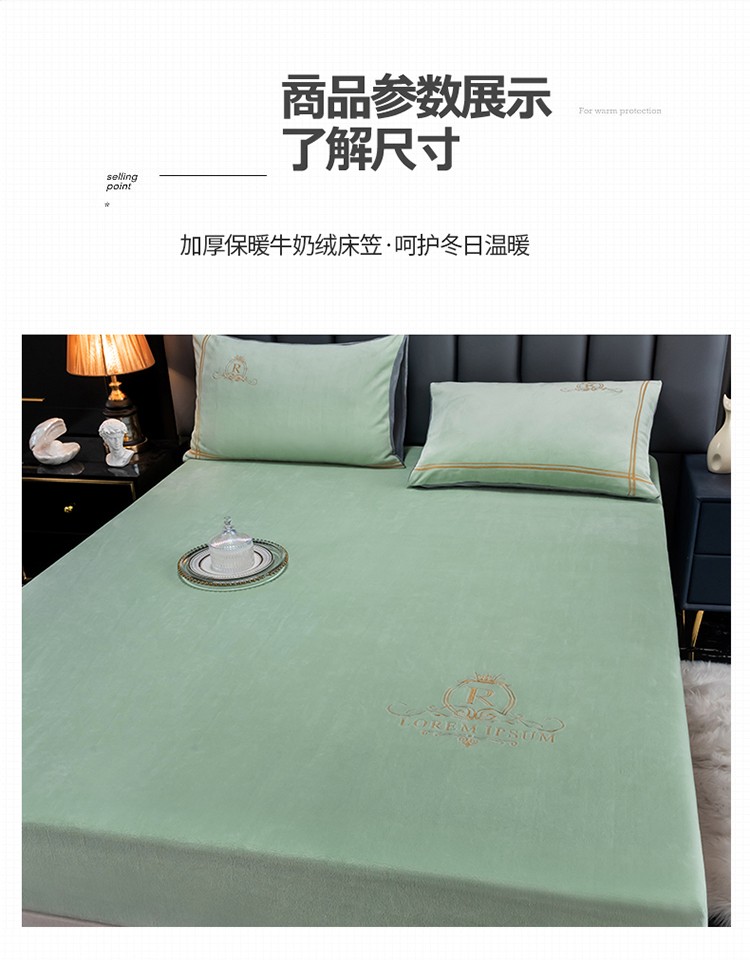 商品名称:芃成家纺 2021新款牛奶绒绣花单床笠 抹茶绿