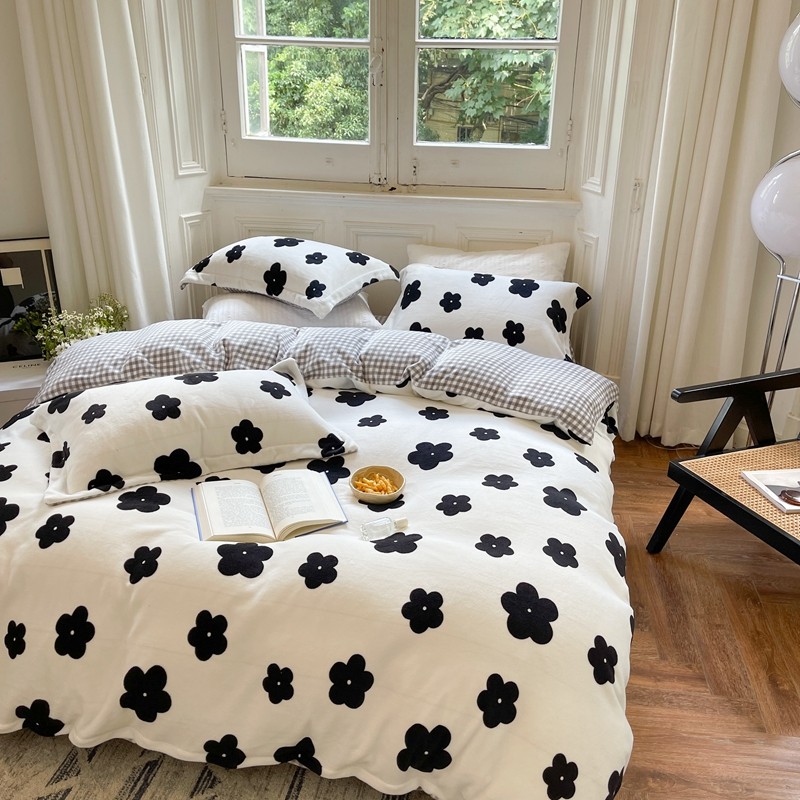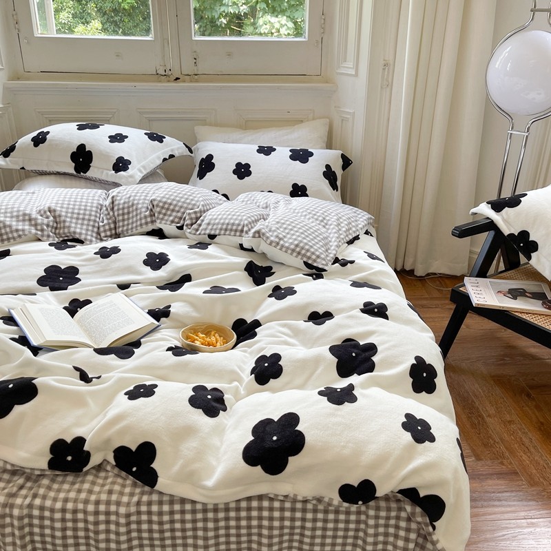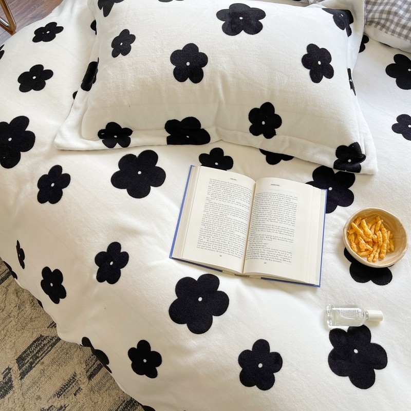 柚子 2021新款牛奶绒印花四件套 茶花
