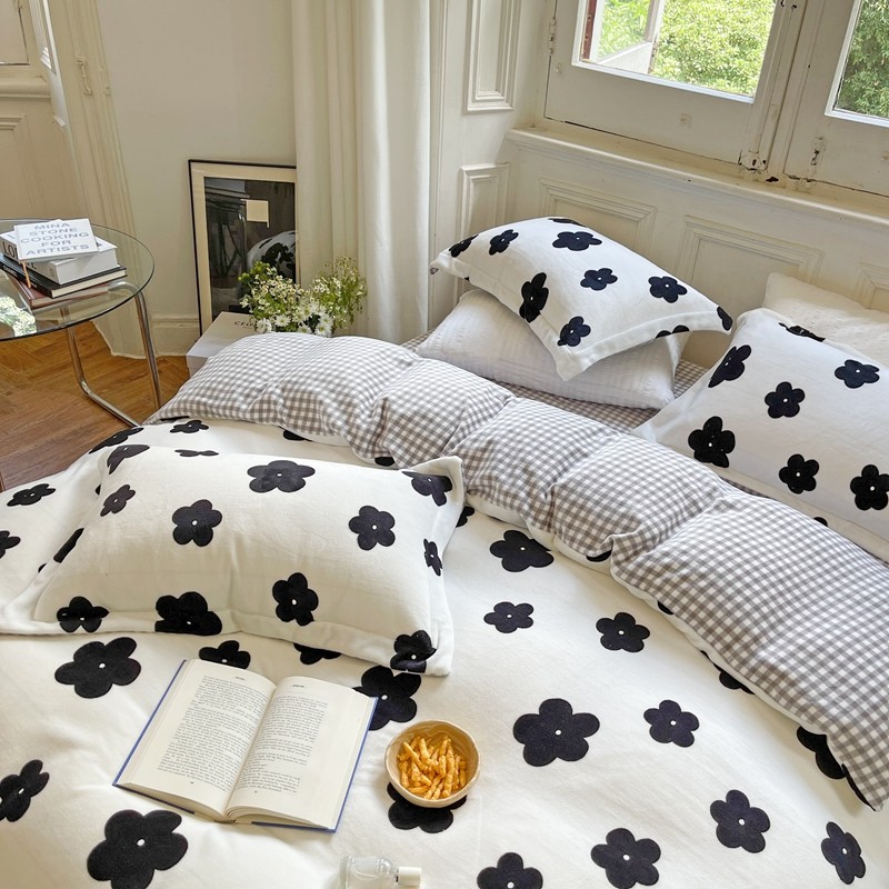 (总)柚子YOUTH 225新款全棉双层纱球球款四件套,薄荷绿条,波点霉霉,波点小丑,蓝心,芊芊结,碎花点点