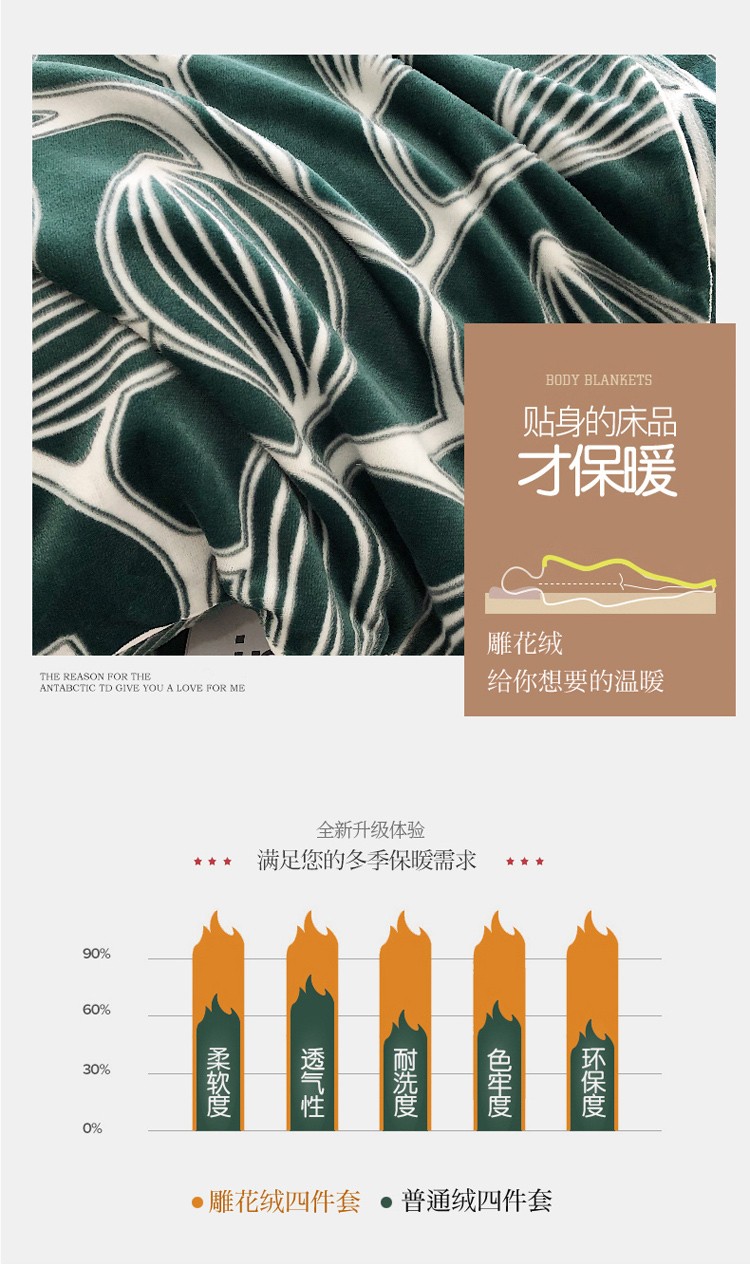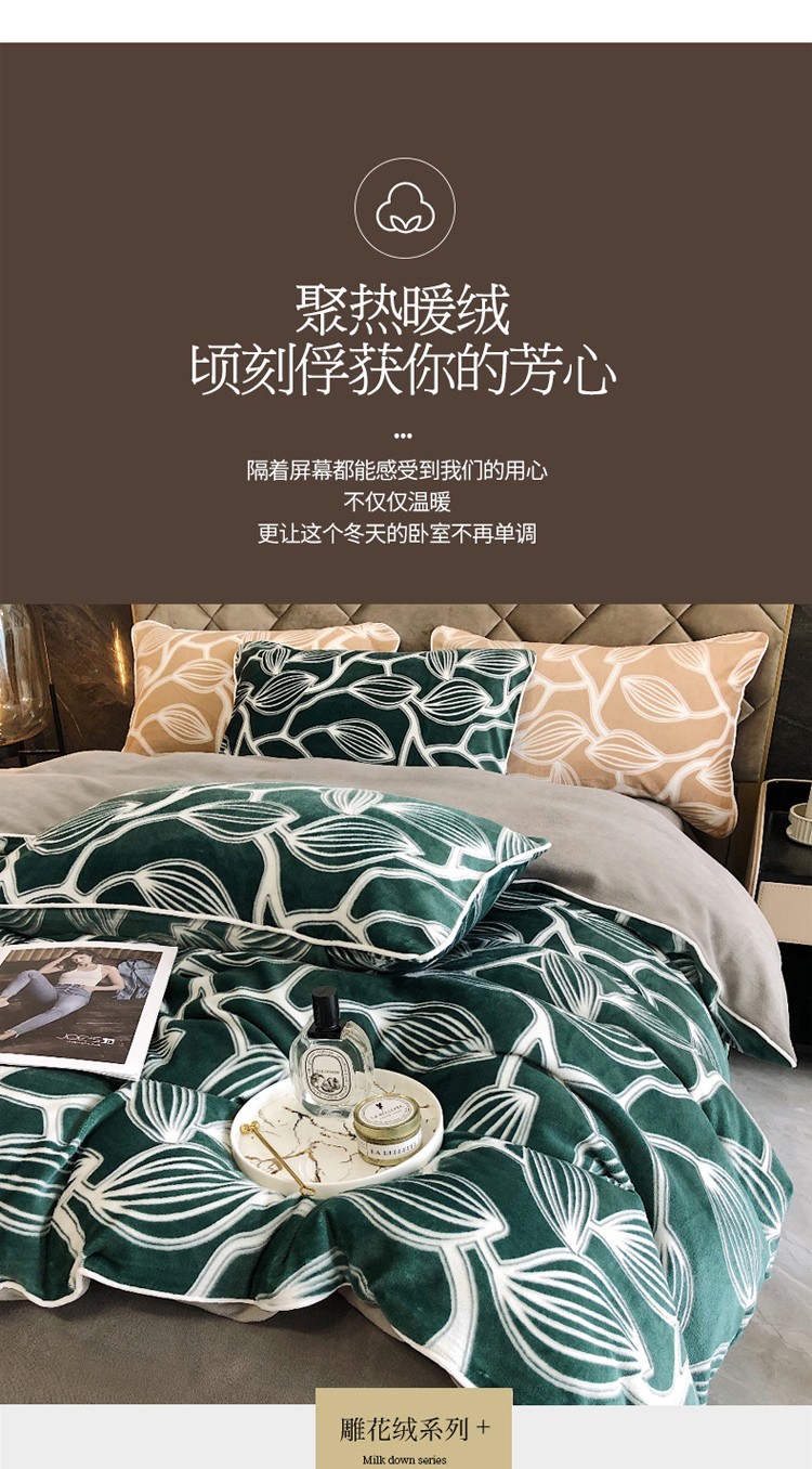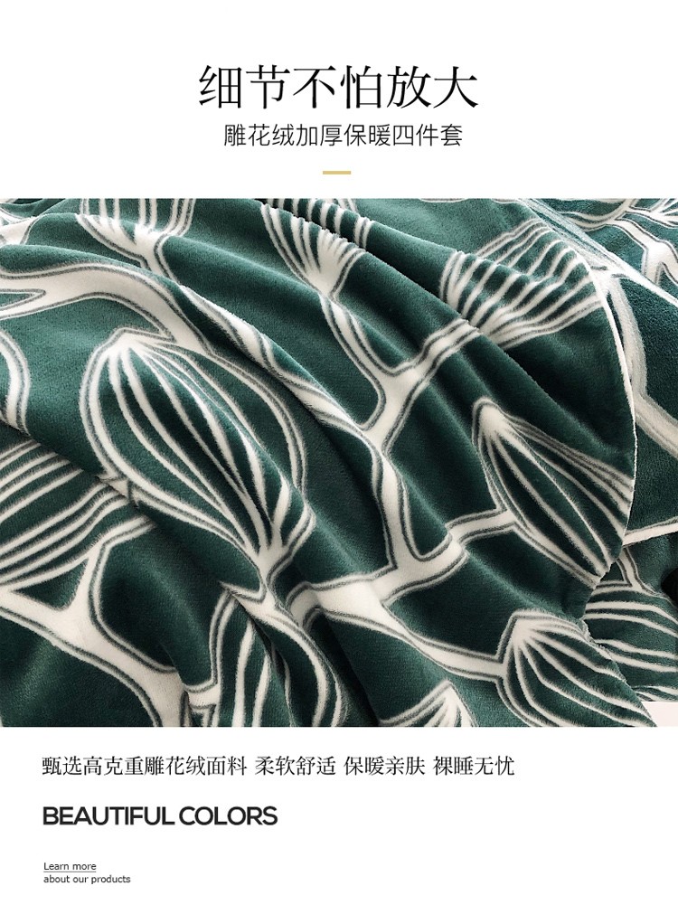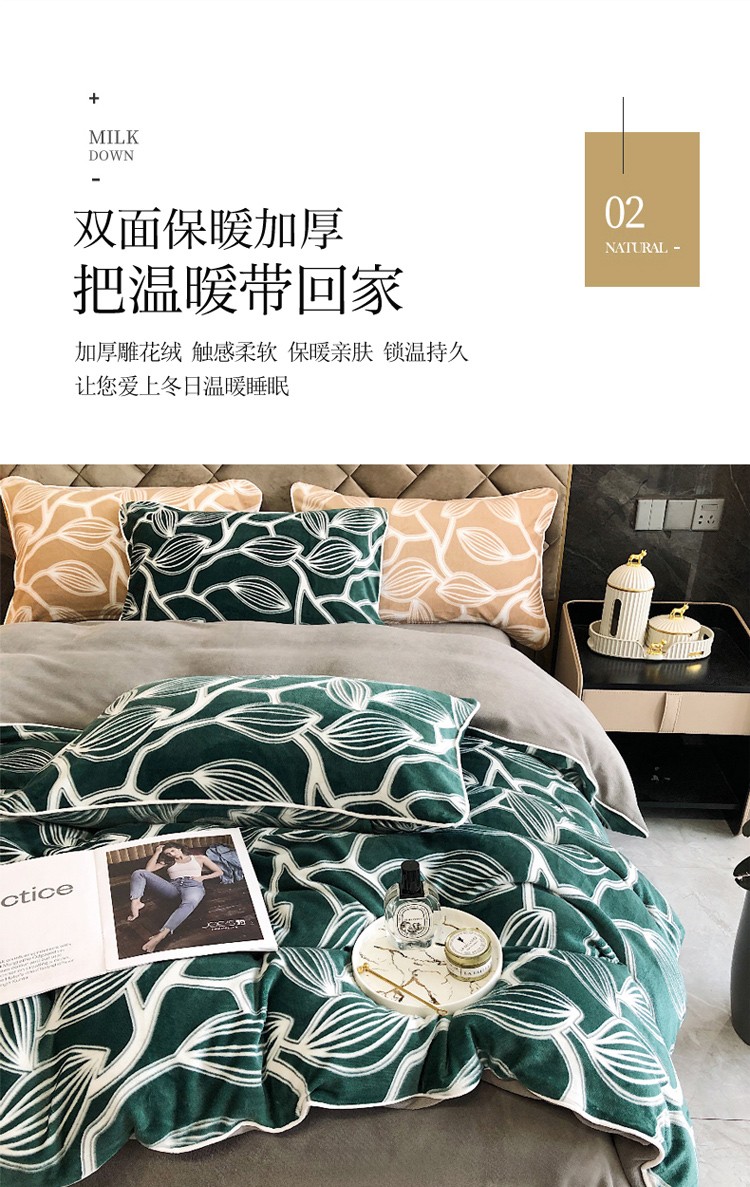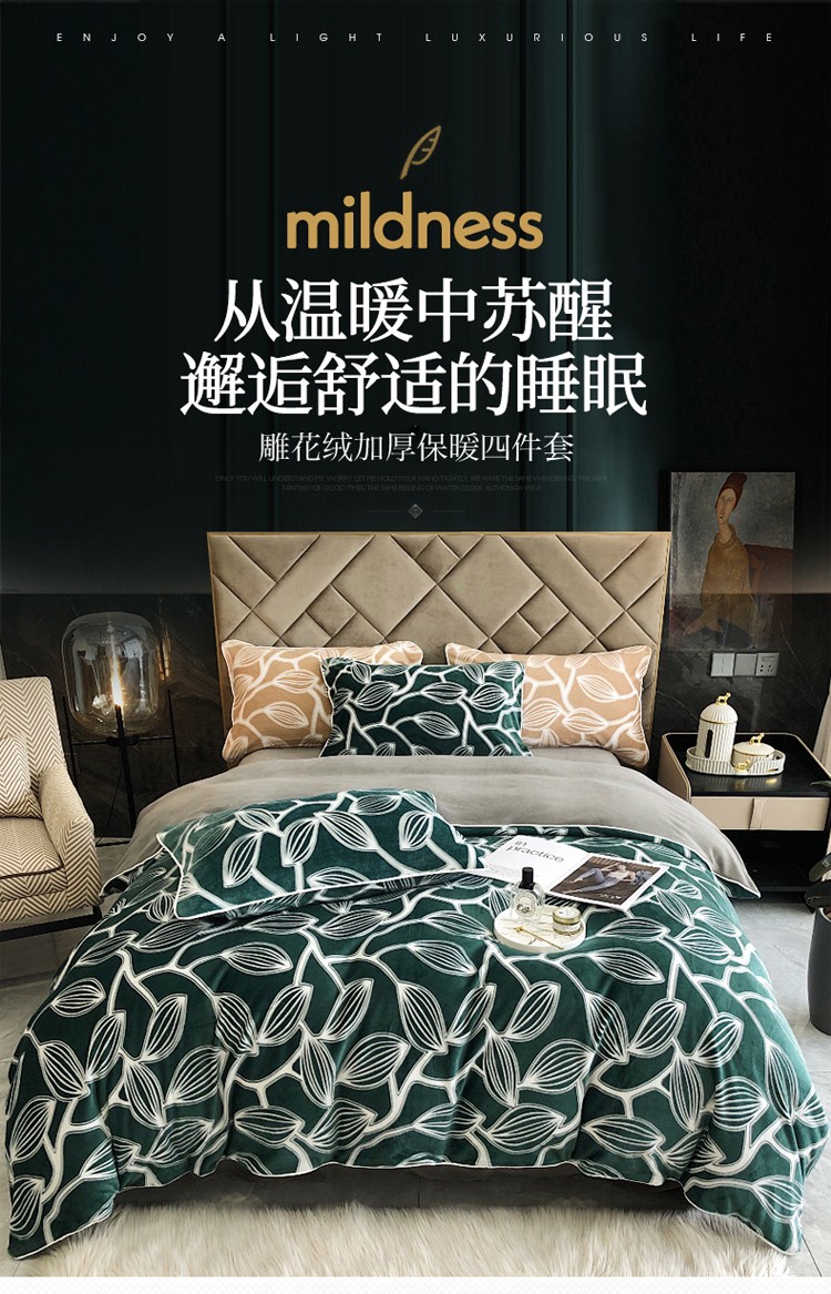 当前位置: 91家纺网 > 商品网购 > 床品套件 > 四件套 > 牛奶绒四件套 > 慕尚 2022新款雕花绒立体牛奶绒轻奢系列四件套 树叶绿