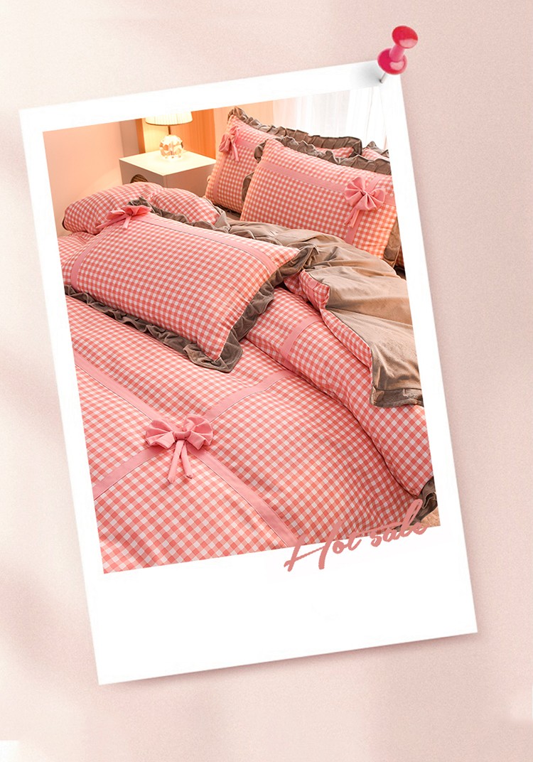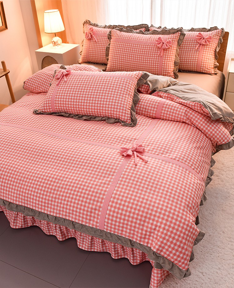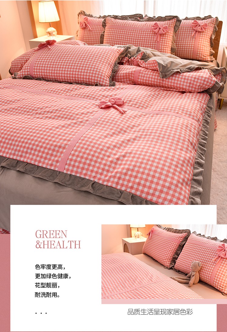 (总)金莎浪 2023新款织爱夏被四件套,草绿格,粉红格,黑白格,深红格