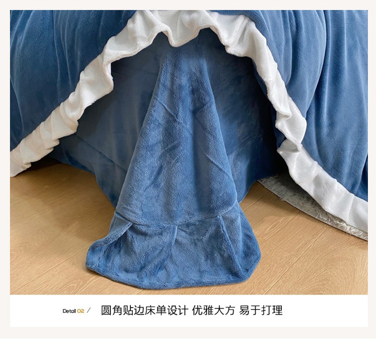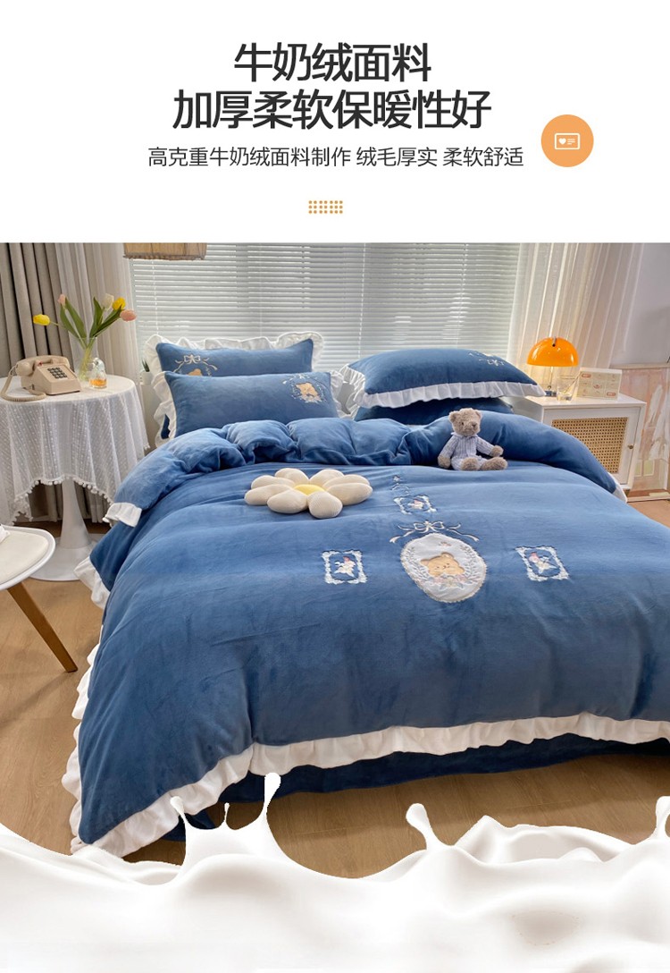 (总)星尚家纺 2024新款加厚保暖全消光牛奶绒夹棉床裙四件套-玫瑰之恋,粉玉,寐紫,浅蓝,水绿