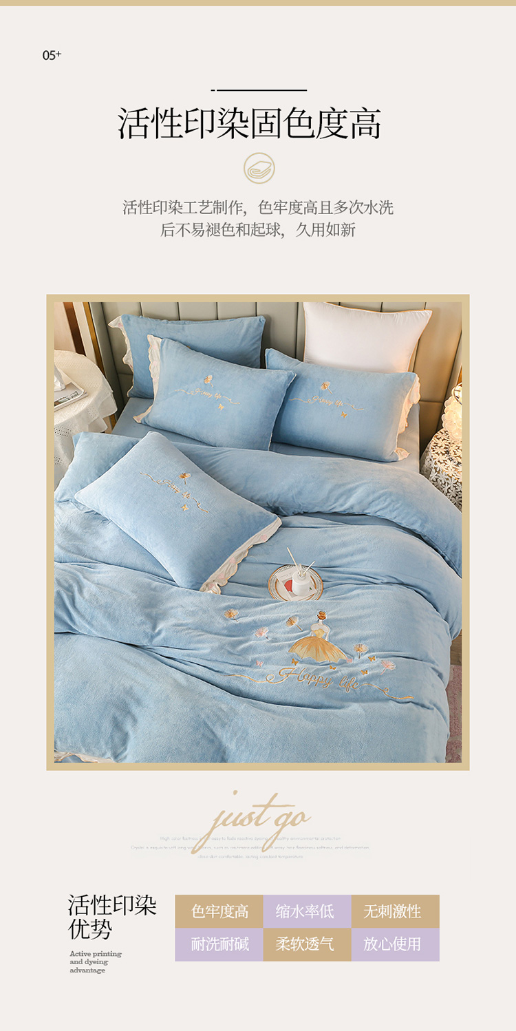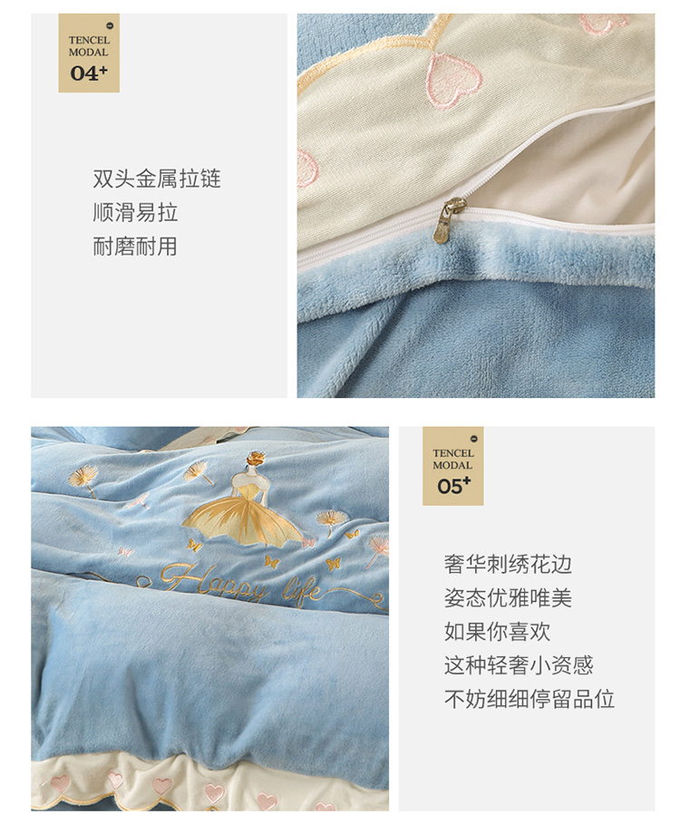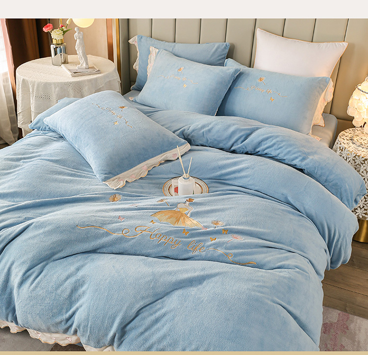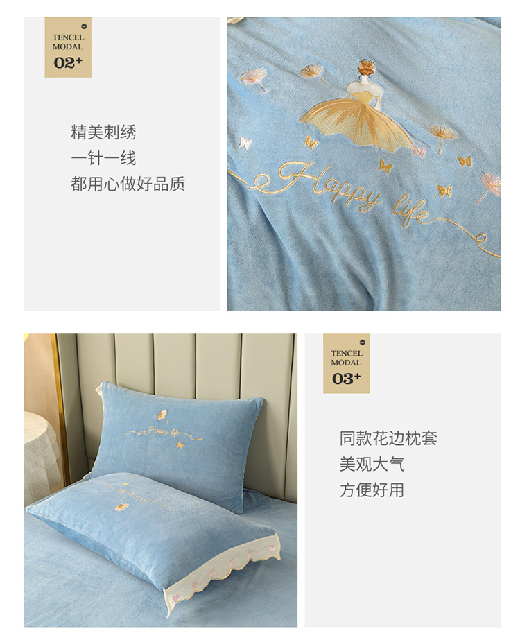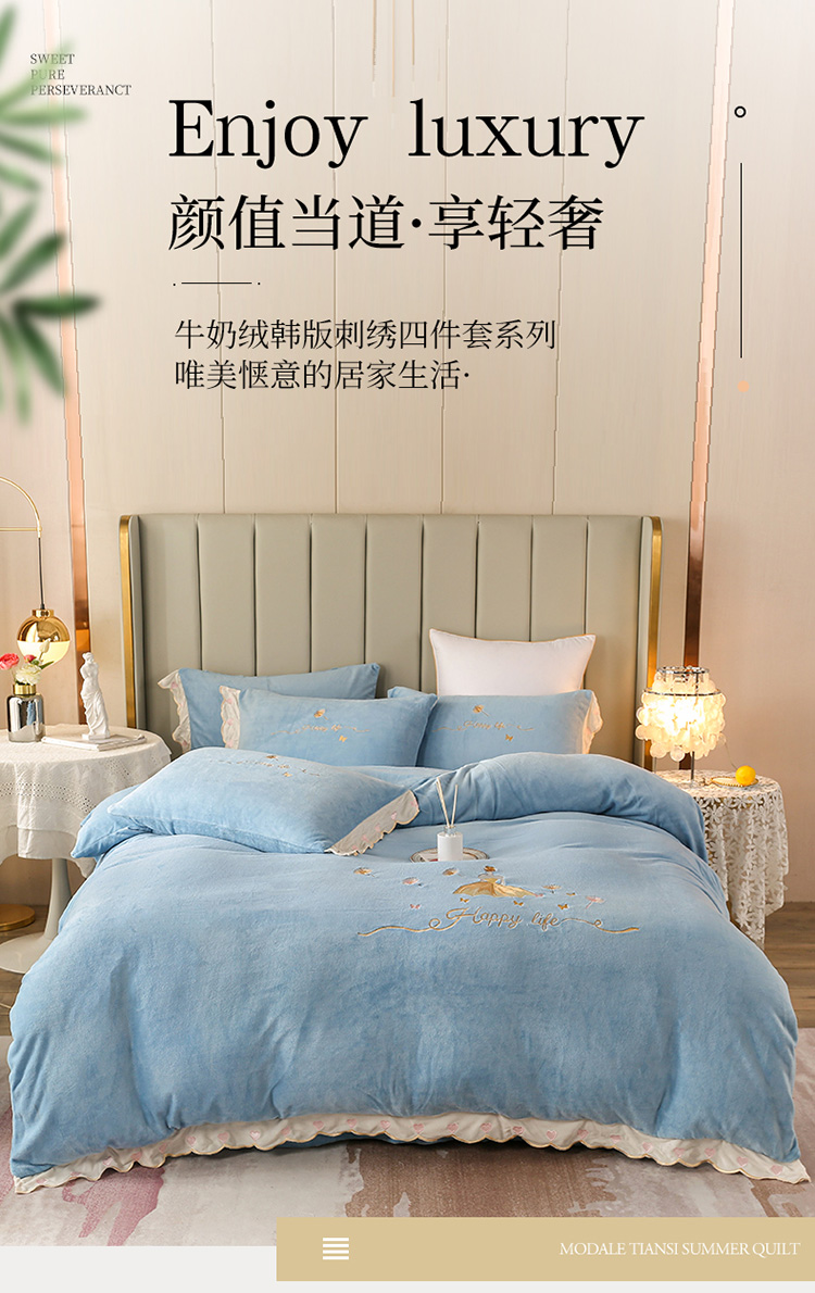 沐辰 2021新款牛奶绒刺绣四件套-舒蕾公主 舒蕾公主-蓝