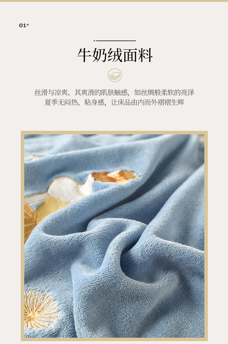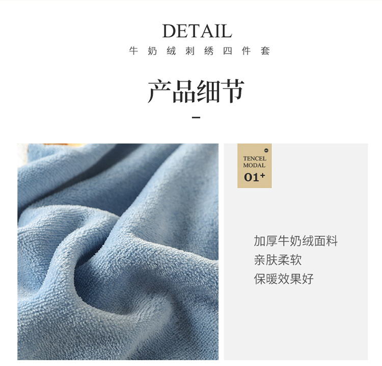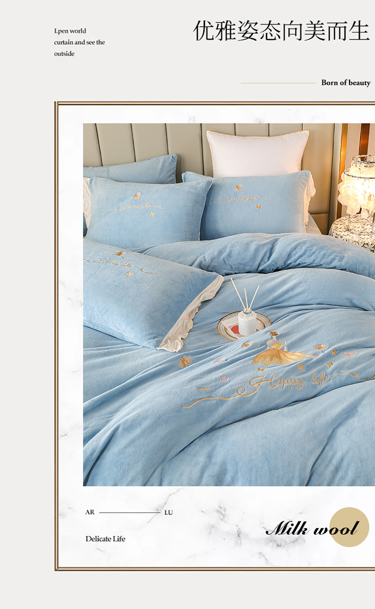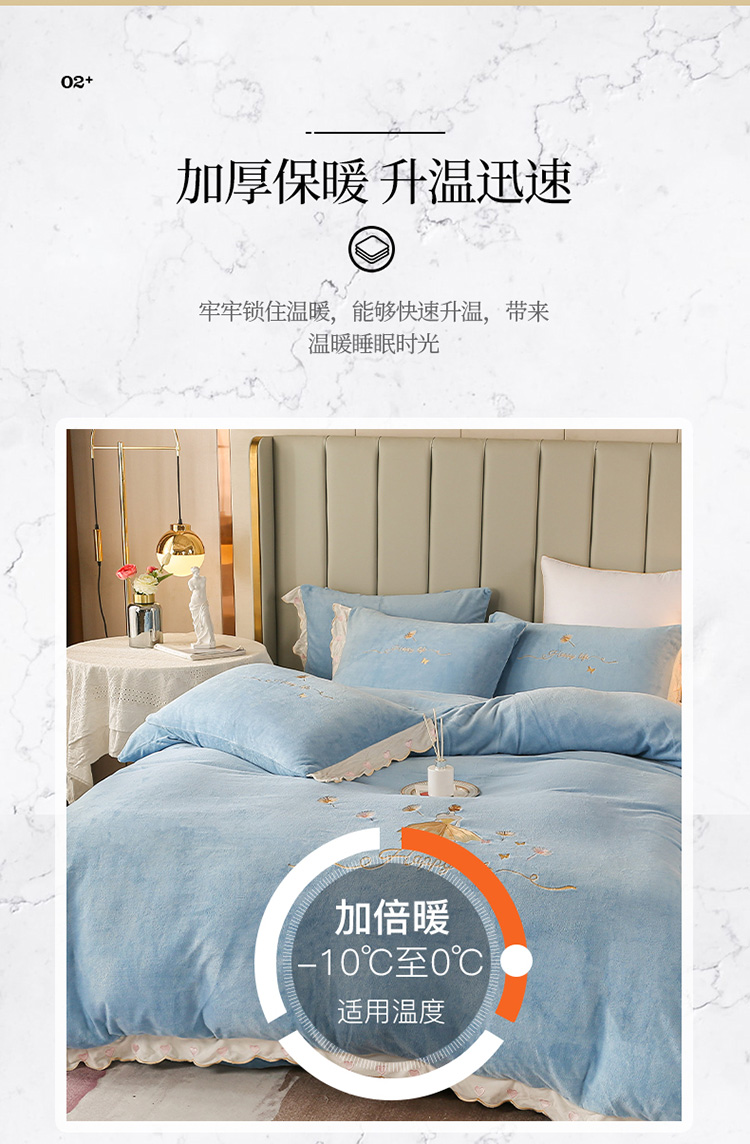 沐辰 2021新款牛奶绒刺绣四件套-舒蕾公主 舒蕾公主-蓝